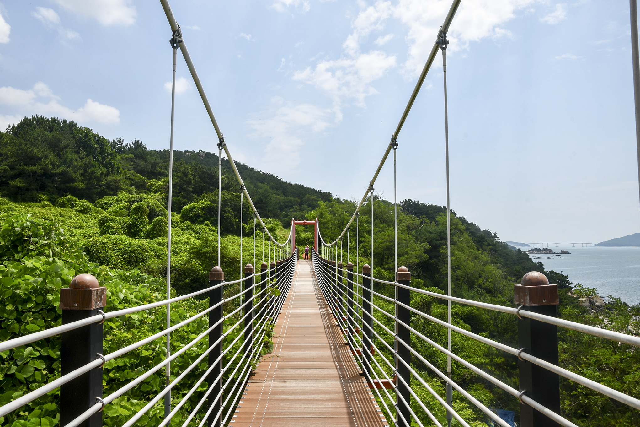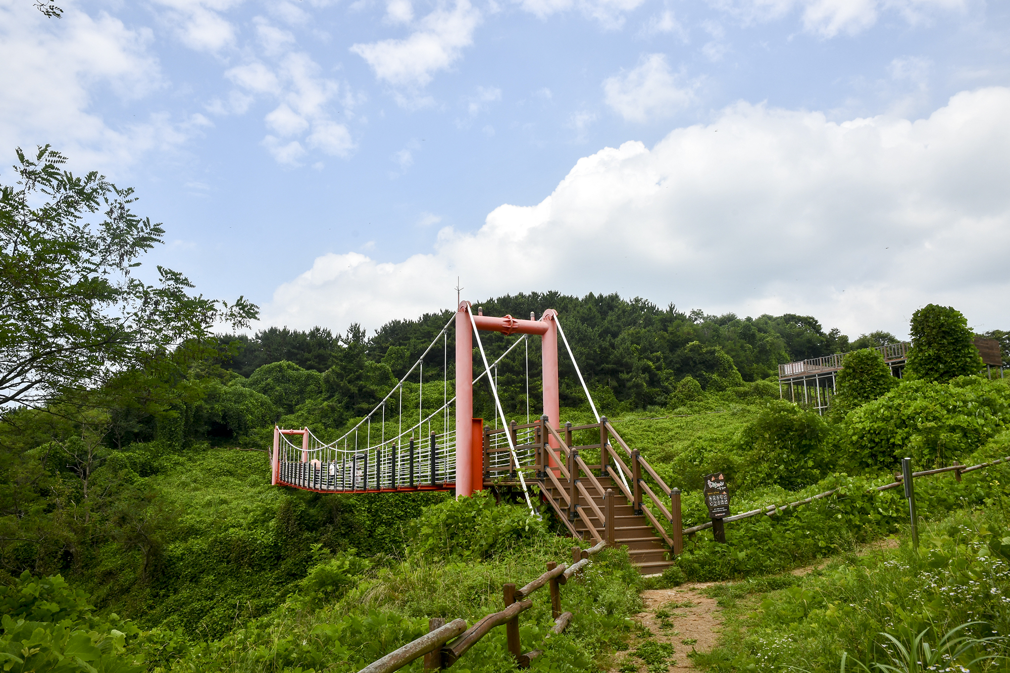 초록이 넘치는 숲에 출렁다리의 모습이 눈에 띈다.