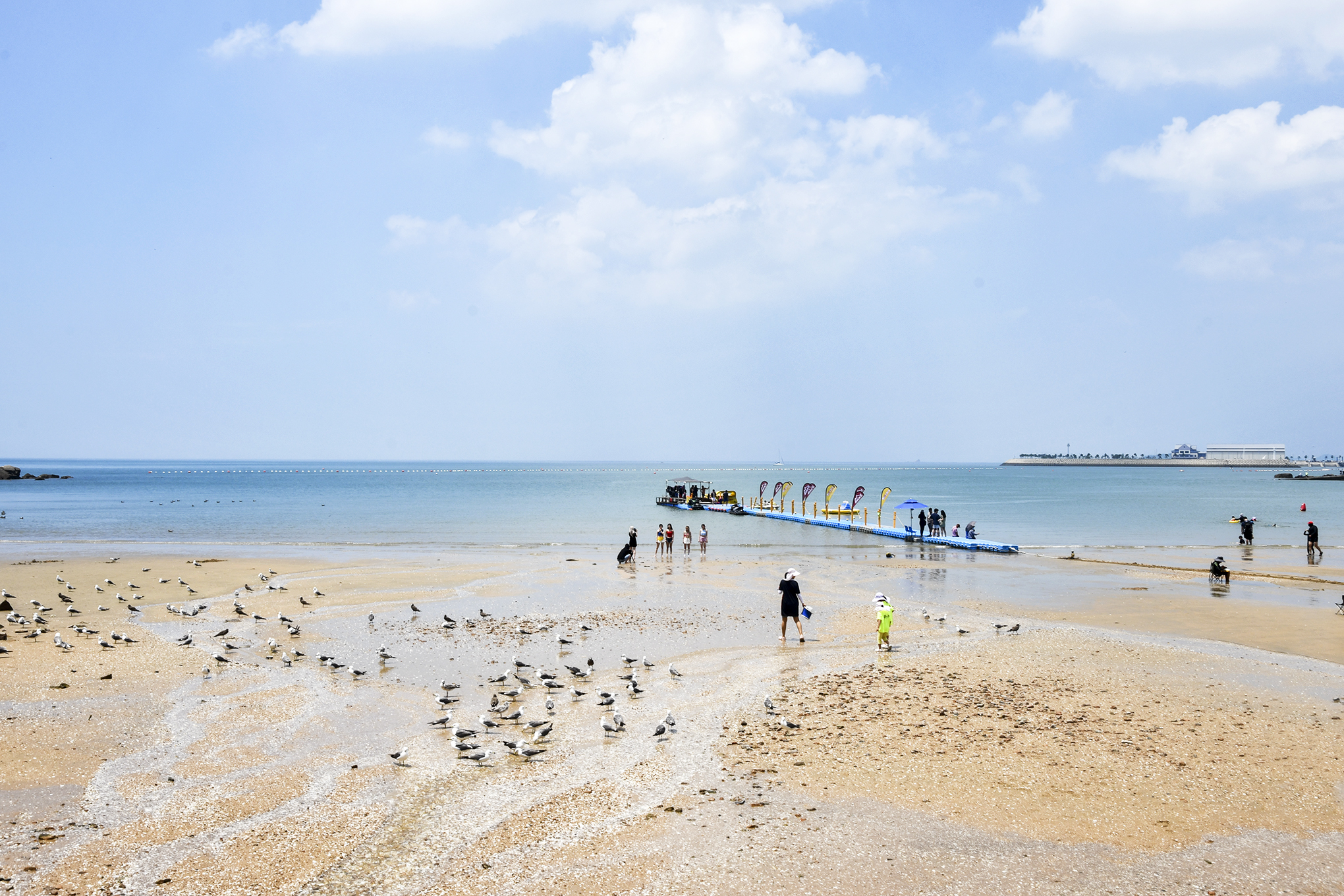 물이 빠질수록 점점 더 바다쪽으로 걸어나가면서 해변 맨발걷기와 해수욕을 즐길 수 있다.