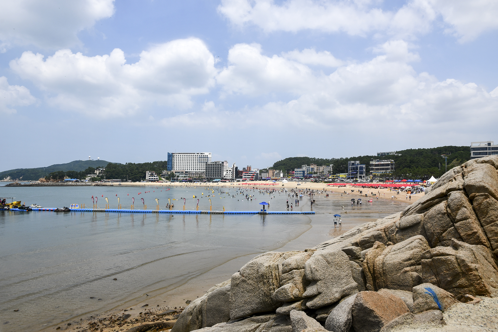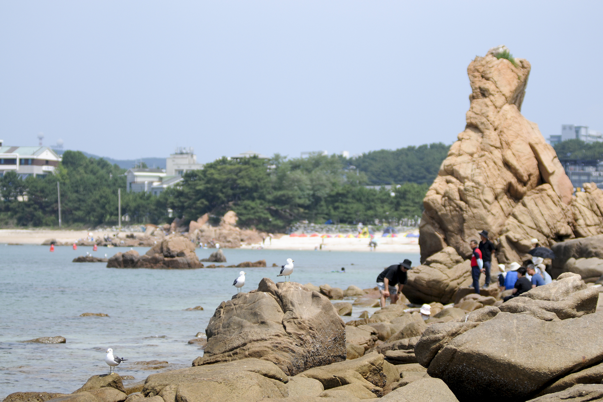 해변 왼쪽 선녀바위 근처에도 많은 사람들이 몰리는 곳이다.