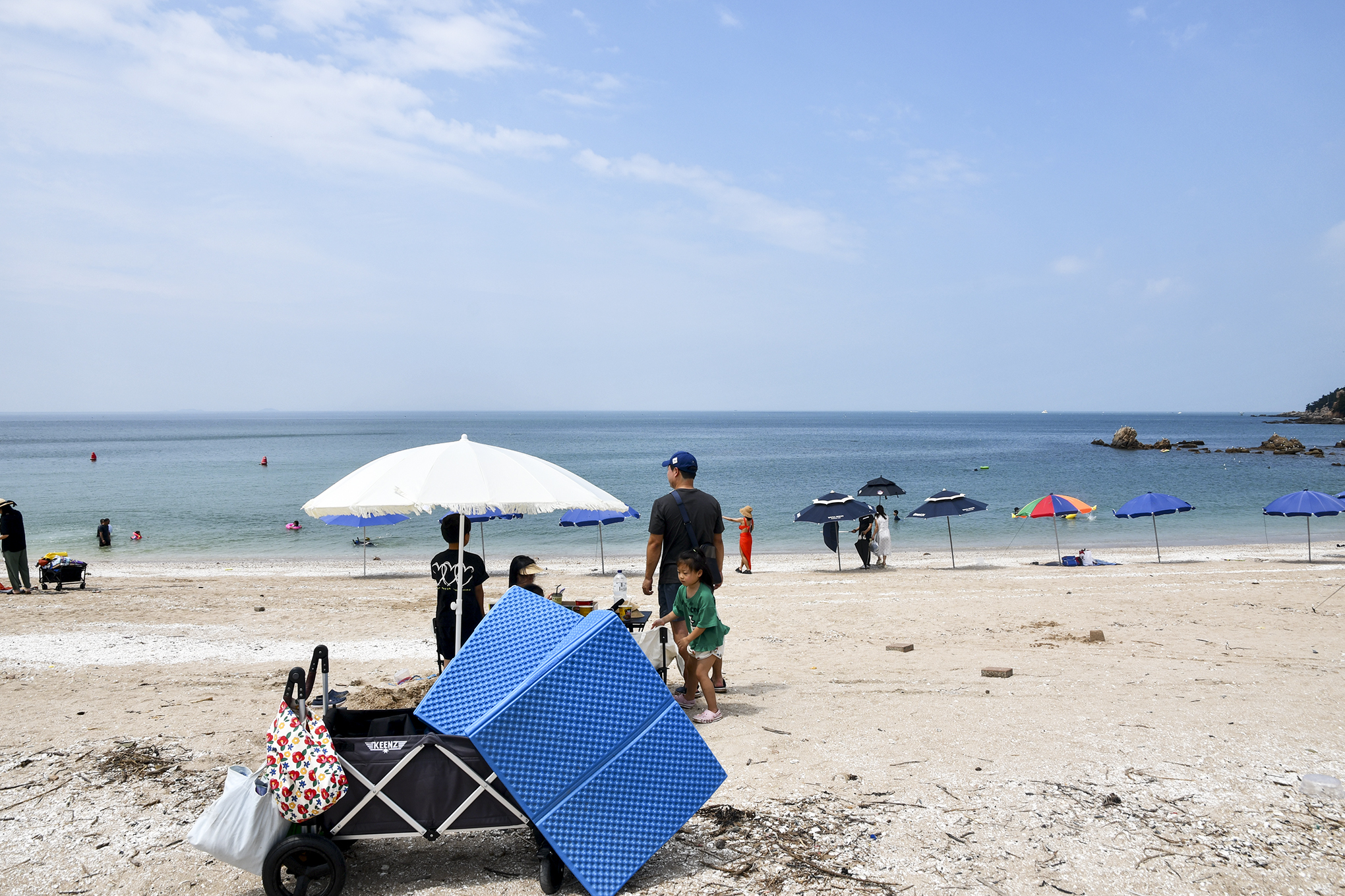 한 가족의 바다 나들이를 담았는데, 이것 저것 짐들이 만만치가 않다.