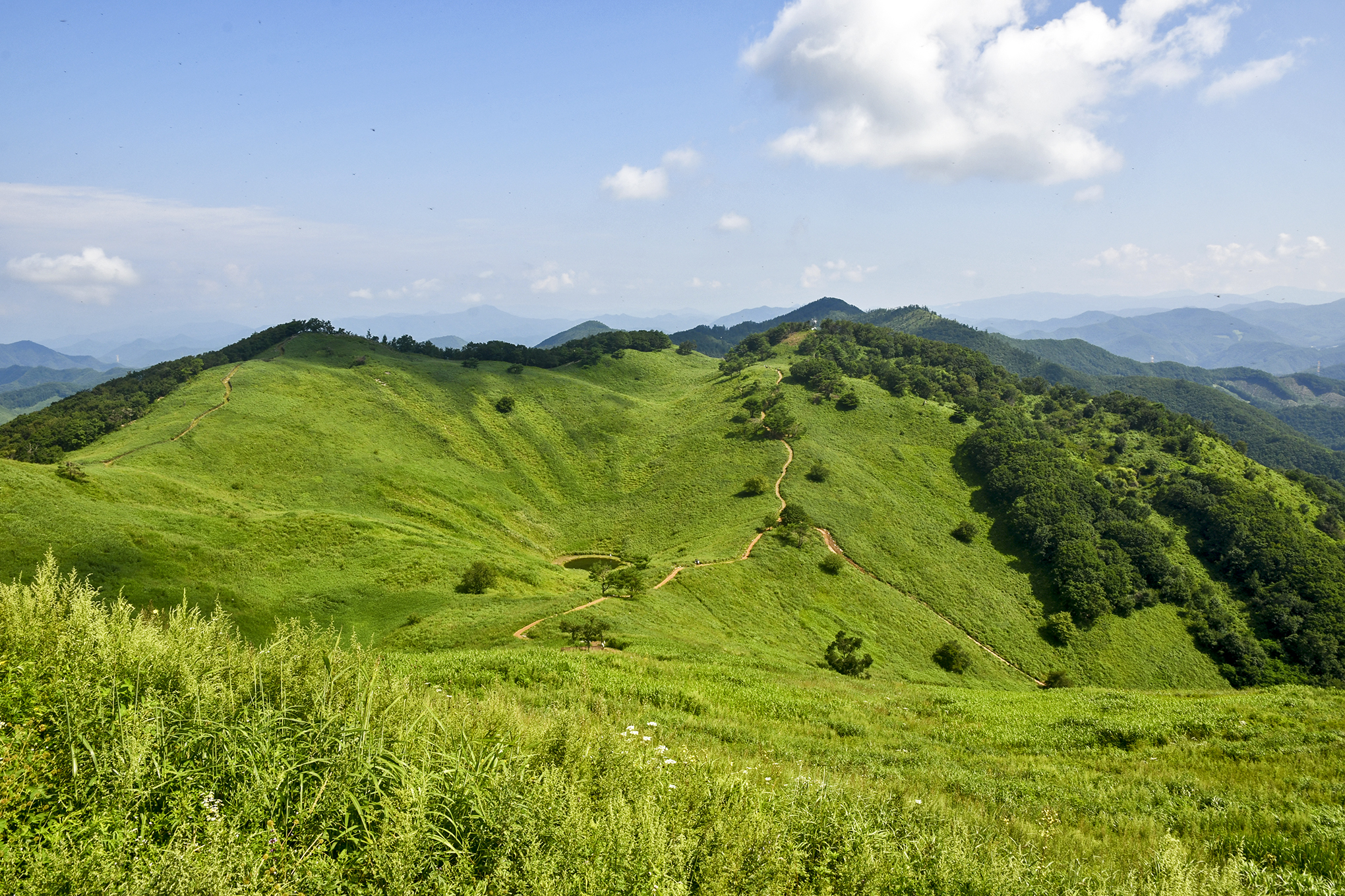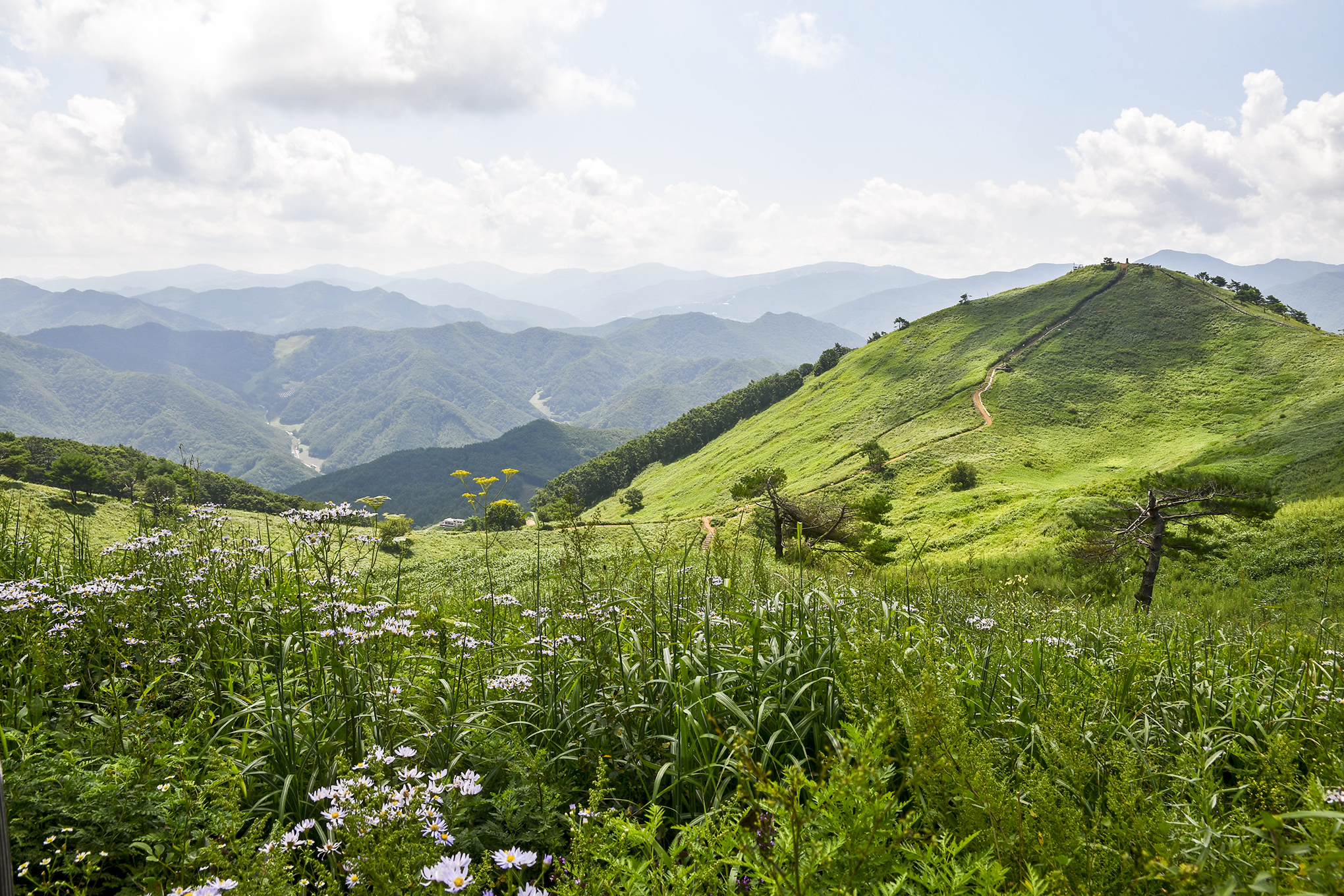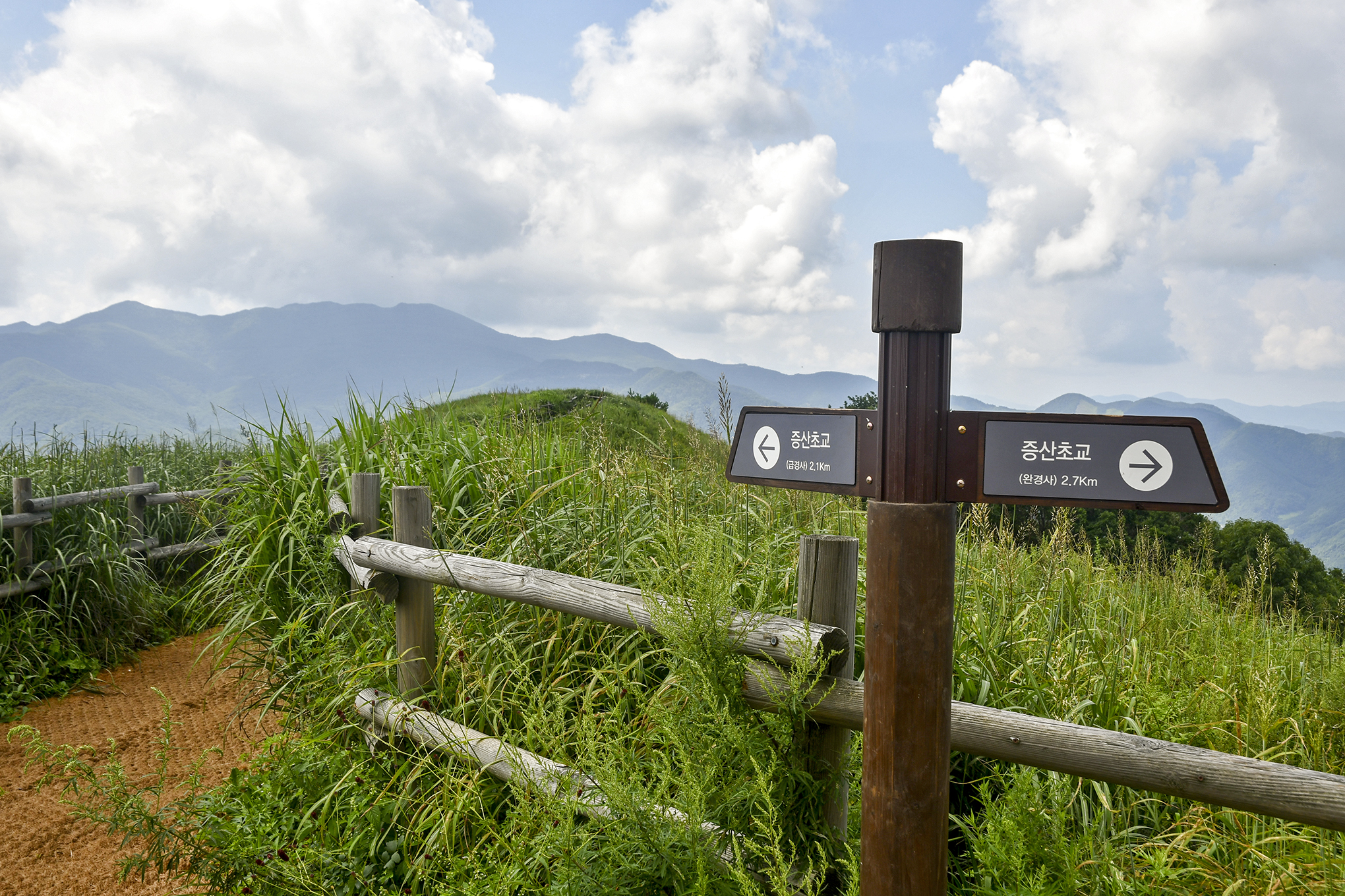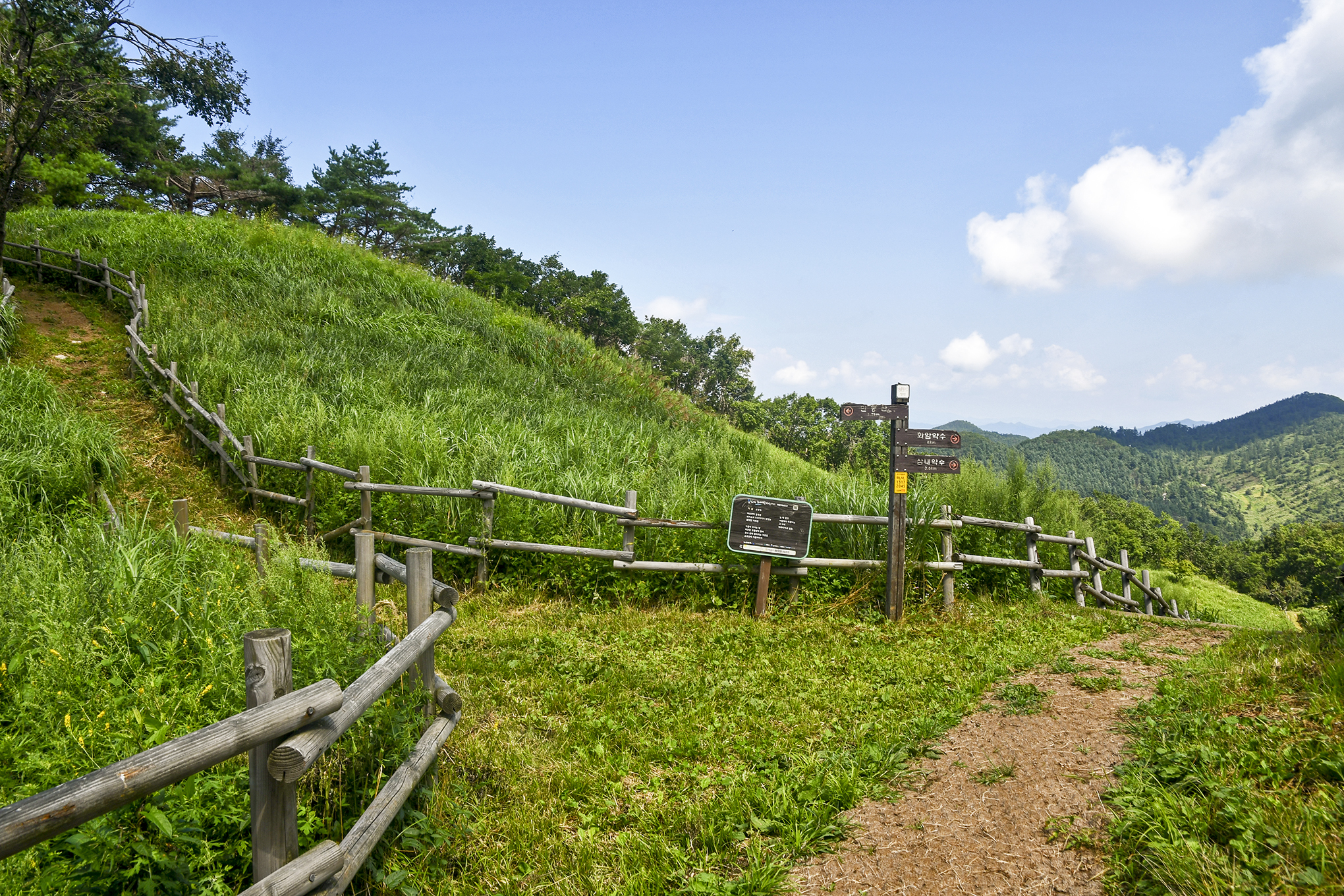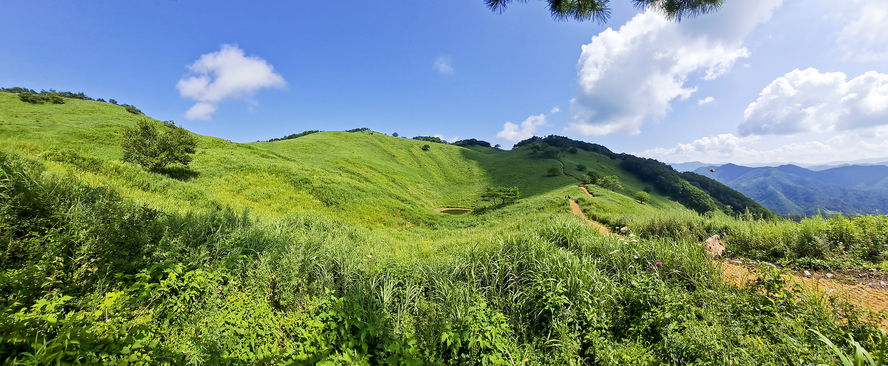 억새풀이 가득한 민둥산, 가을이면 은빛 억새가 반짝이며 장관을 연출하는 길이다.