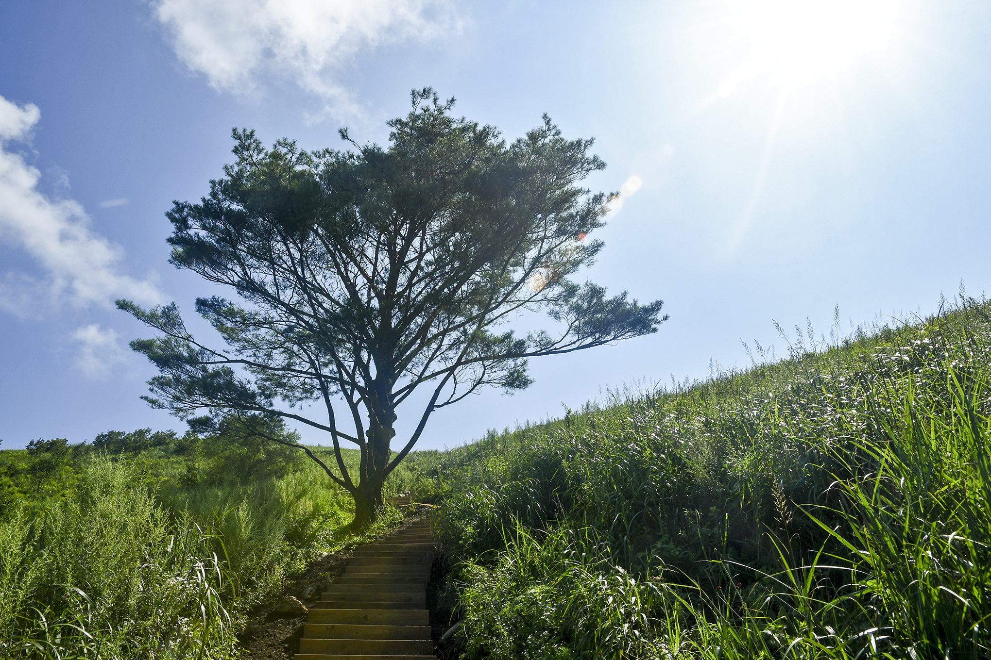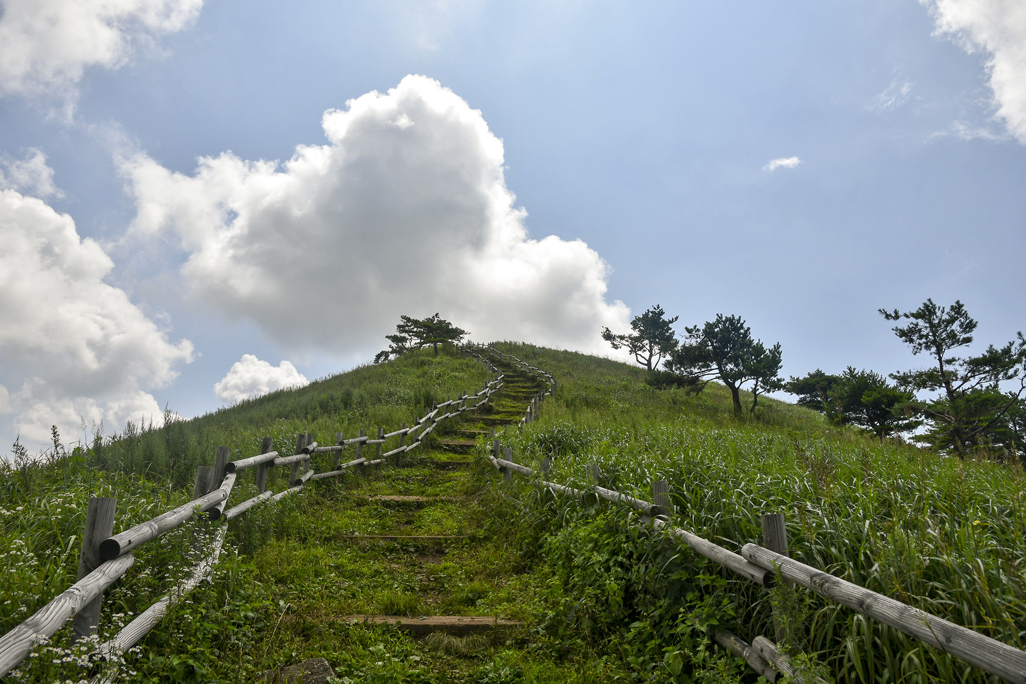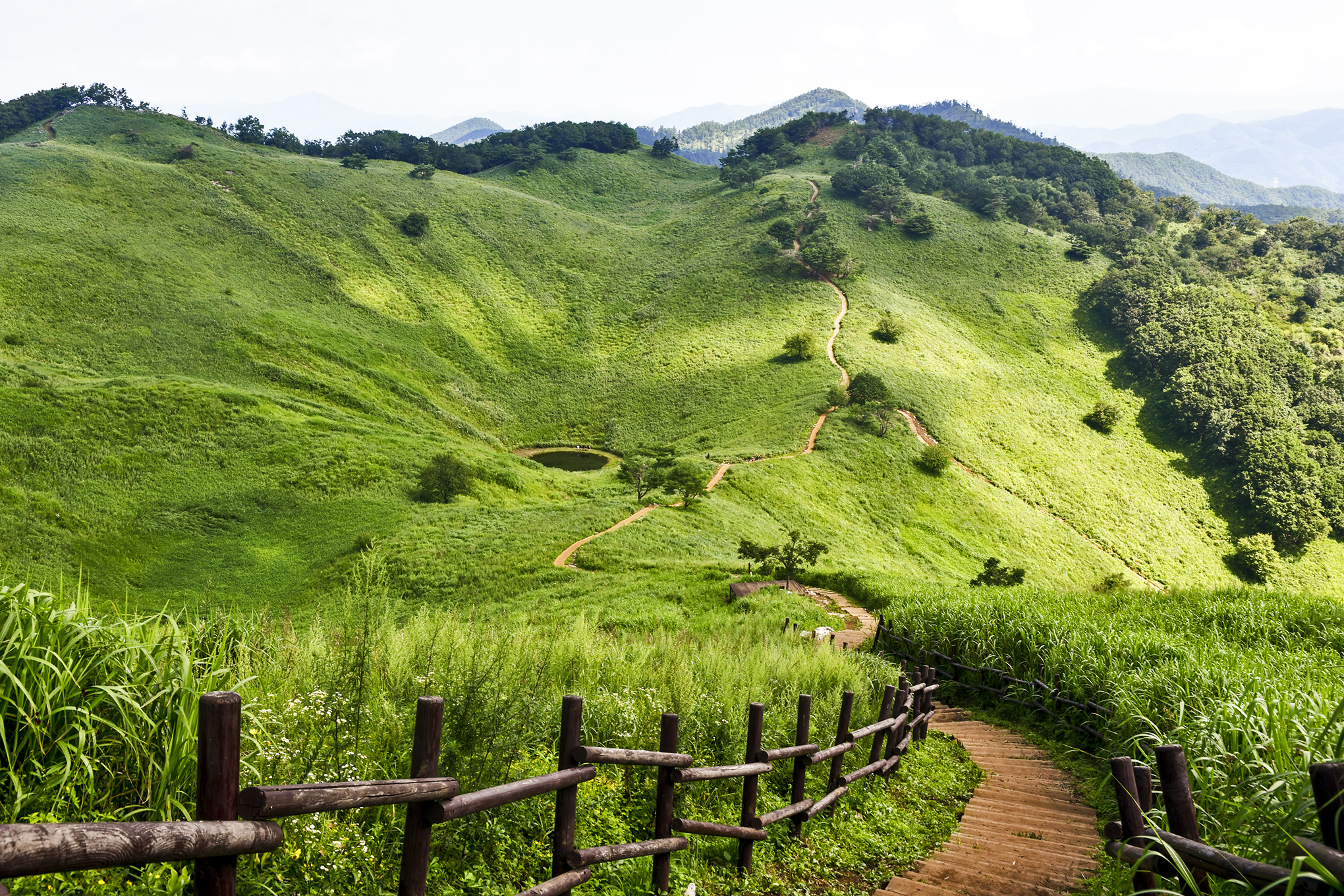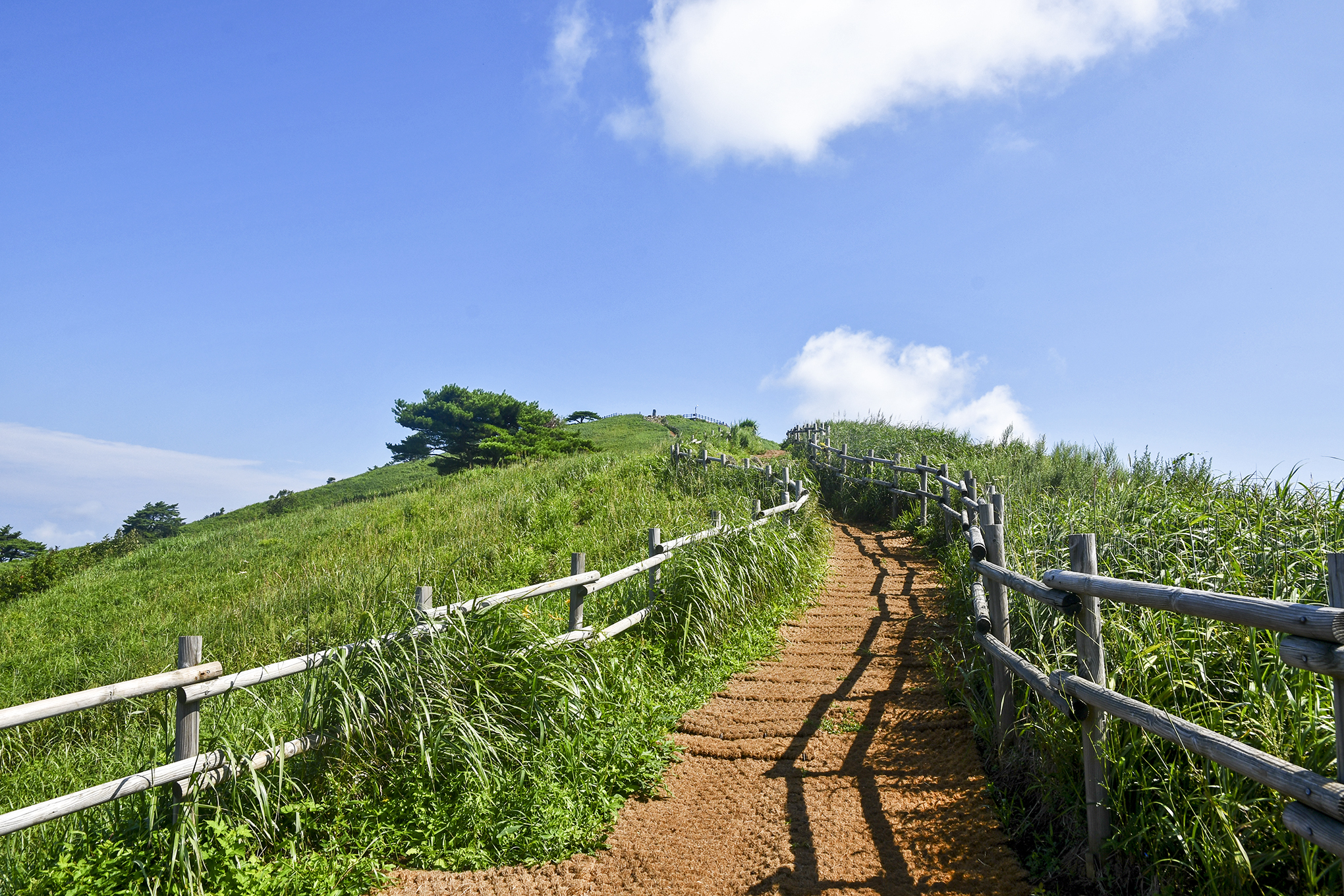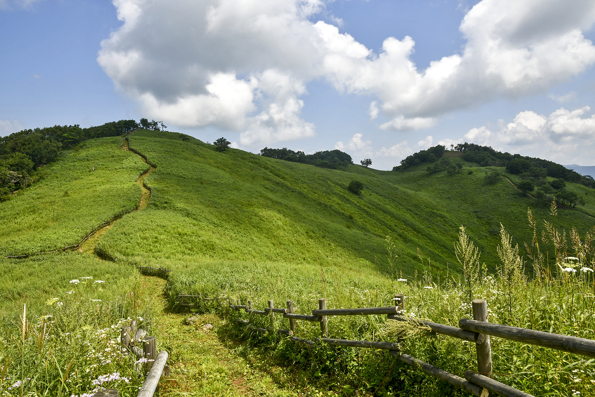 억새풀이 가득한 민둥산, 가을이면 은빛 억새가 반짝이며 장관을 연출하는 길이다.