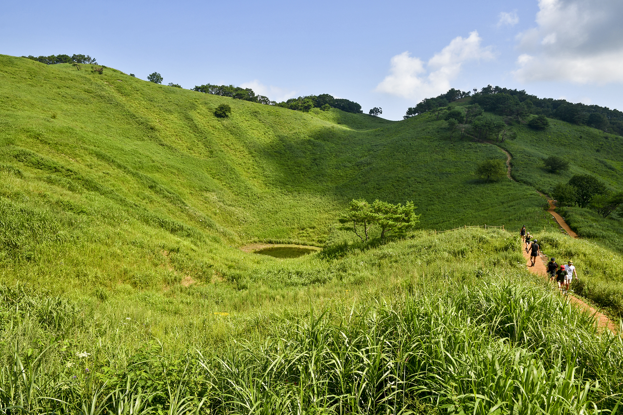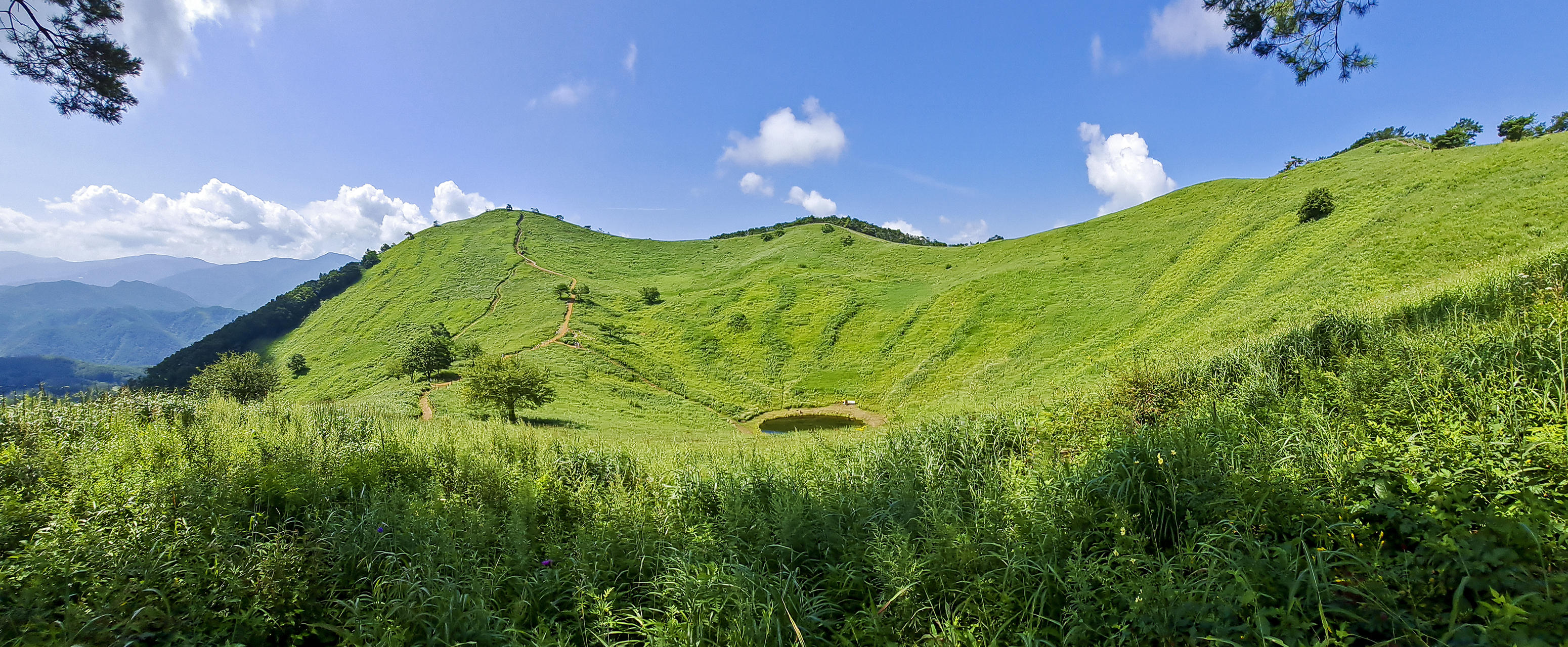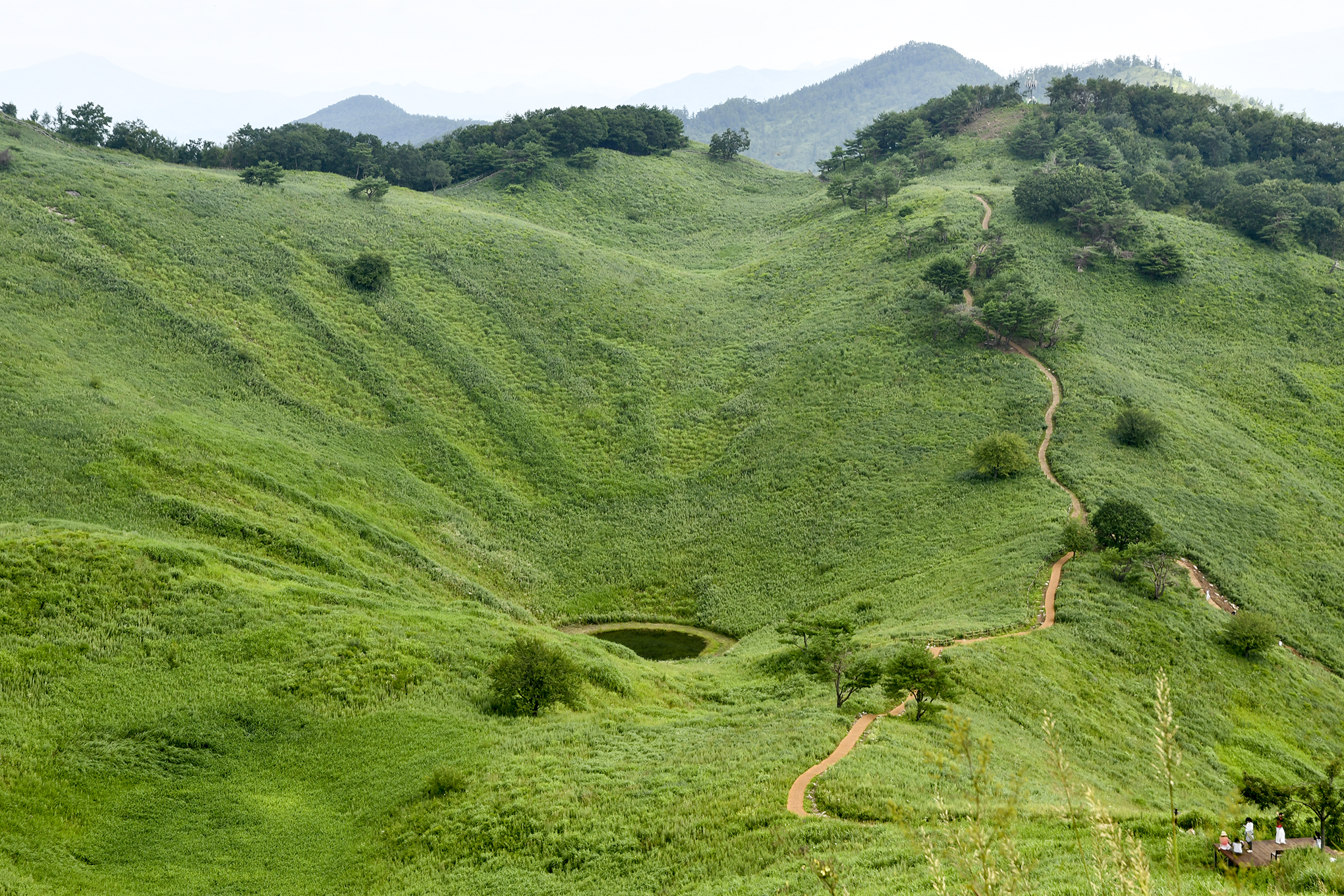 화산 분화구처럼 연못이 형성되어 있어 미니 백록담이라 불린다는데 제주의 오름을 닮은것도 같고, 보고만 있어도 힐링이 되는 풍경이다.