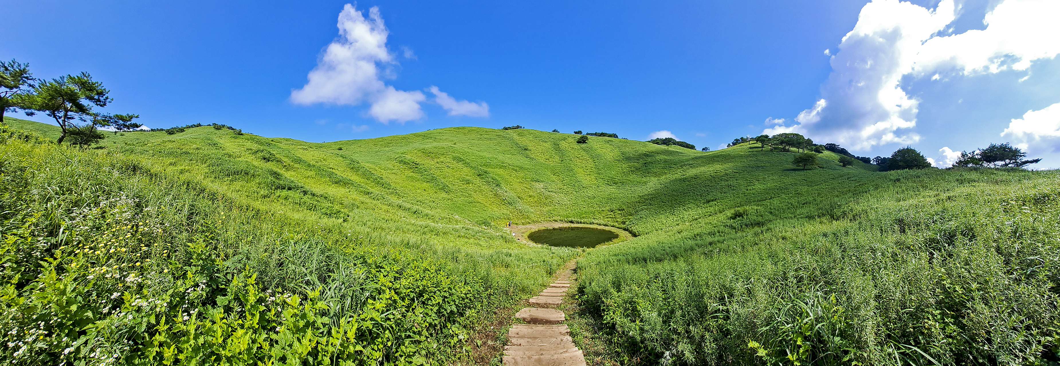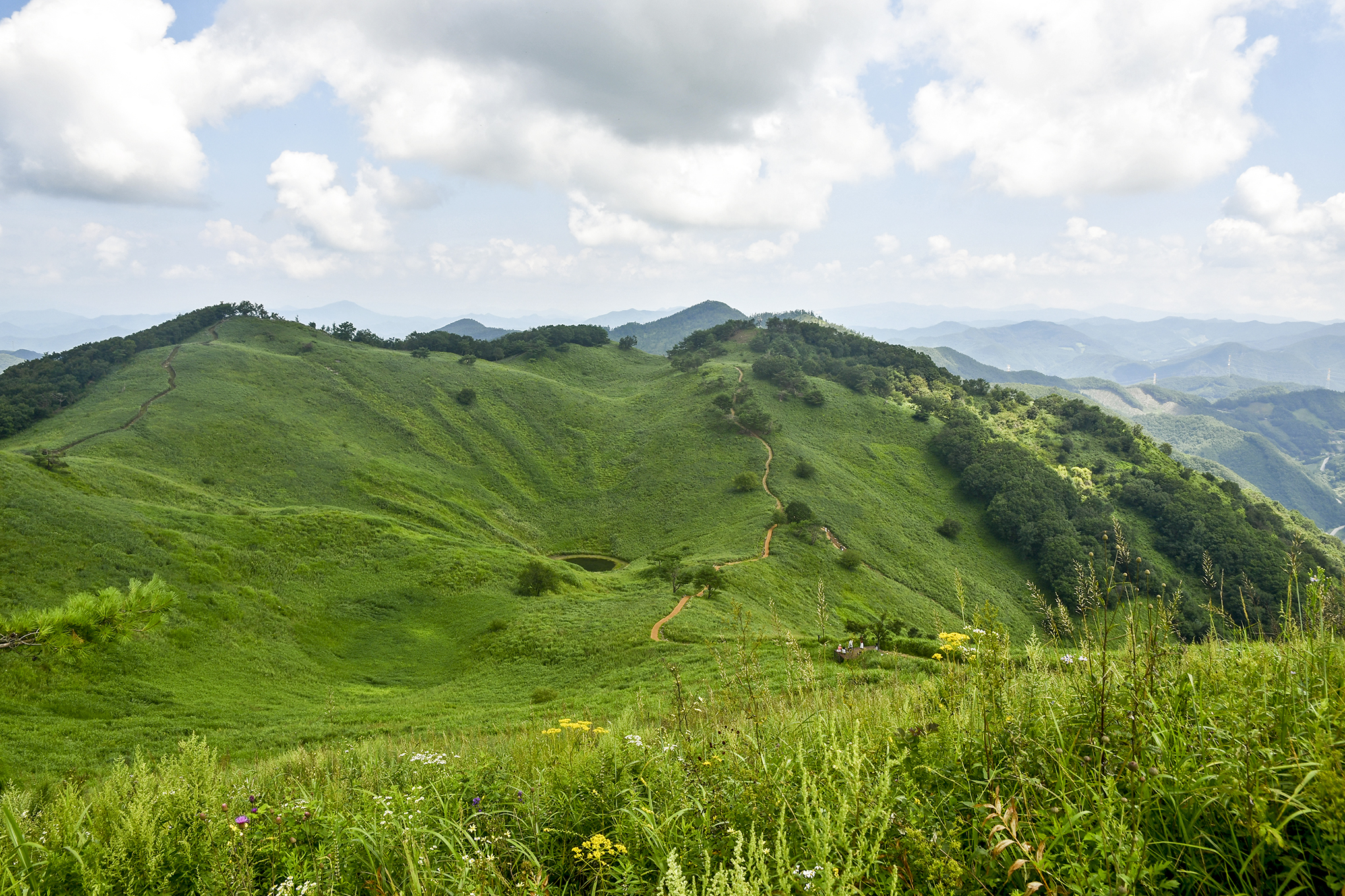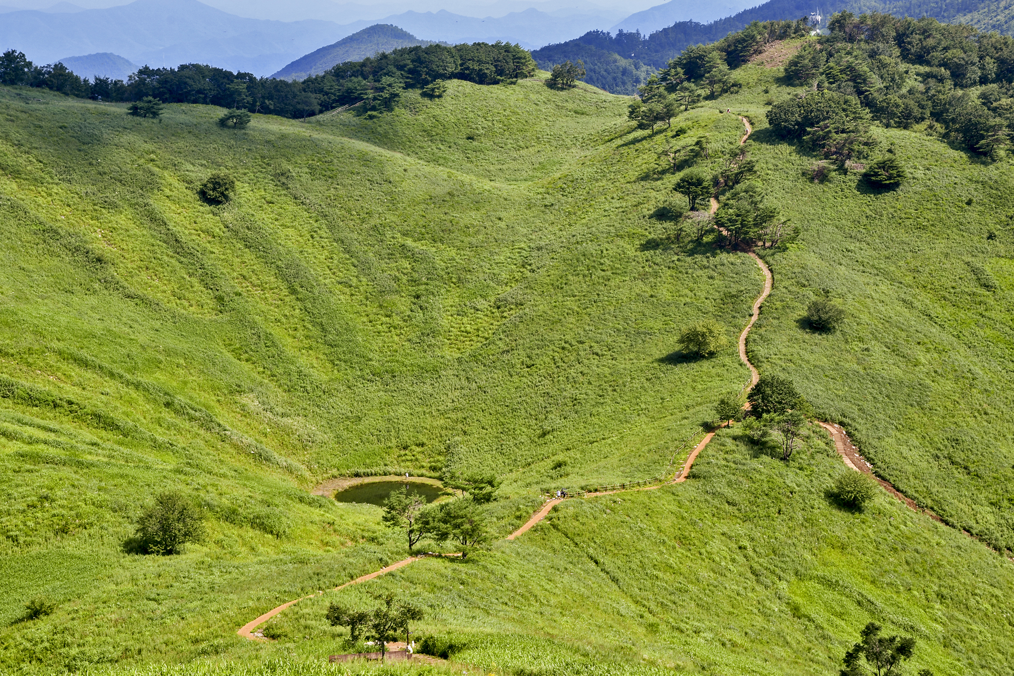 화산 분화구처럼 연못이 형성되어 있어 미니 백록담이라 불린다는데 제주의 오름을 닮은것도 같고, 보고만 있어도 힐링이 되는 풍경이다.