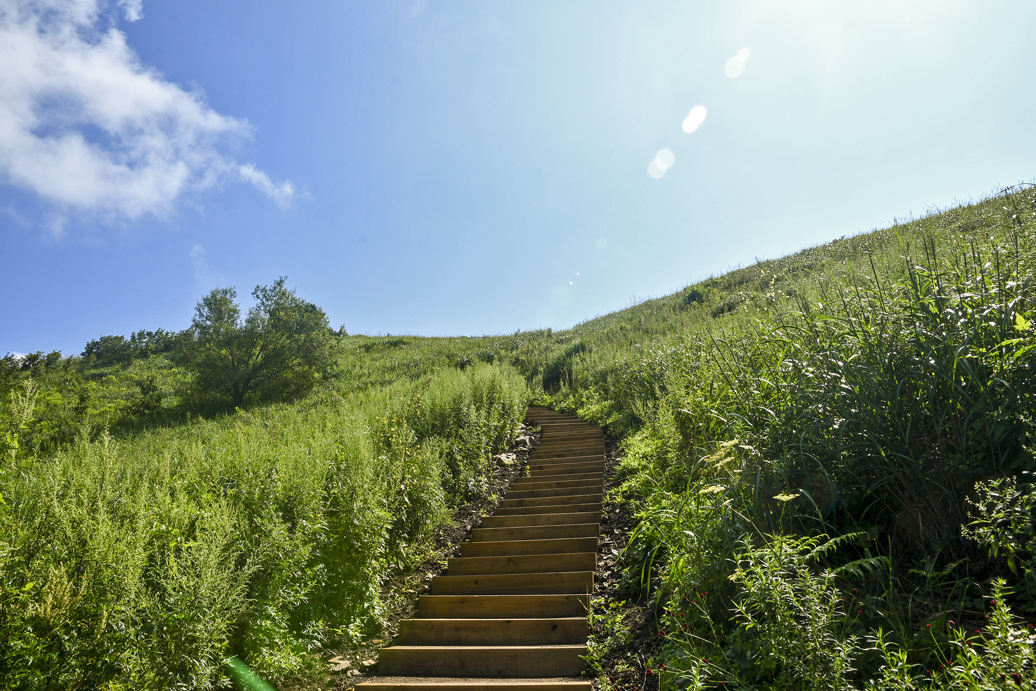 민둥산 능선으로 올라가는 계단길이 꽤나 길고 가파르다.