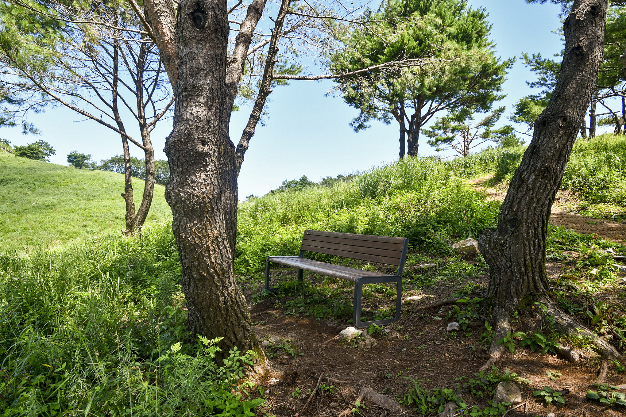 오르막길 중간 부분에 그늘진 쉼터가 있으니 햇빛을 피할 수 없는 민둥산에서 그야말로 오아시스를 만난 기분이다.