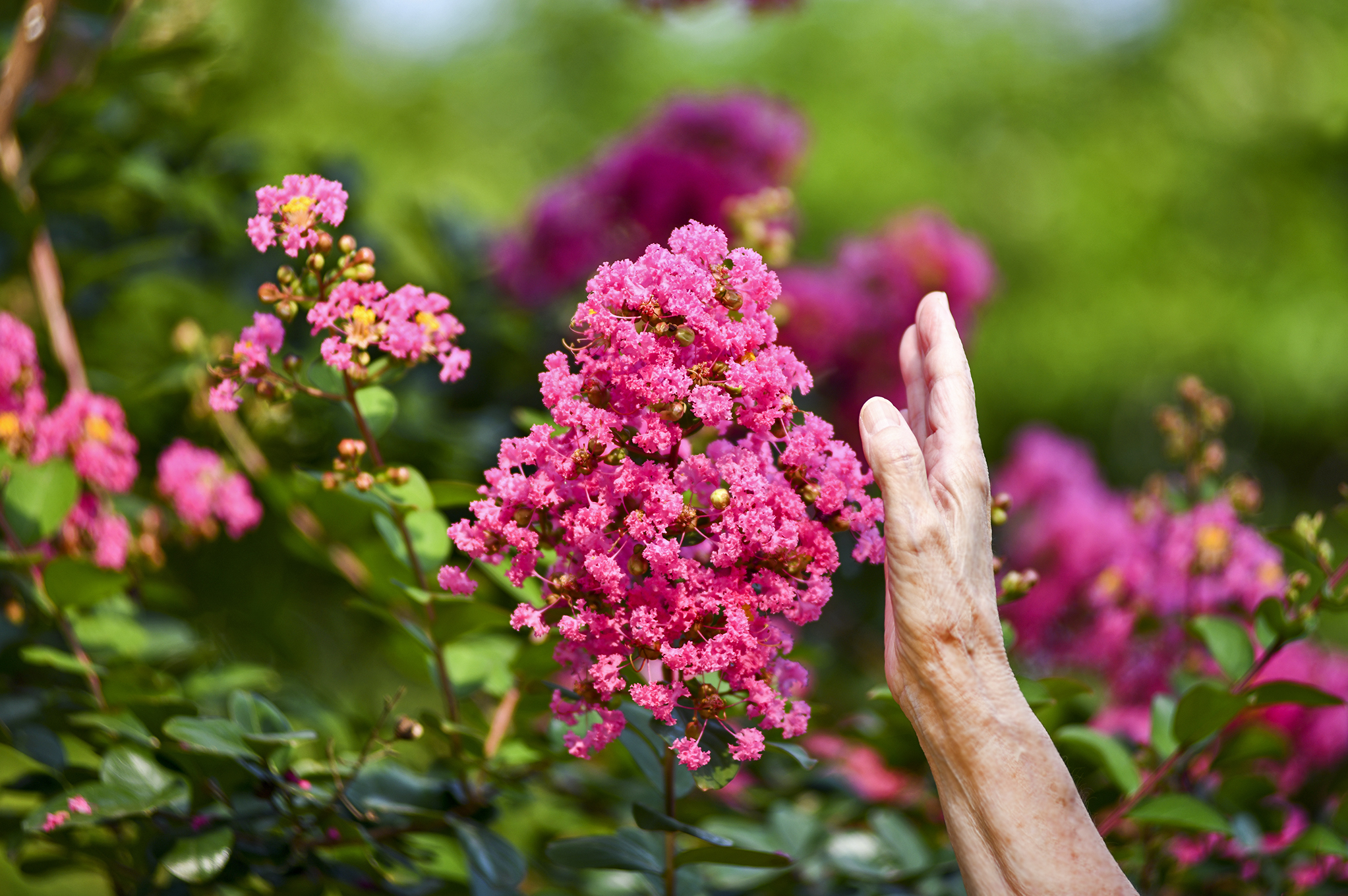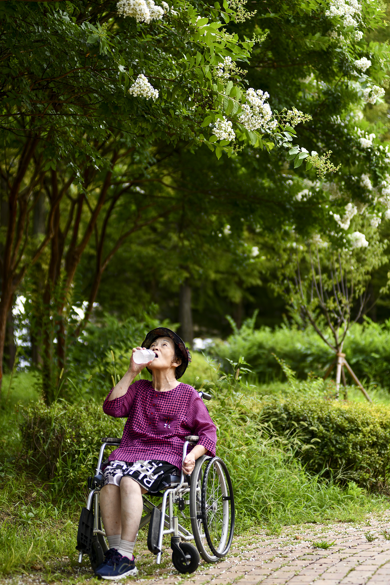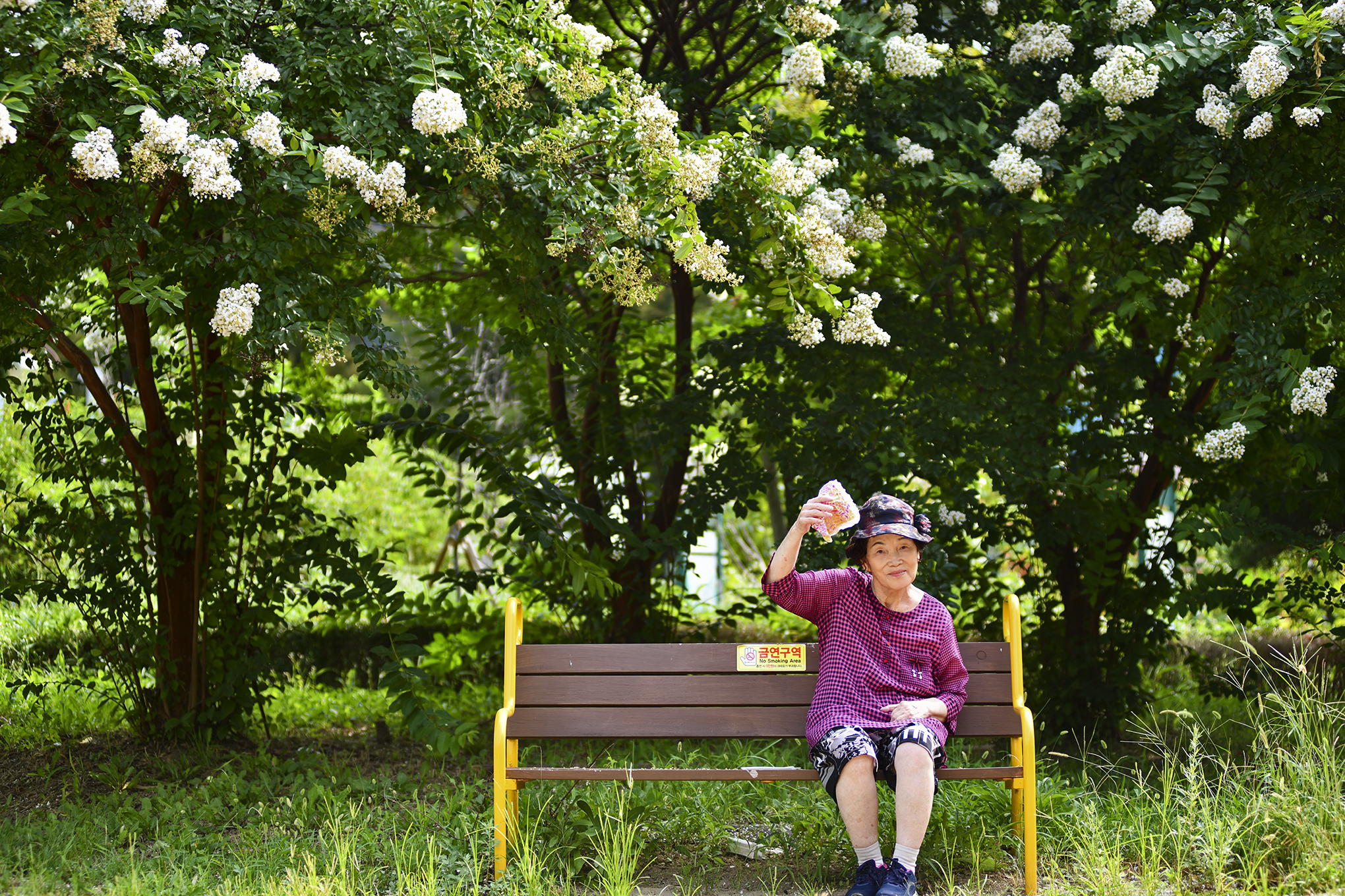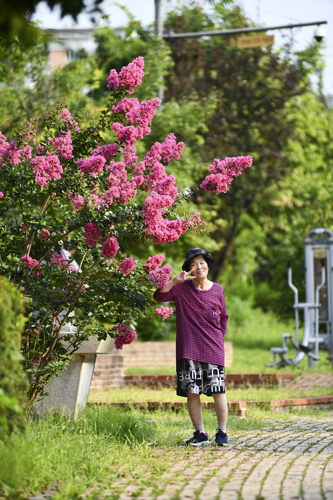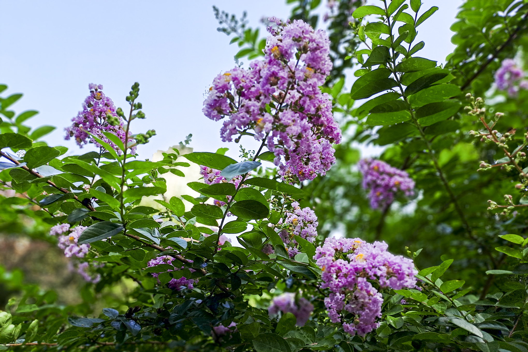 급수대 옆 작은 배롱나무는 제 몸집에 비해 크고 풍성한 꽃송이를 매달고 있다.