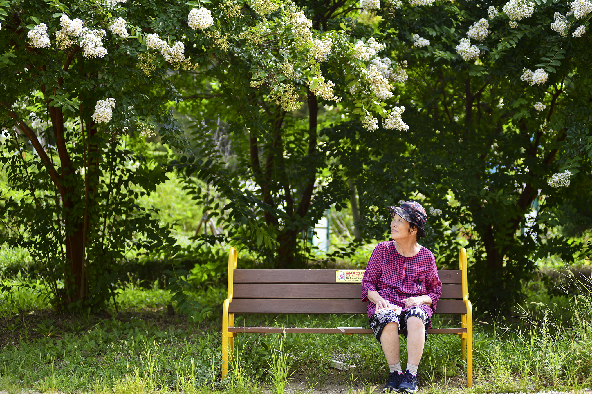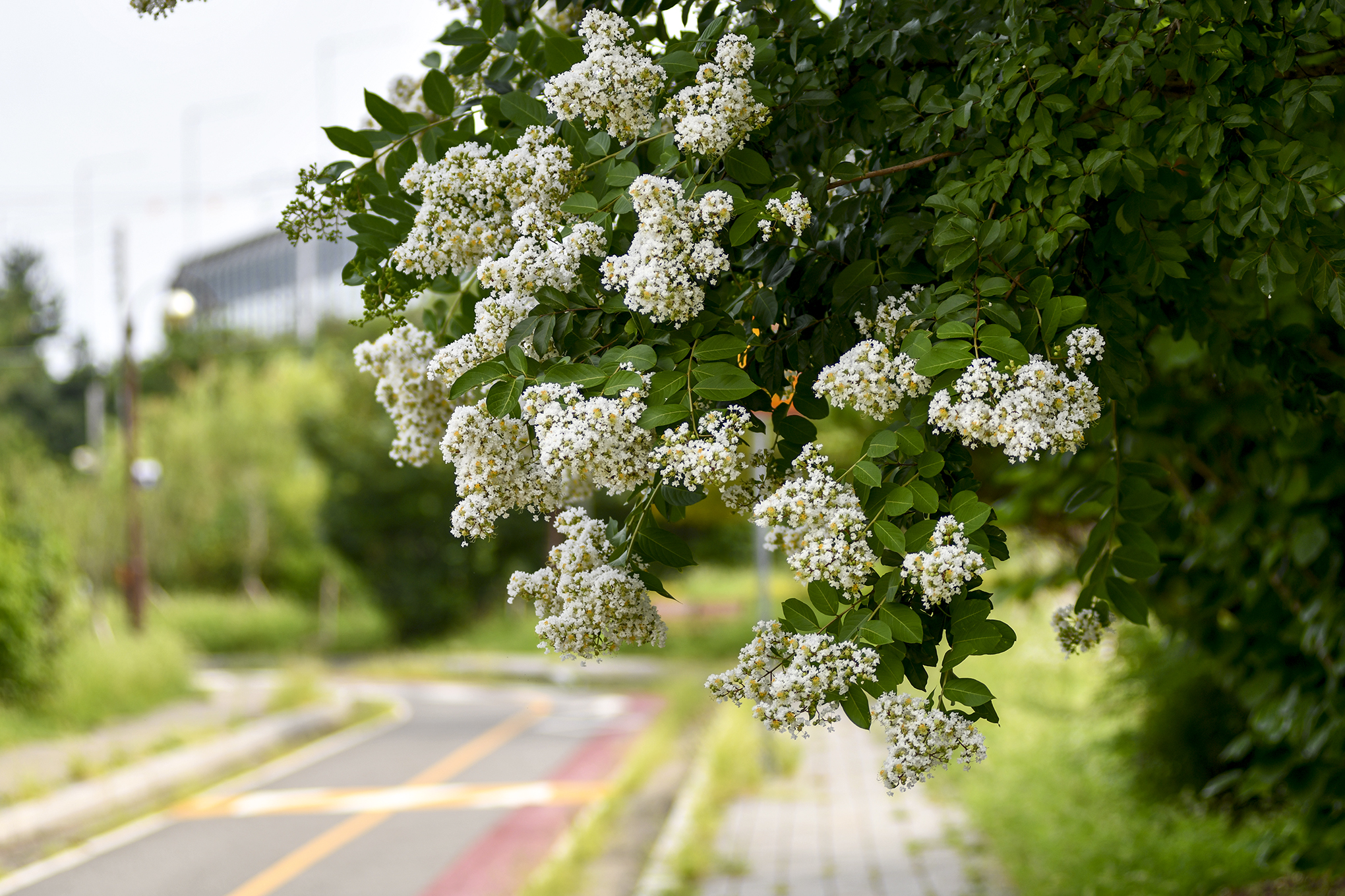 분홍이나 빨간꽃이 대부분이라고 하는데 이곳에는 흰꽃을 피우는 흰배롱나무가 많다.