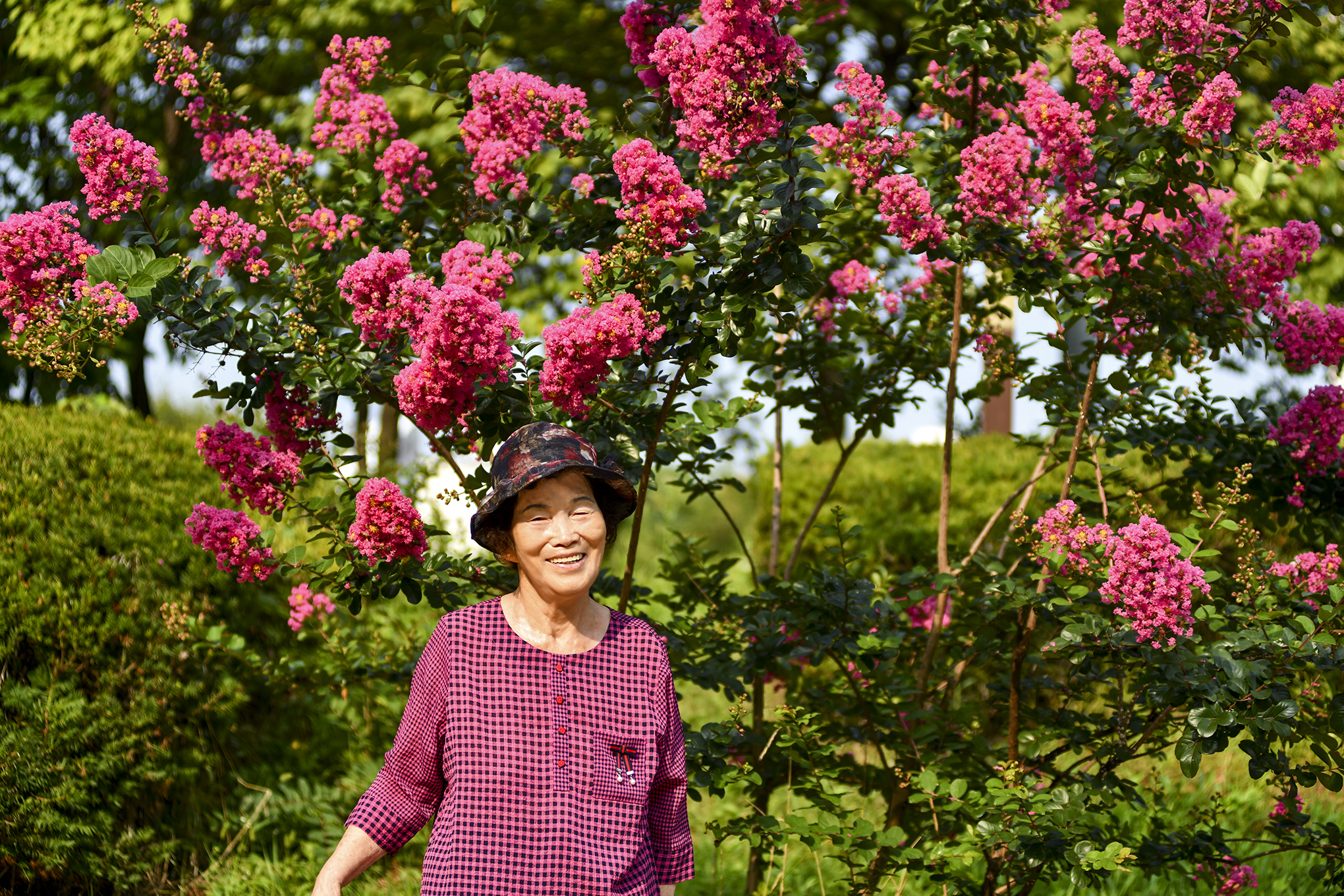 꽃잎이 쪼글쪼글하지만 그게 매력인 배롱나무꽃, 뜨거운 여름날에도 변치않는 한예쁨이다.