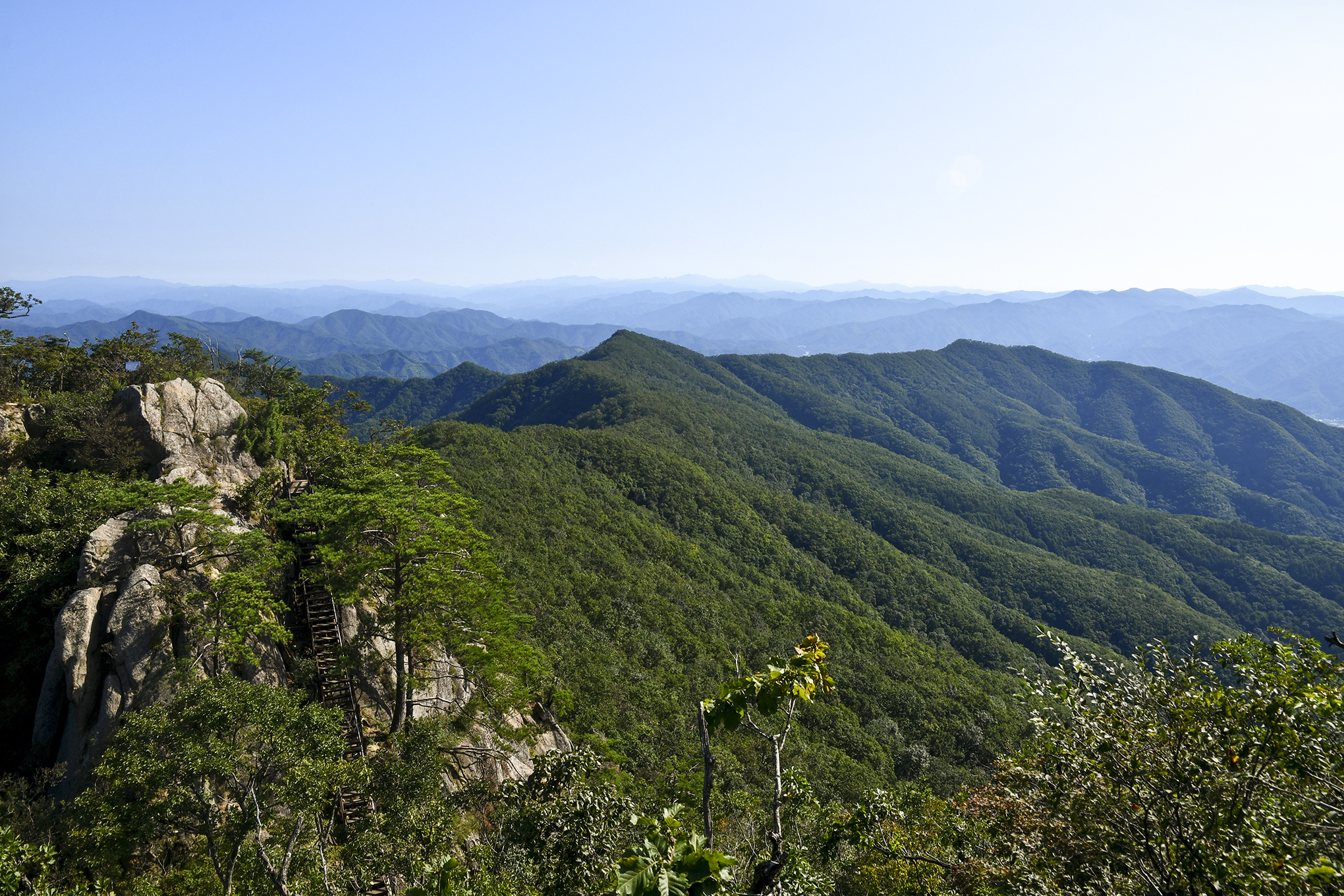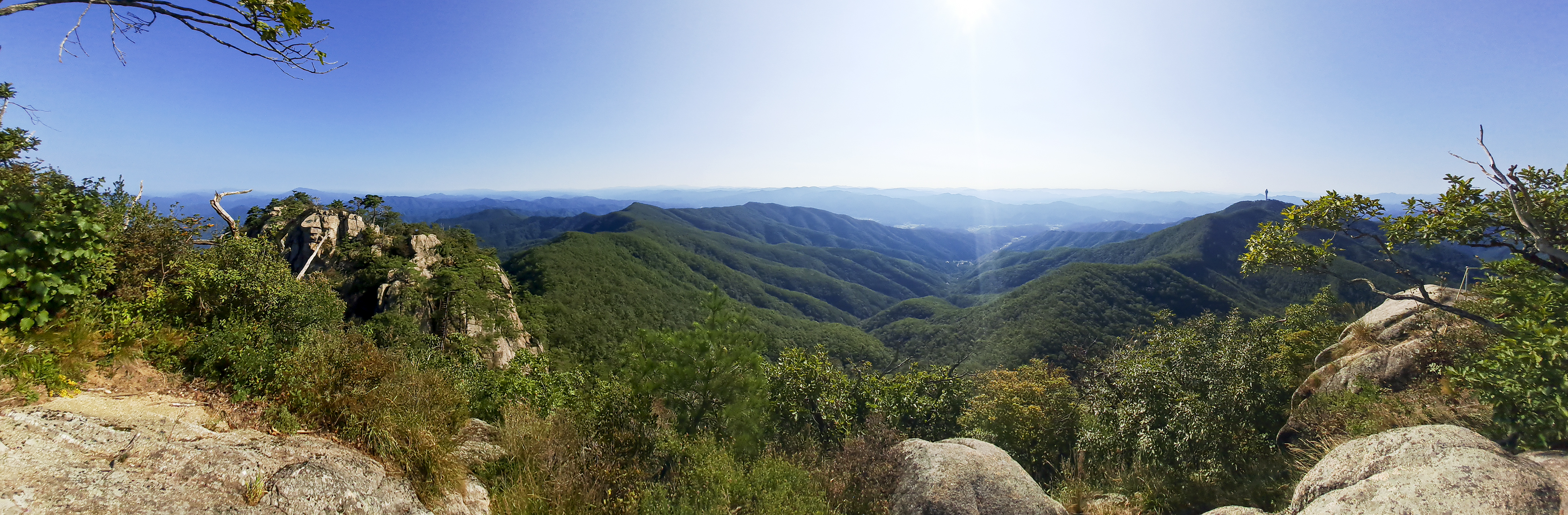정상석이 있는 곳에서는 나무가 시야를 가리기때문에 조금 아래로 내려오면 더 좋은 조망권을 확보할 수 있다.