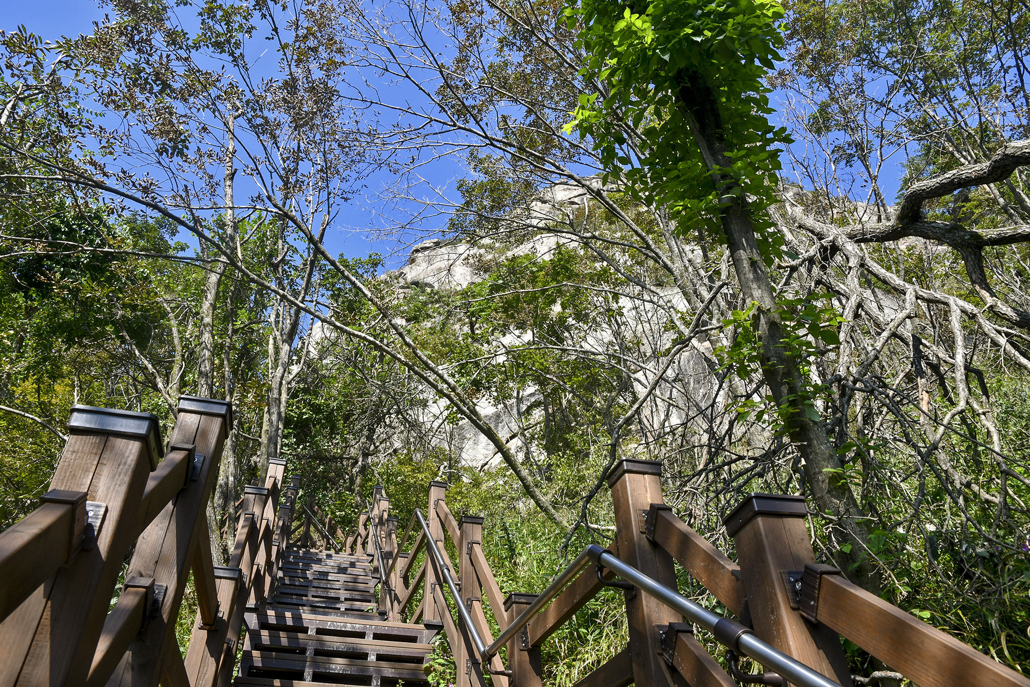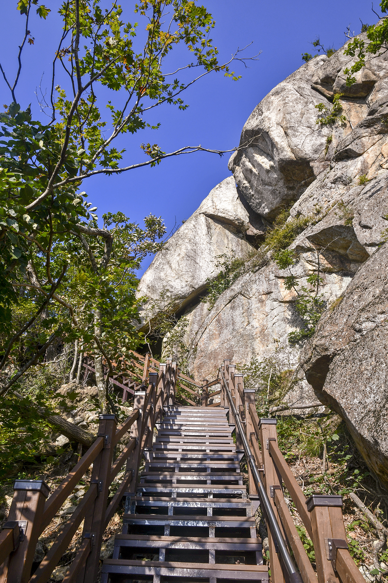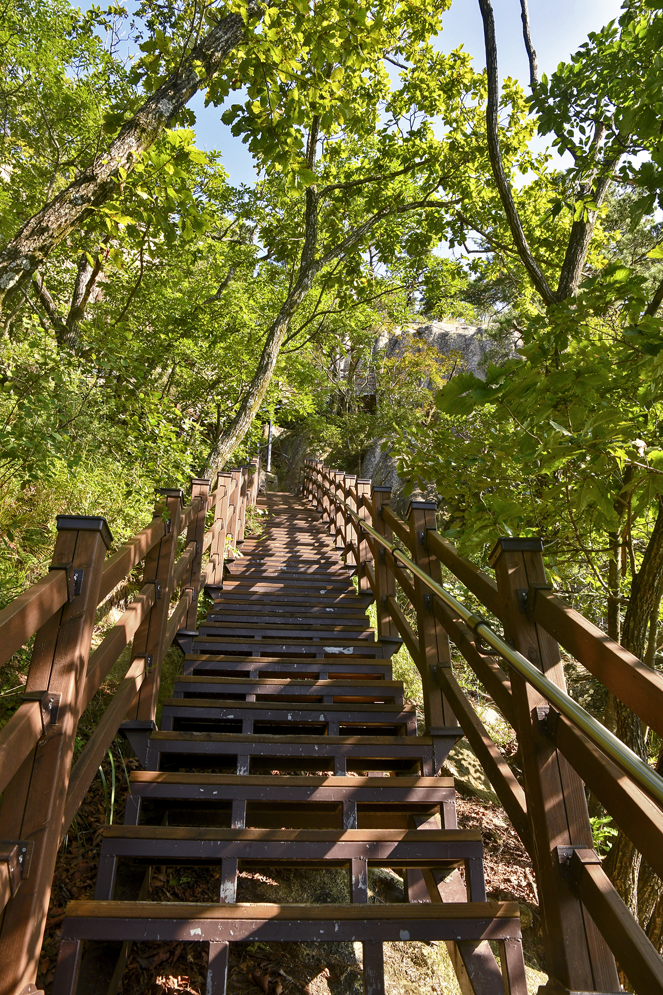 계단 초입에서는 나무에 시야가 가려 1봉인 정상의 암벽이 확실하게 보이지 않는다.