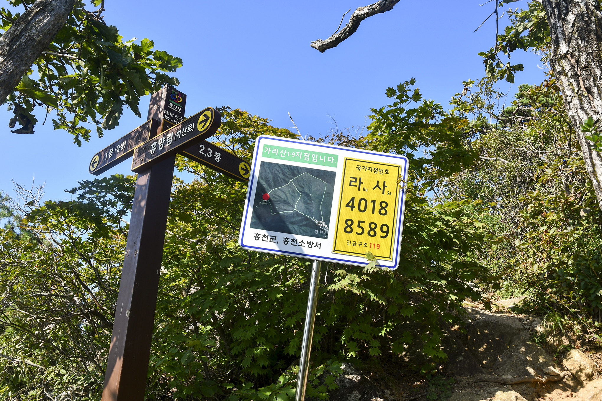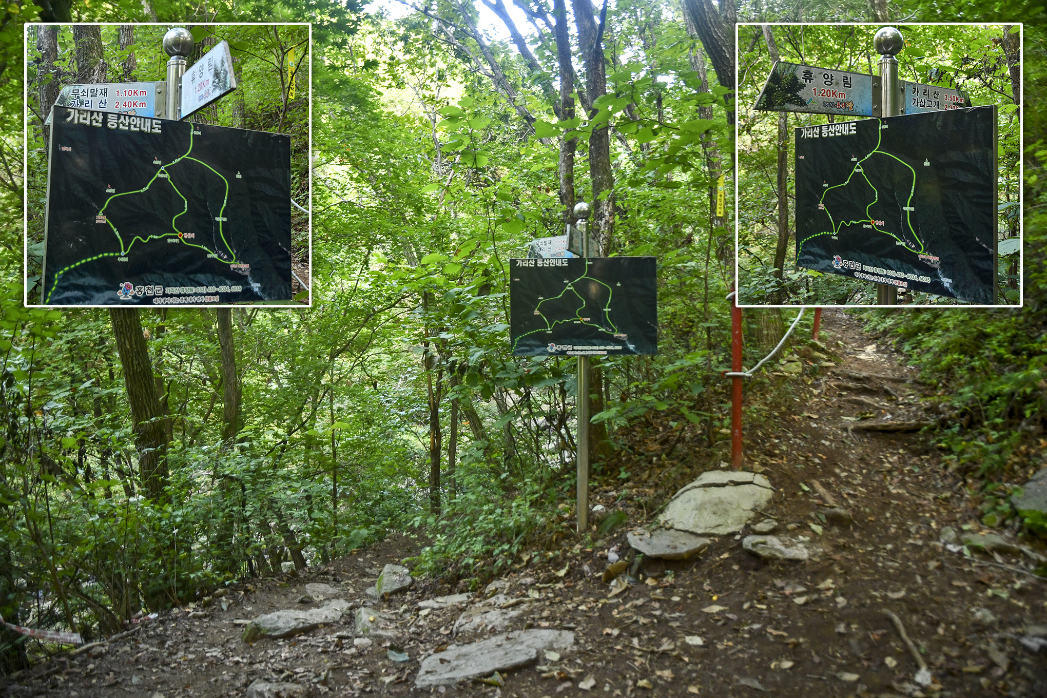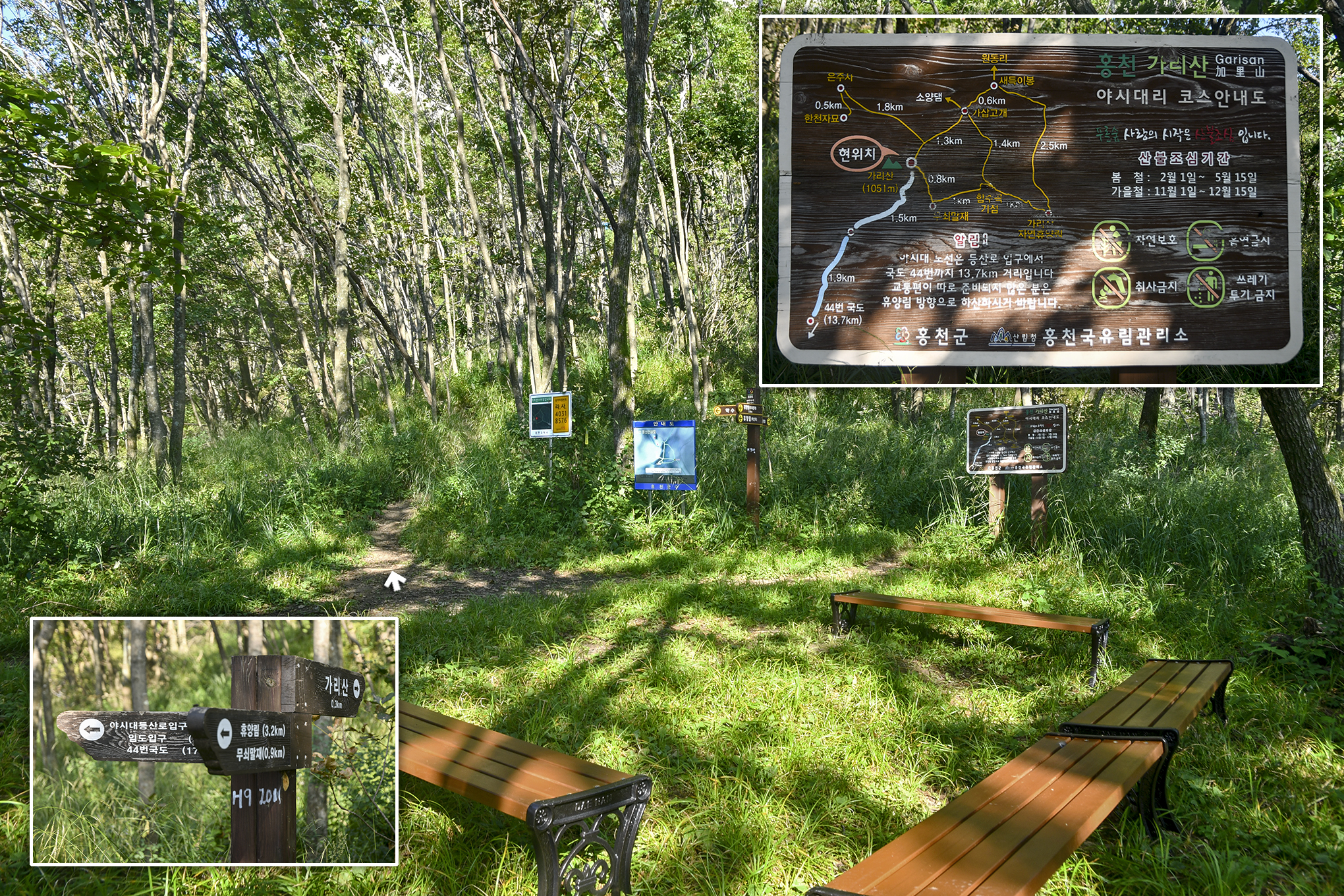 코스 : 가리산 자연휴양림 제2주차장 - 합수곡기점 - 가리산연리목 - 무쇠말재 - 가리산 정상(1봉) - 2봉,3봉 - 무쇠말재 - 제2주차장 (원점회귀)