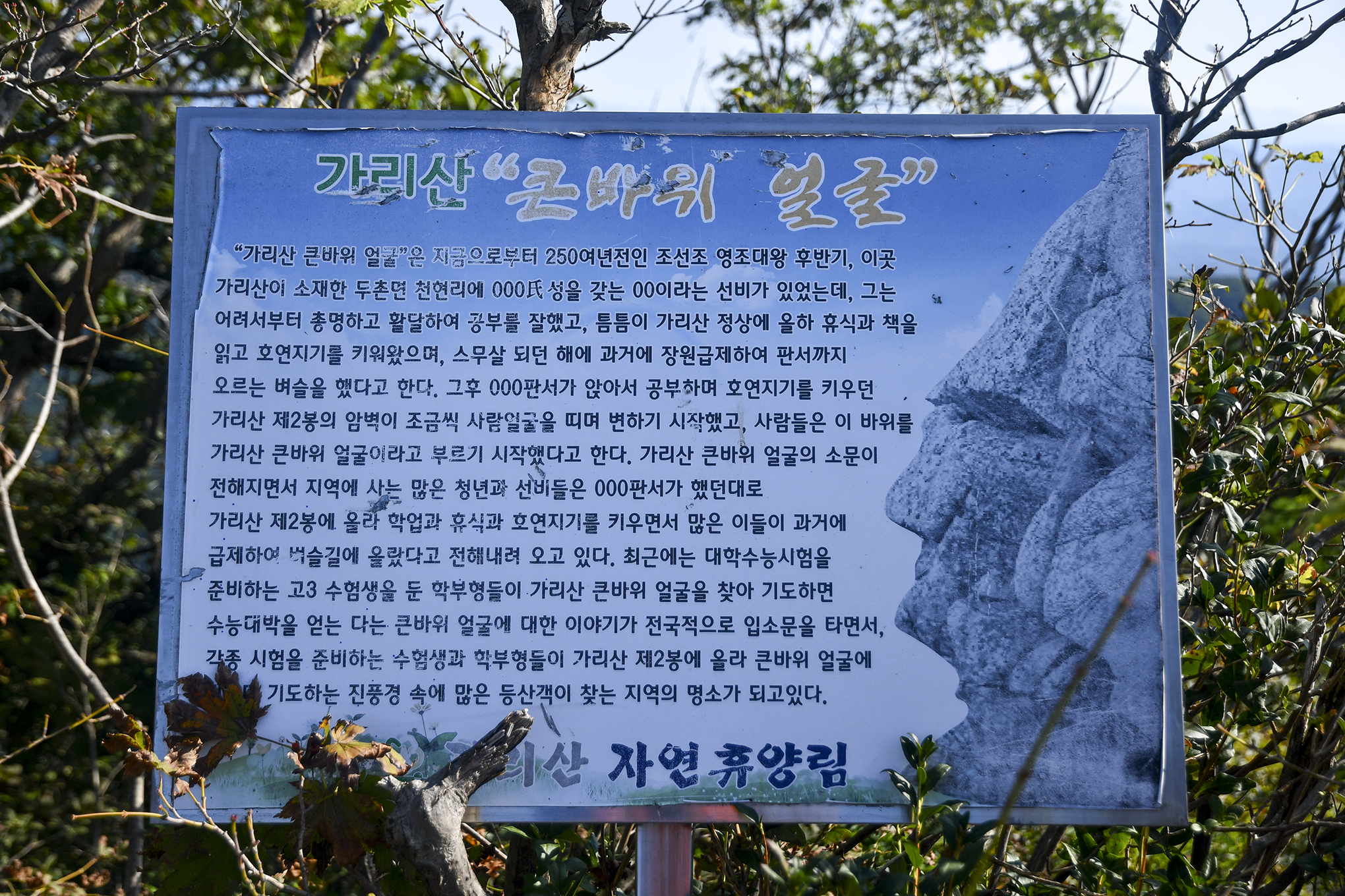 2봉에서 볼 수 있는 큰바위 얼굴, 전해지는 이야기도 읽어보고,