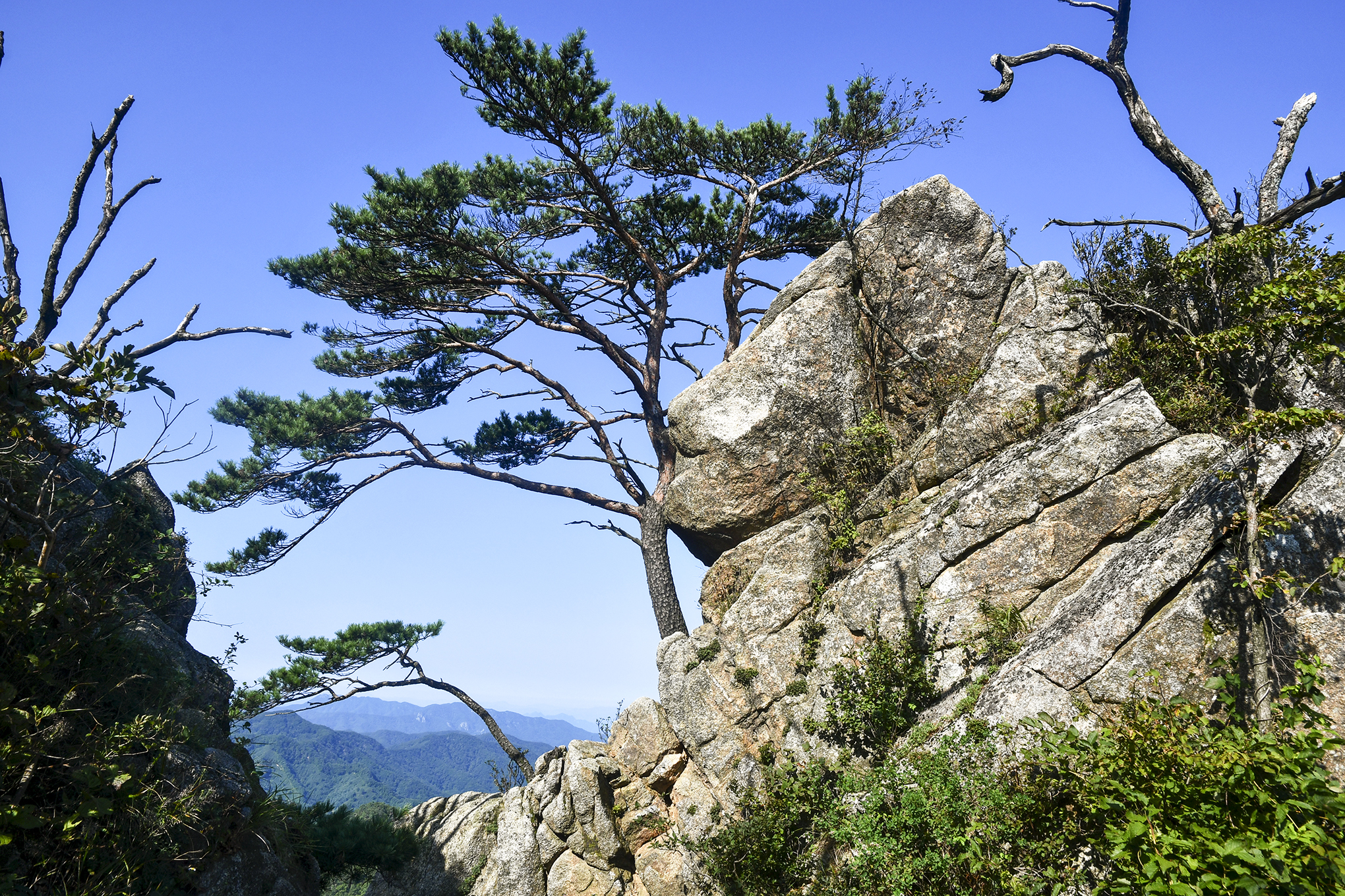 정상 일대는 좁은 협곡을 사이에 둔 3개의 암봉으로 이루어져 있는데 정상인 1봉에서 2봉과 3봉이 차례로 조망된다.