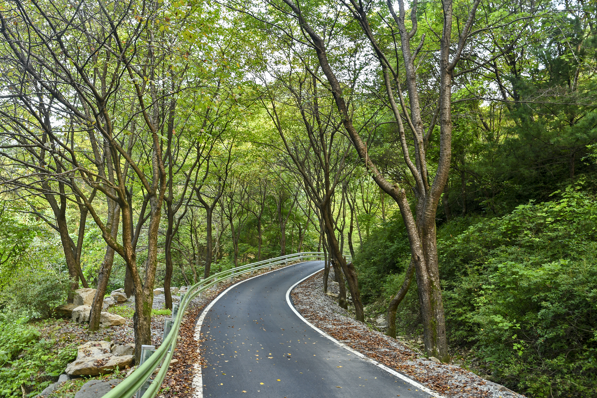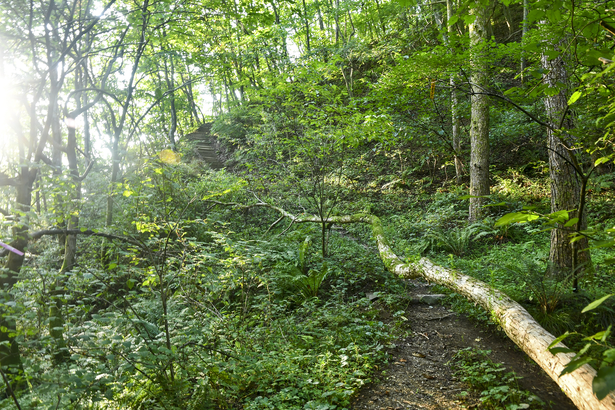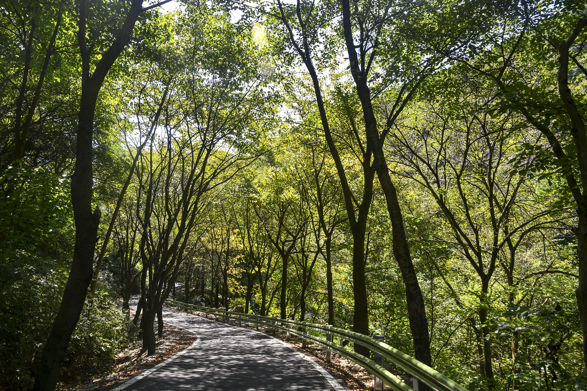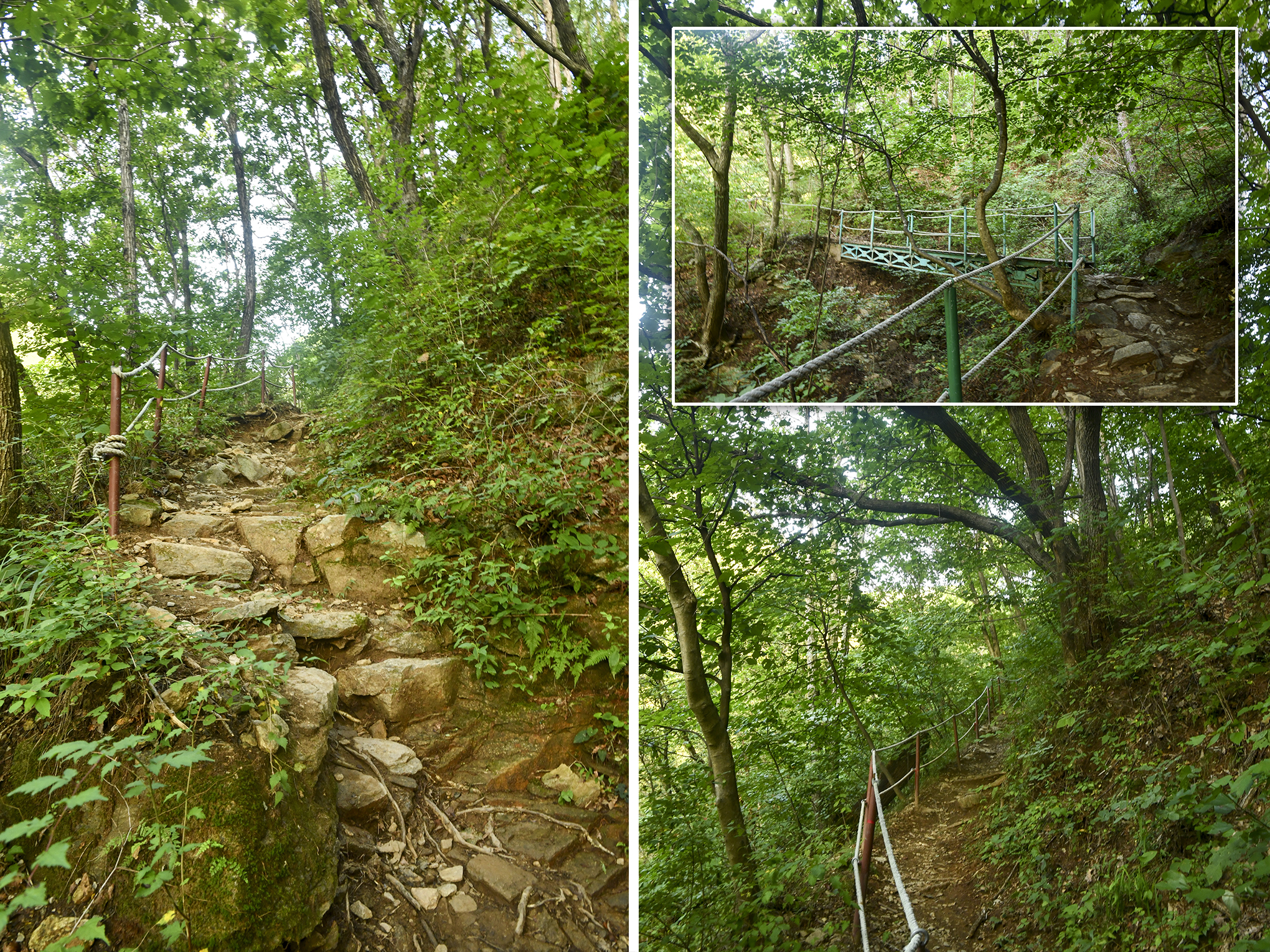 계곡을 건너 산 위로 등산로가 이어지고,