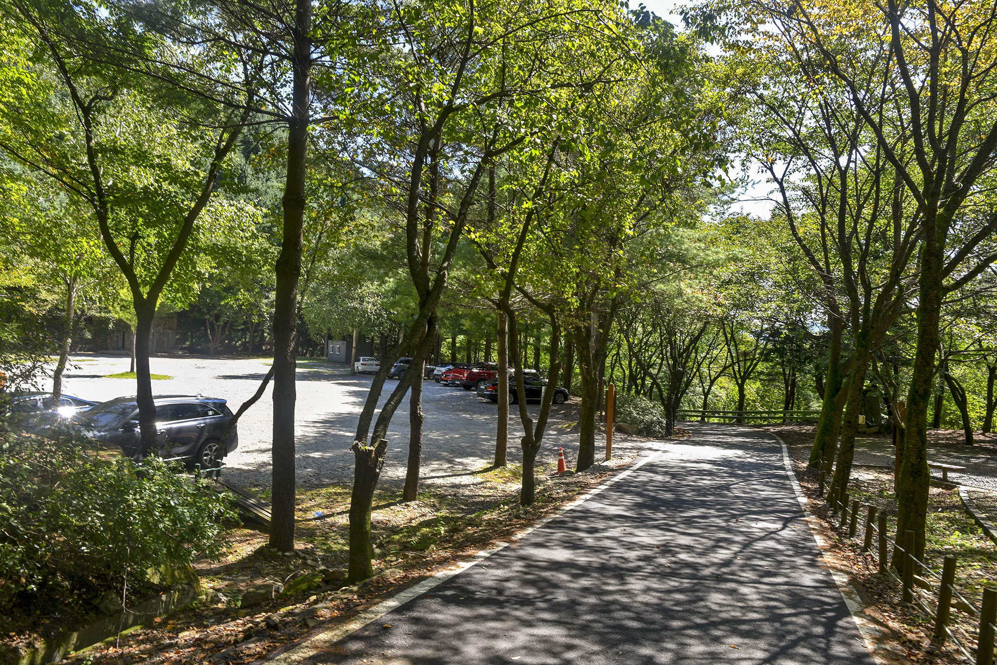 제1주차장을 지나 관리사무소와 매점을 지나면 제2주차장에 도착할 수 있으니 여기서부터 시작하면 1km 정도는 산행거리를 이득볼 수 있다.