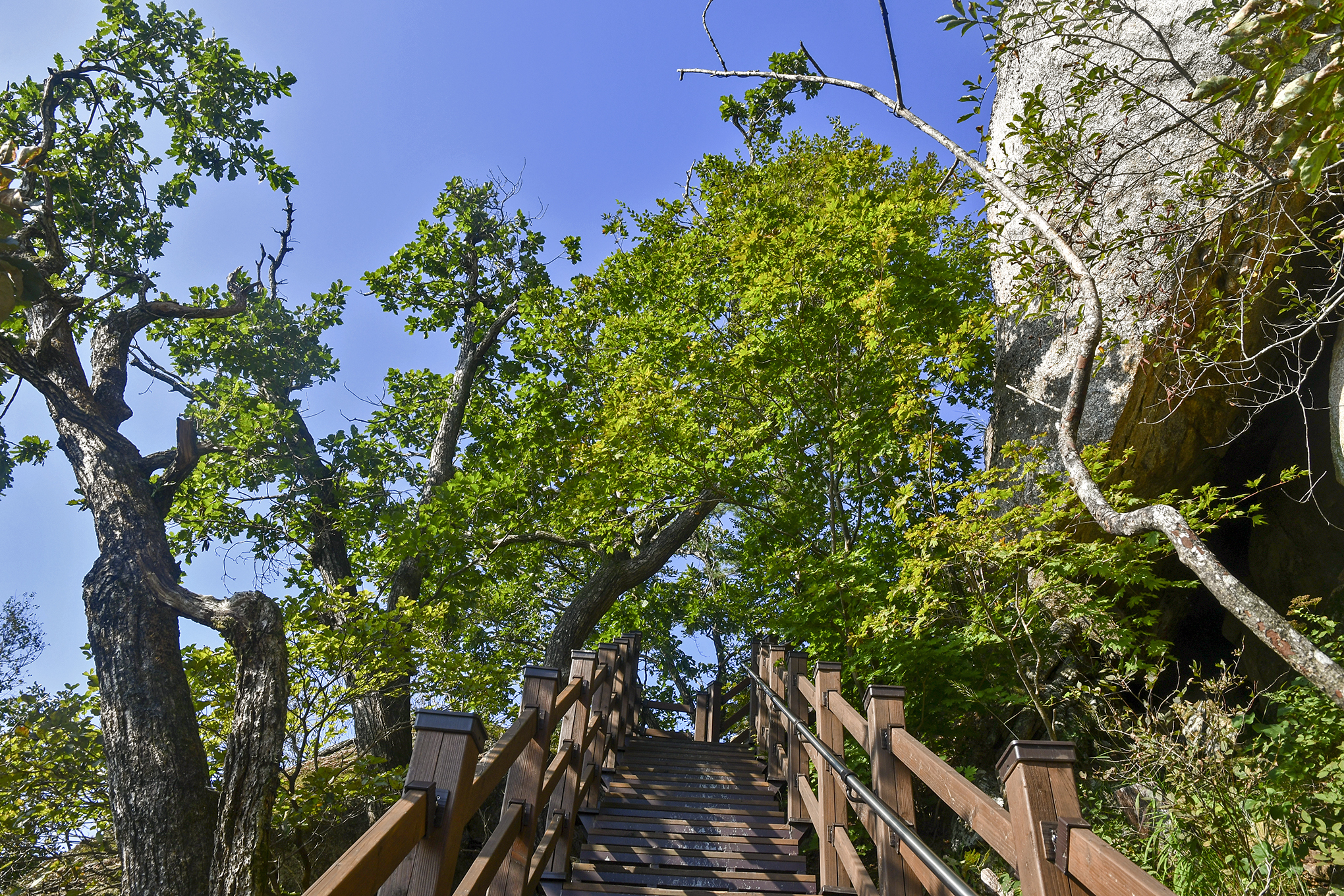 암벽 사이로 이어진 계단, 꼭대기가 얼마 남지 않았다.