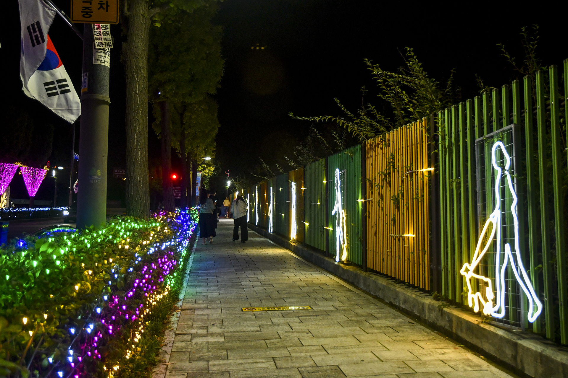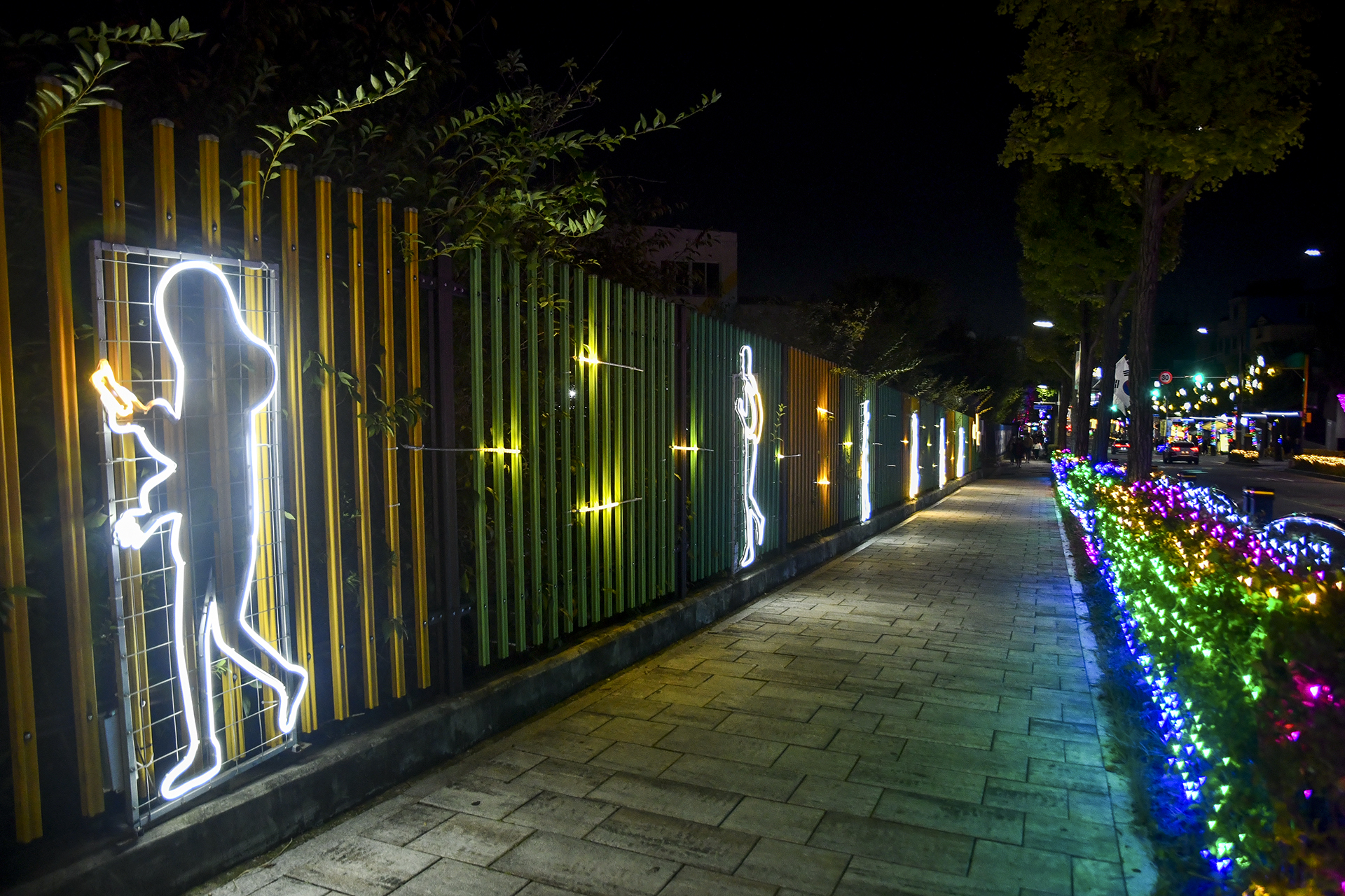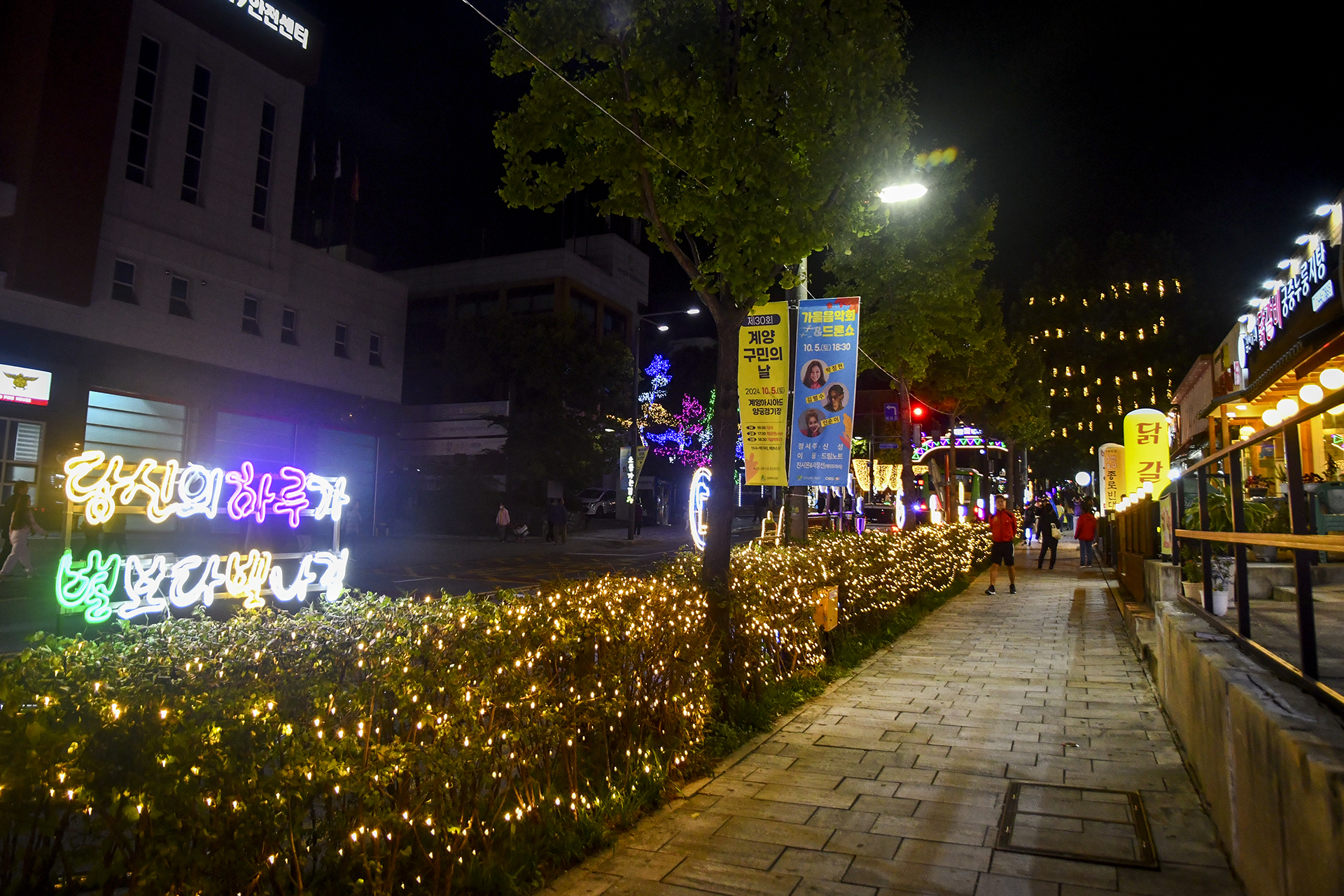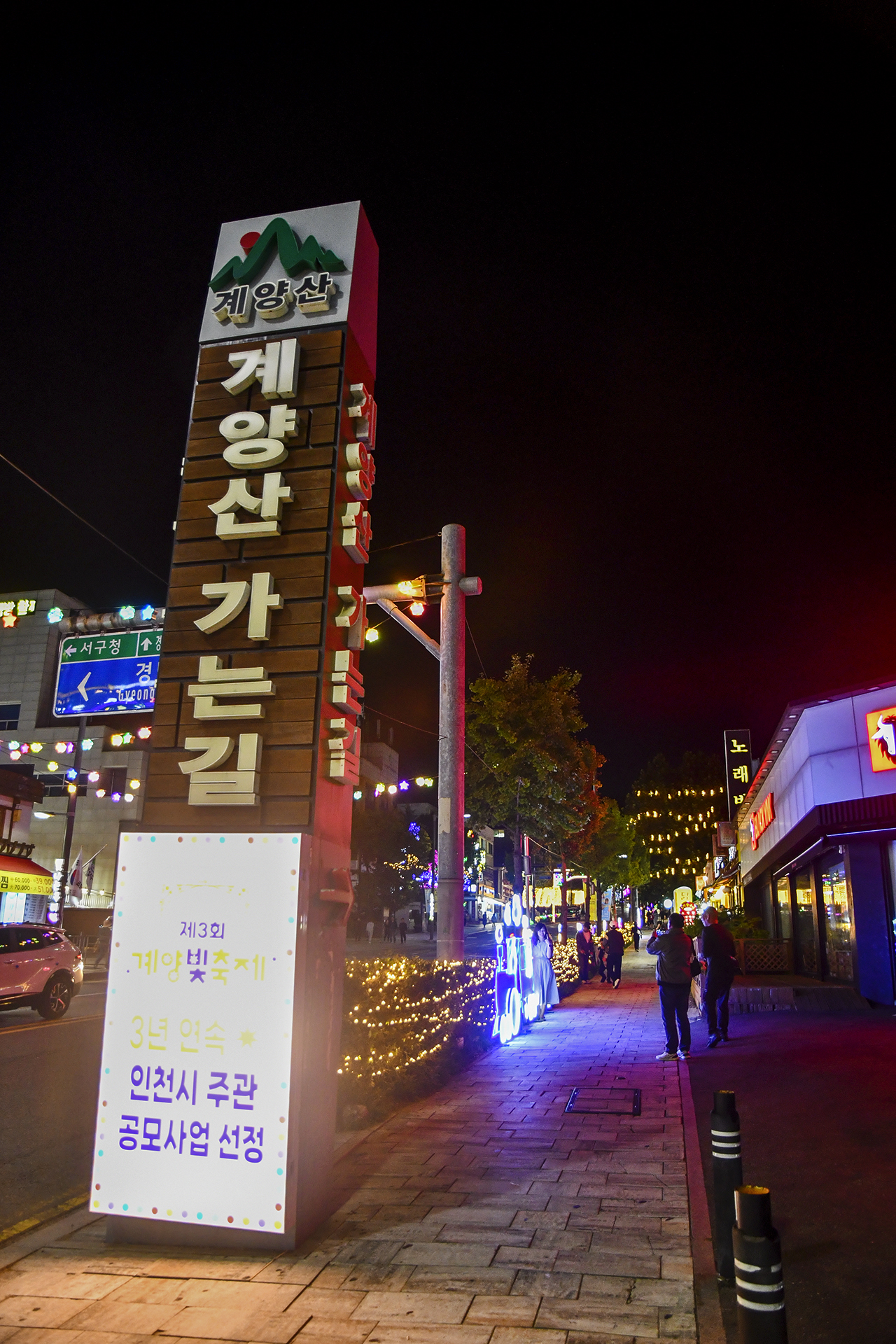 계산역에서 계양산 방향으로 들어서면 양쪽 인도를 따라 빛의거리가 조성되어 있다.