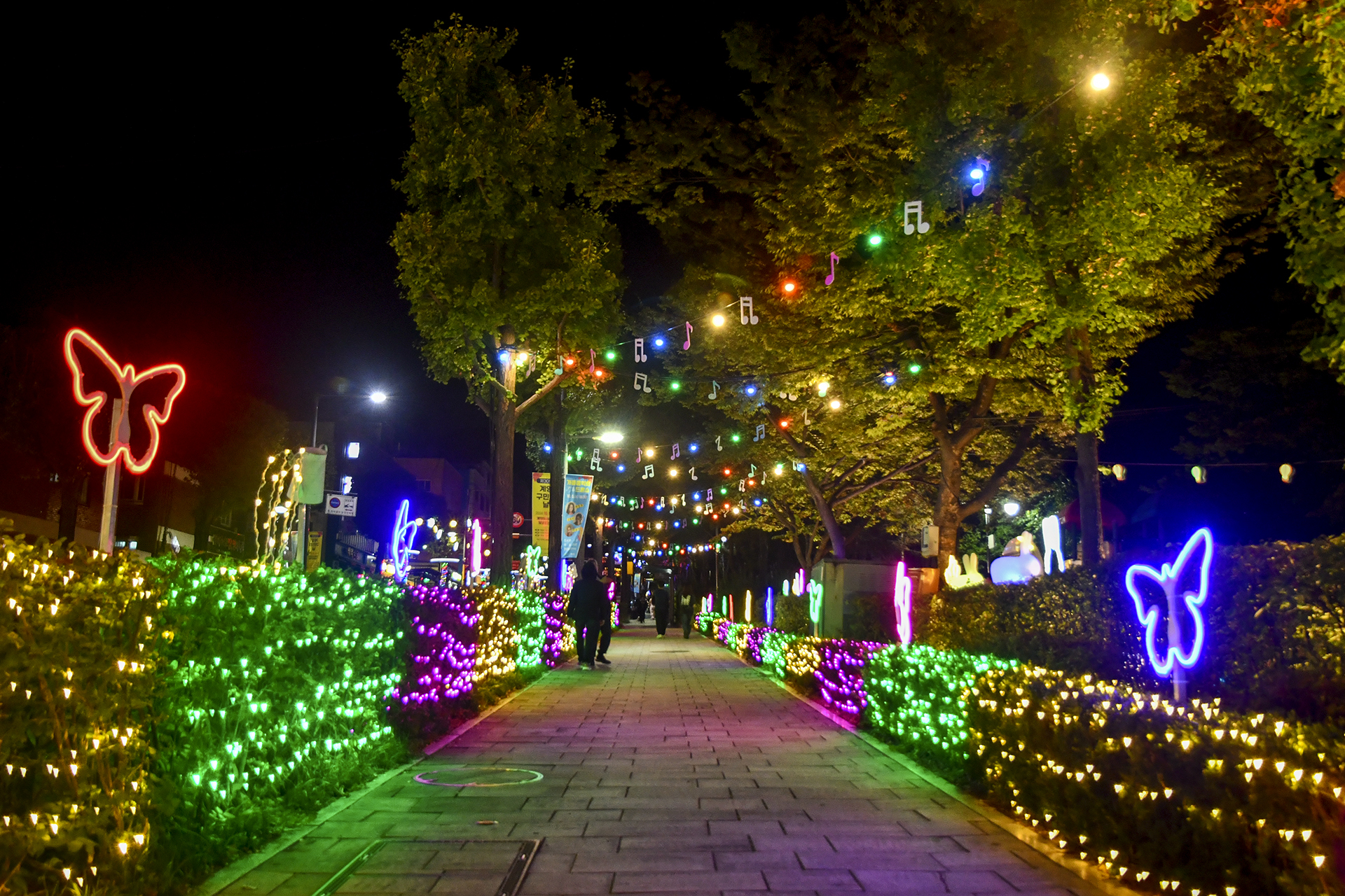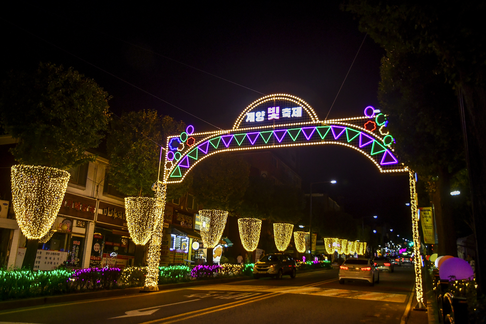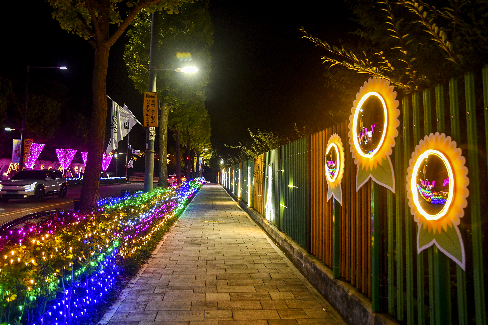 계산역에서 계양산 방향으로 들어서면 양쪽 인도를 따라 빛의거리가 조성되어 있다.