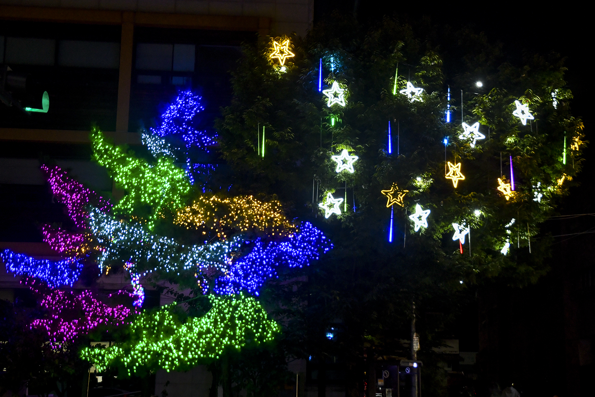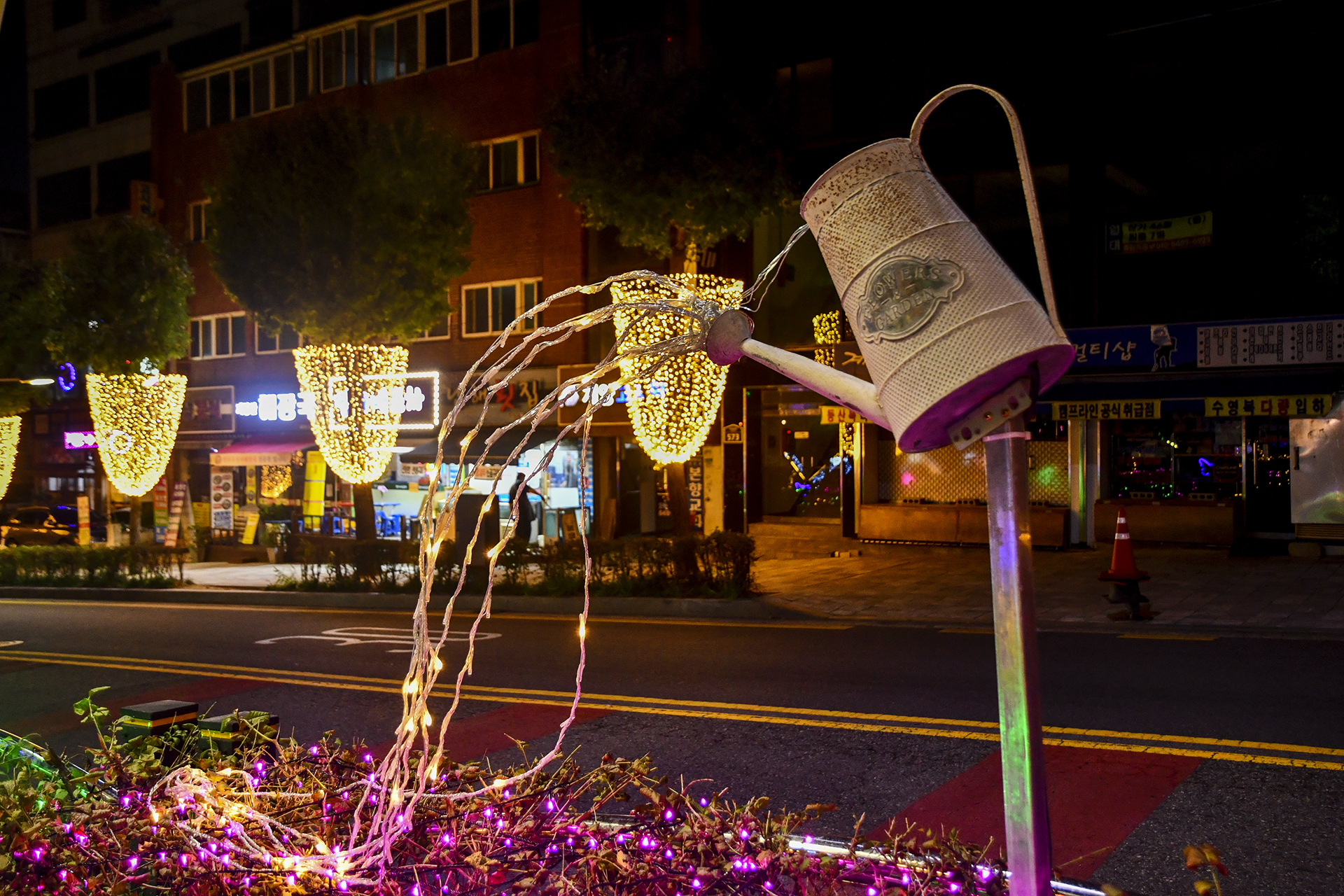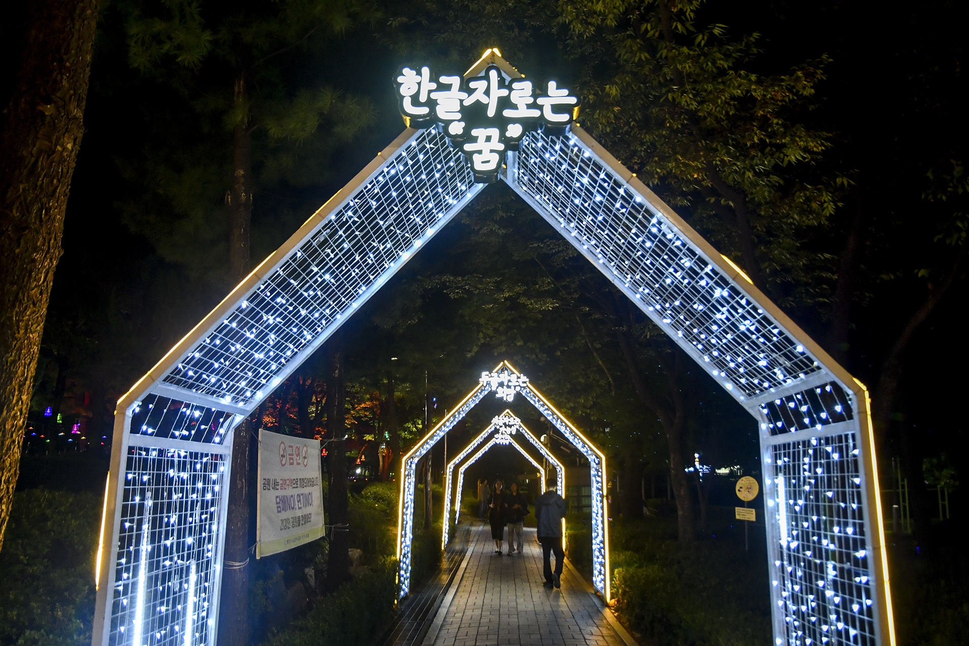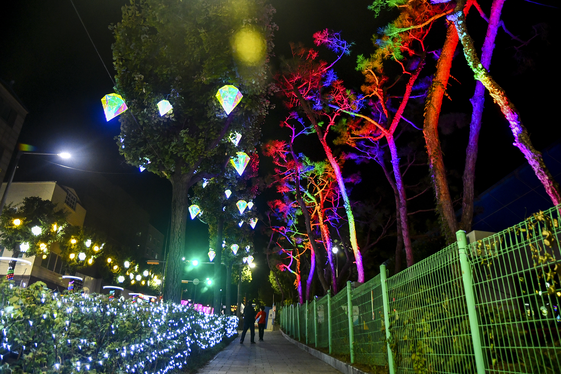 계산역에서 계양산 방향으로 들어서면 양쪽 인도를 따라 빛의거리가 조성되어 있다.