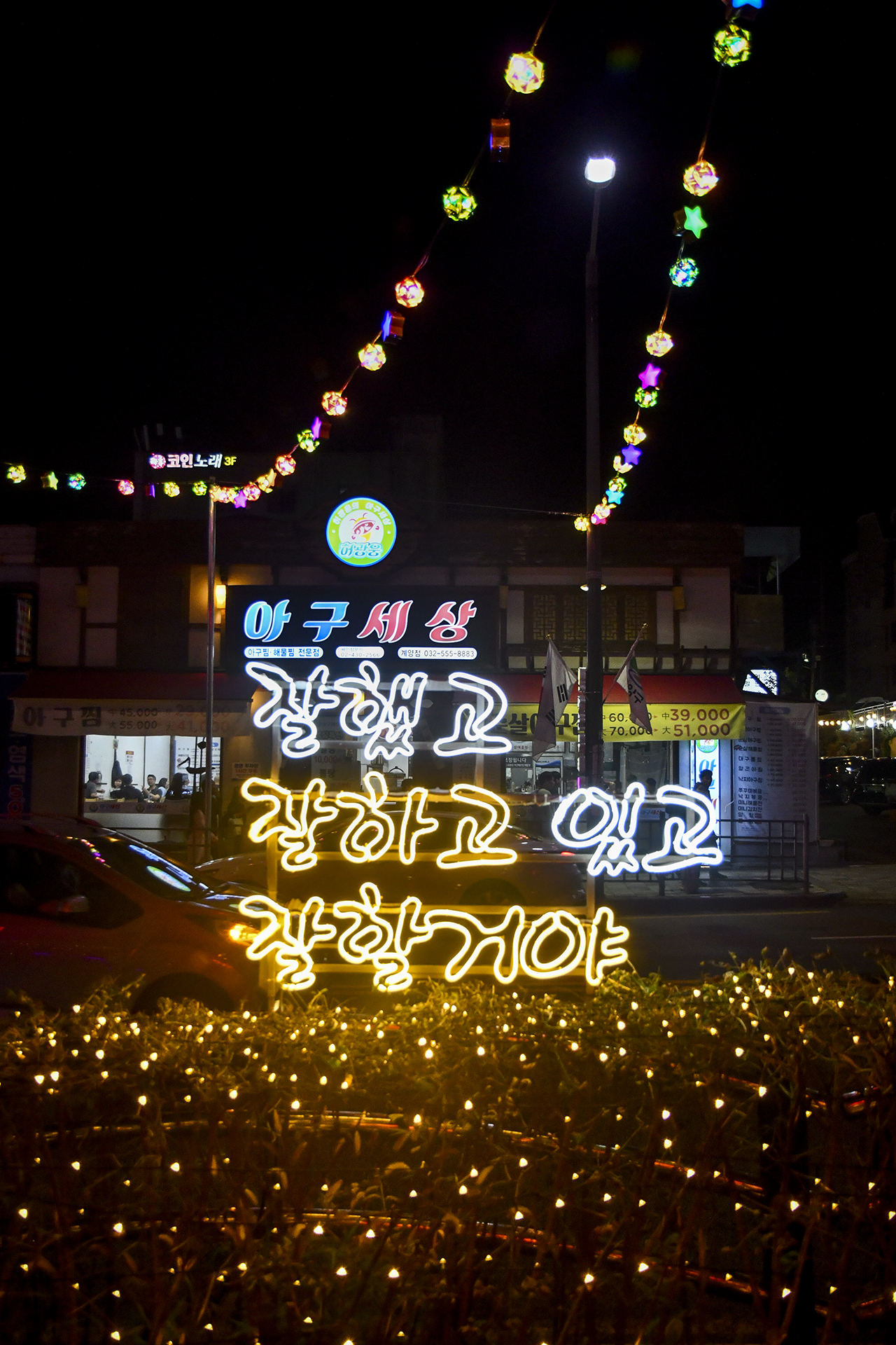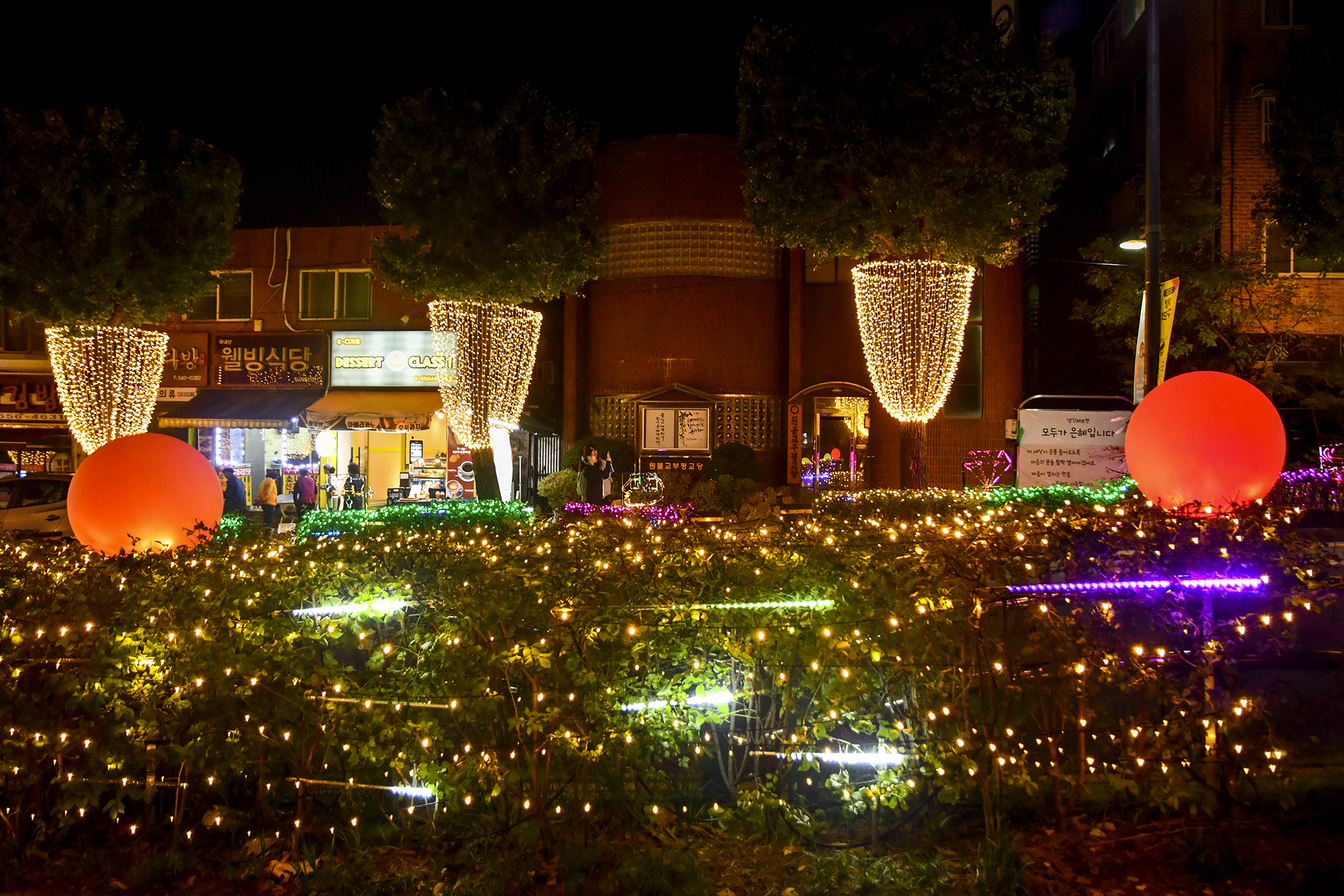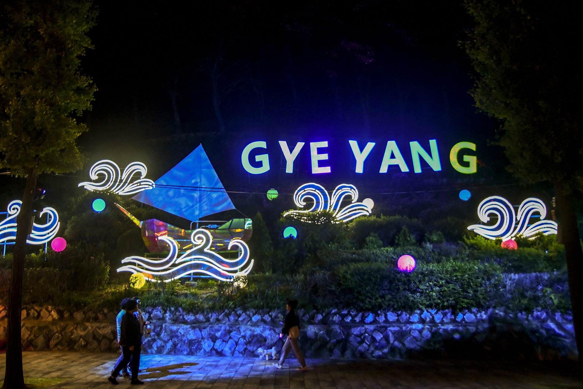 반짝반짝 불 밝힌 꼬마전구와 주렁주렁 매달린 보석들은 이른 크리스마스 분위기도 내주고, 주부토로를 따라 올라가면 계양산 입구에 다다른다.