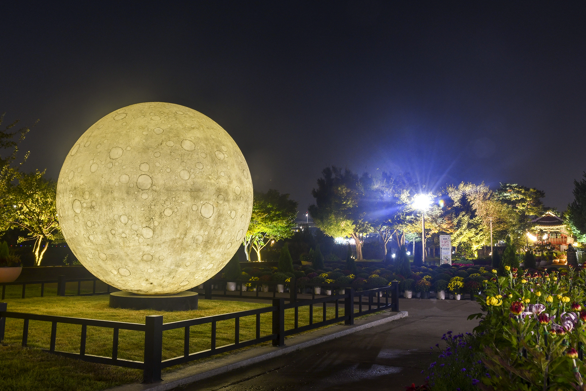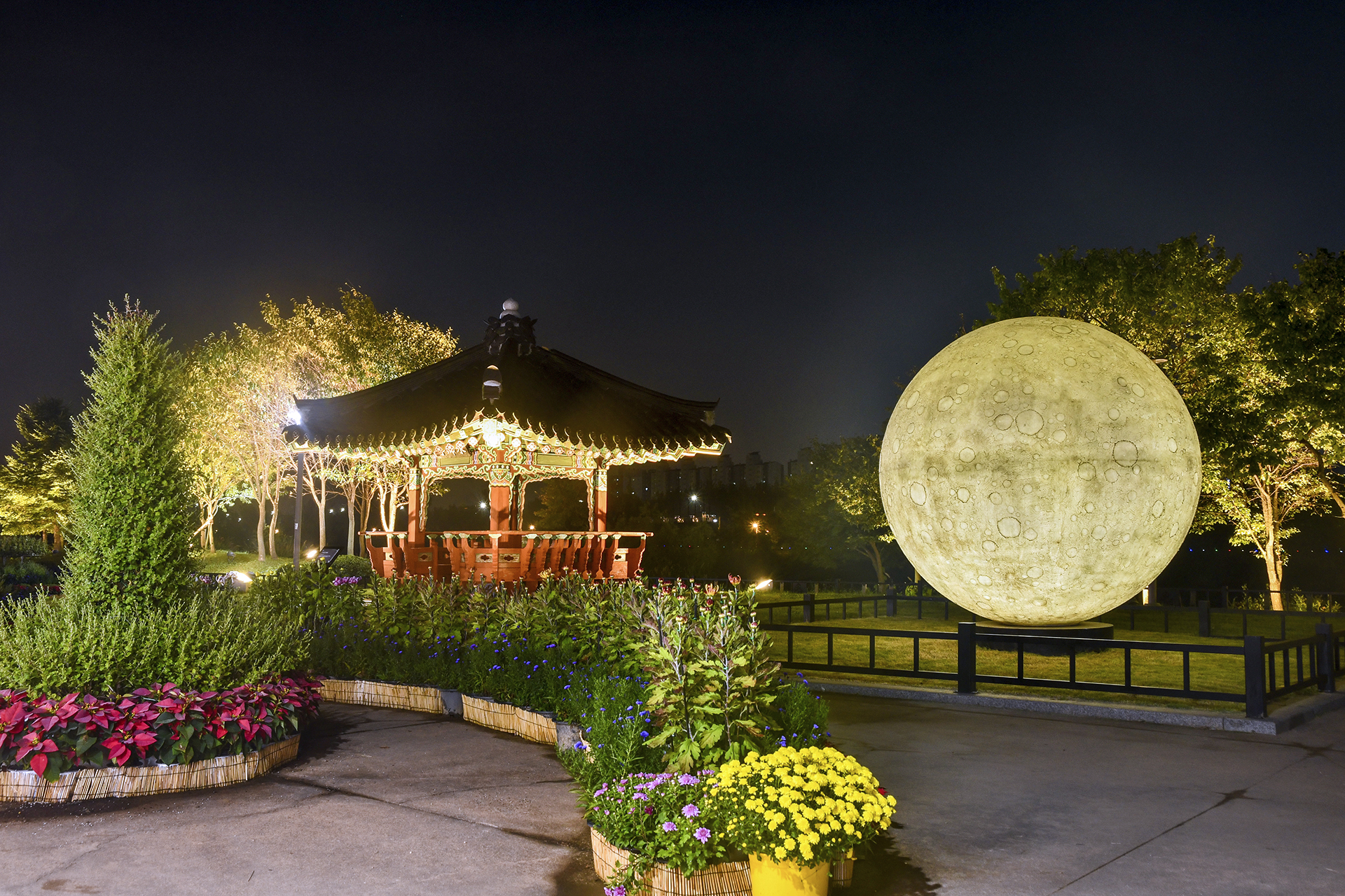 달 앞에는 국화 미로정원이 만들어져 있다.