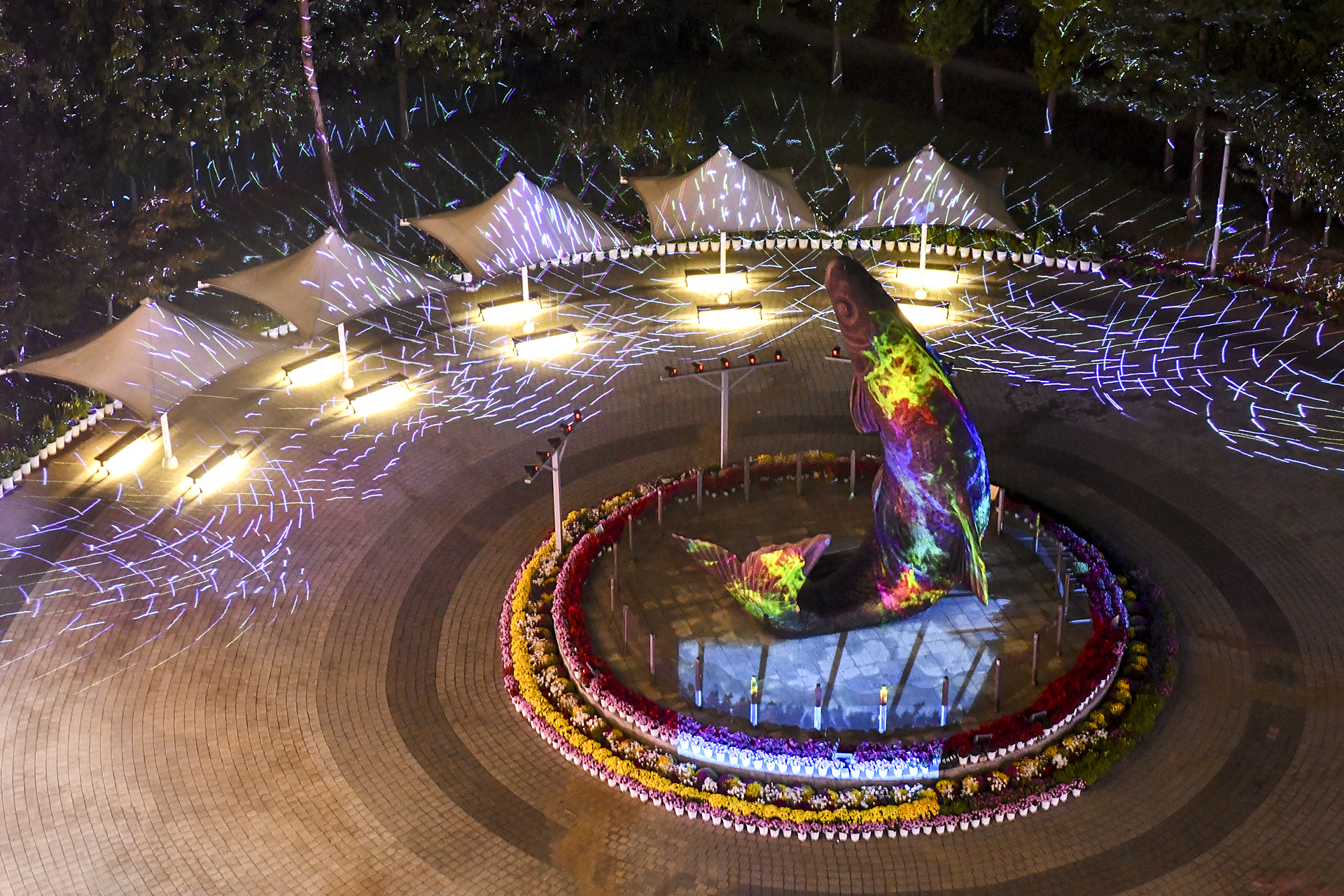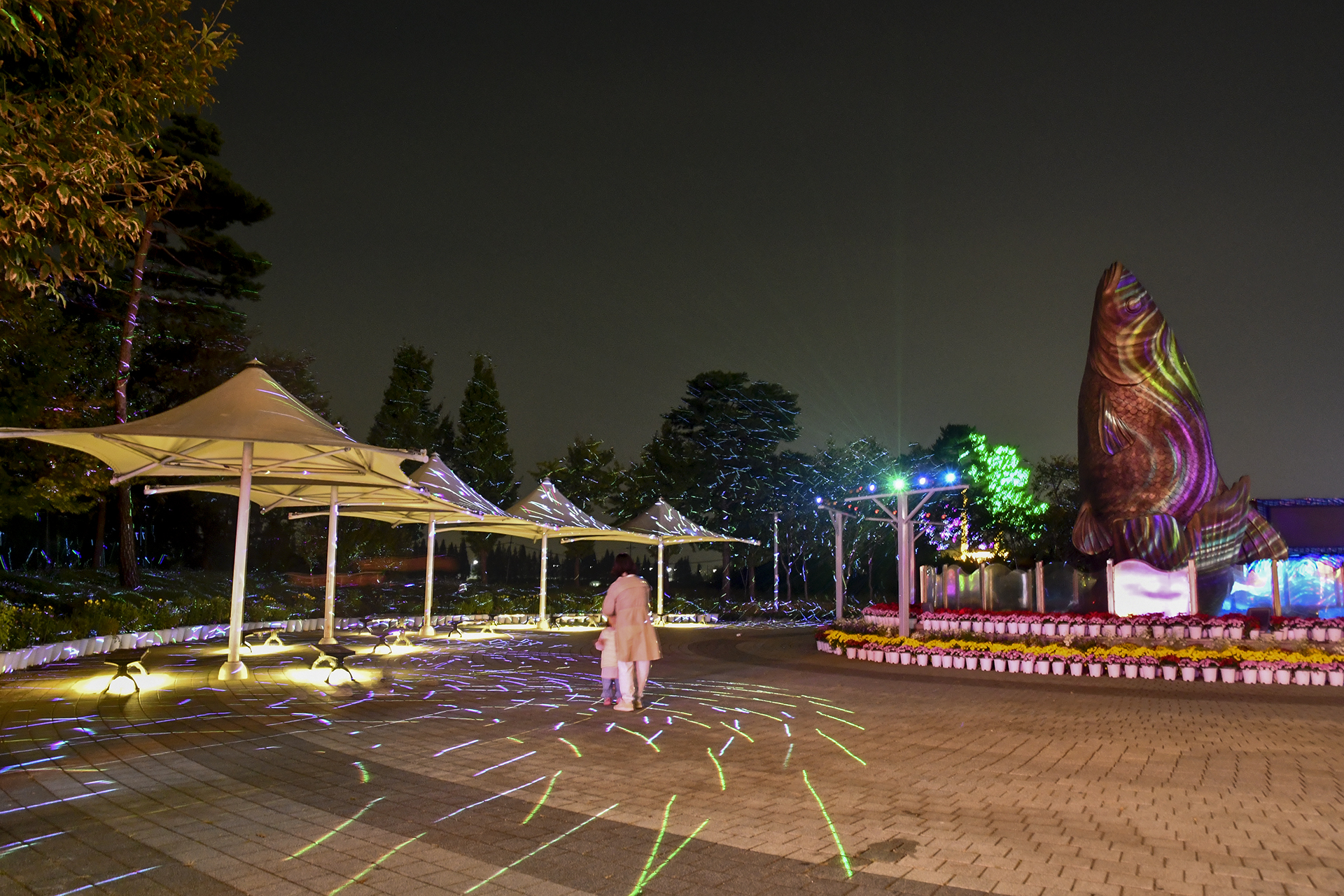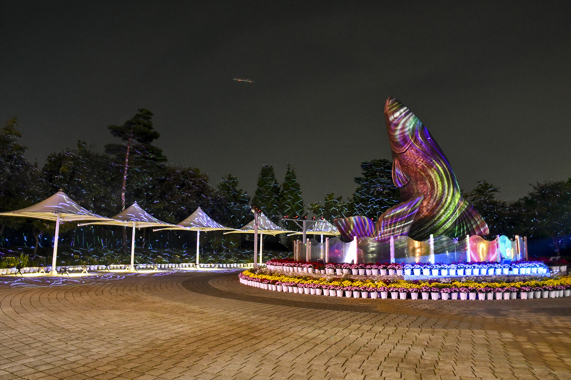 황어 둘레로는 국화와 포인세티아 화분으로 예쁘게 꾸며 놓았고, 이곳은 특히 야경이 아름다운 곳이다.