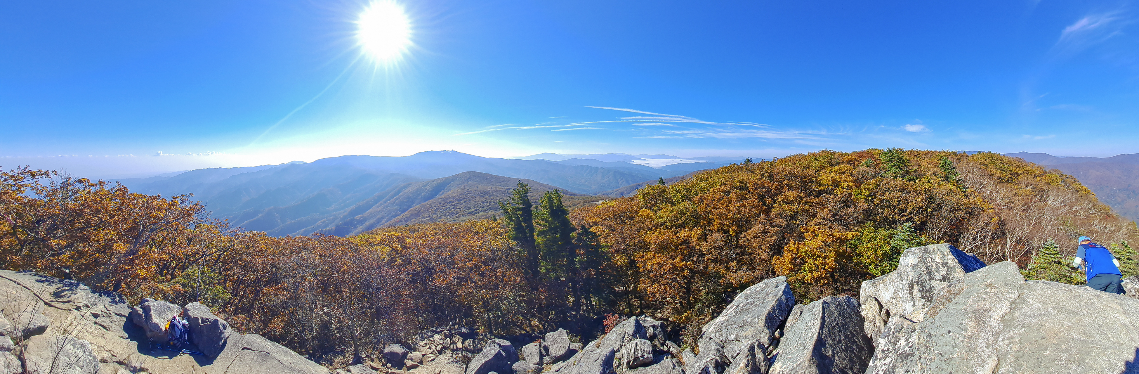 파노라마로 넓게도 펼쳐보니 주변 경관이 비로봉 못지않은 일품이다.