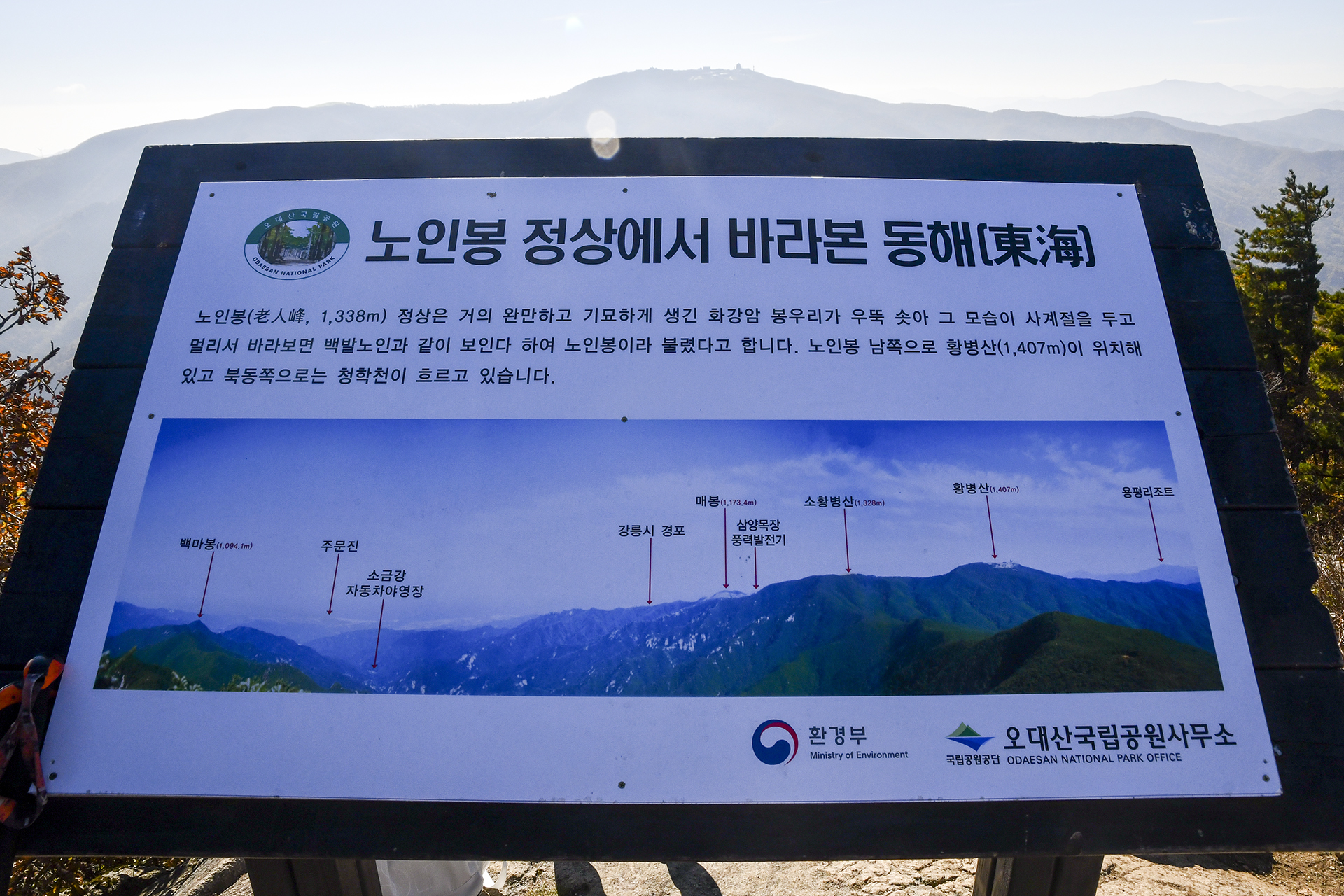 들머리인 진고개가 해발 960m이니 1,338m인 노인봉까지는 고도 378m만 올라가면 된다.