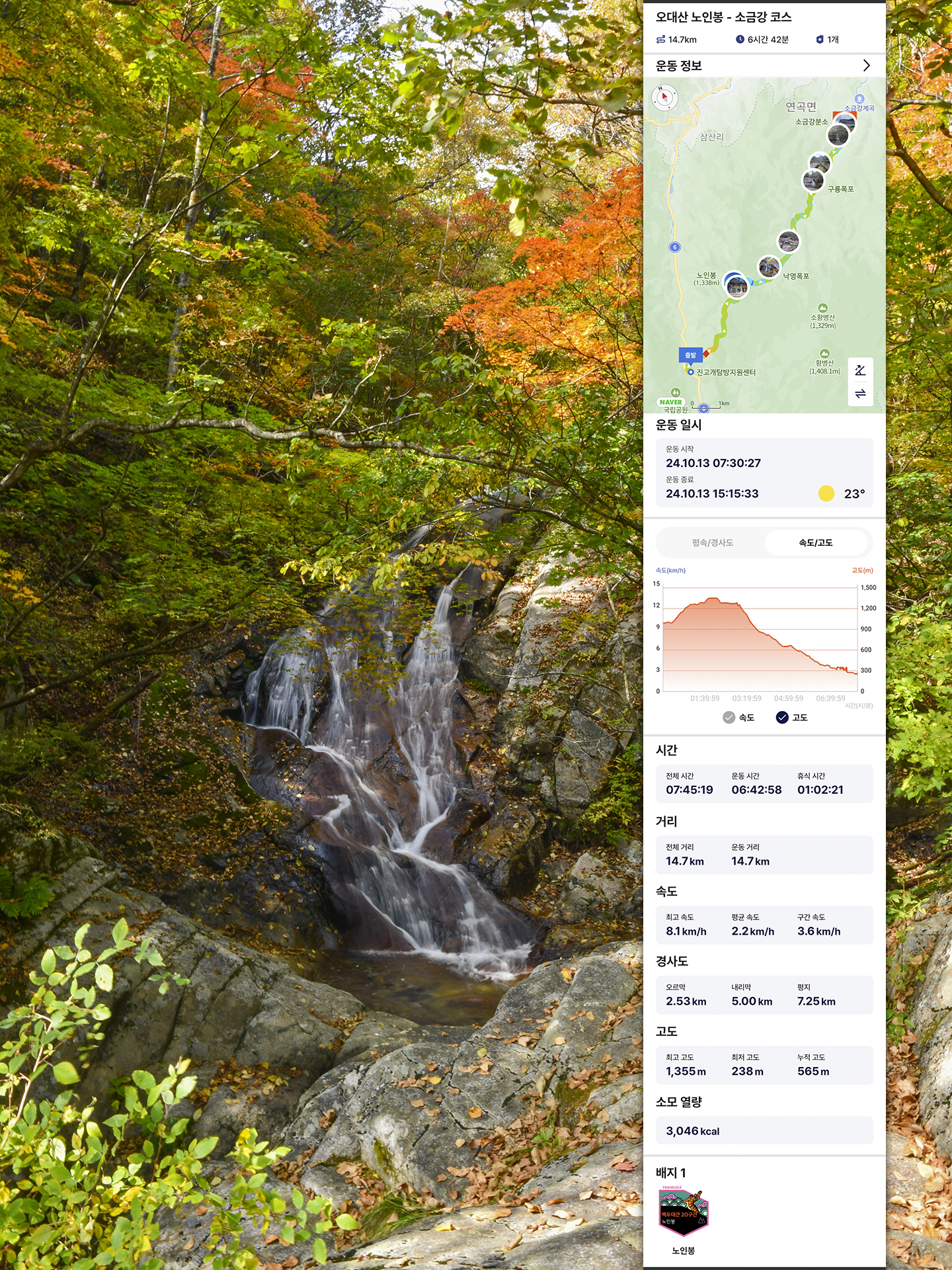 * 전체소요시간 : 7시간45분 (산행 6시간42분, 휴식,촬영시간 포함)