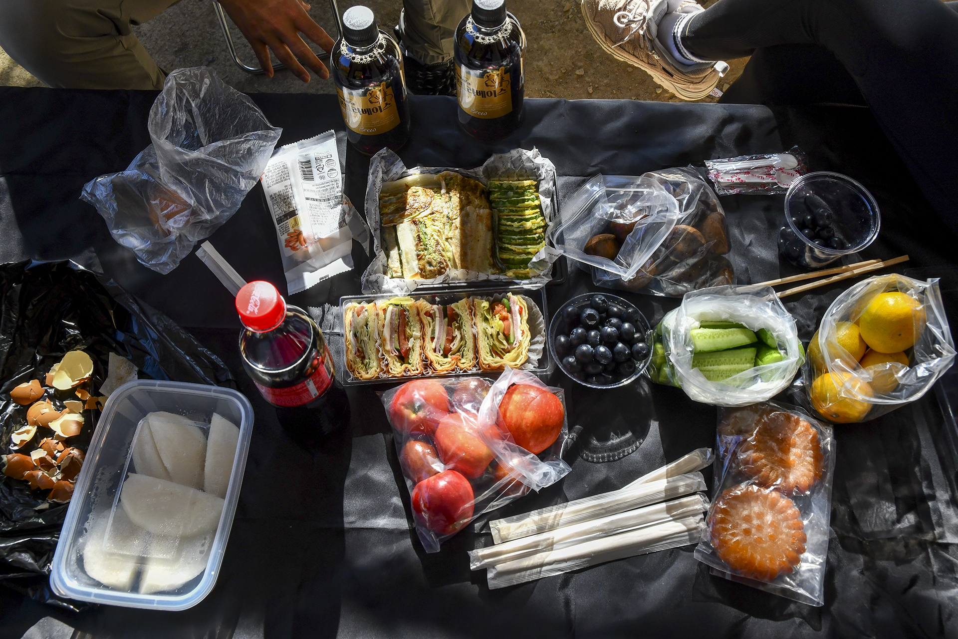 혼자 다닐때는 기껏해야 구운계란과 과일이 전부였다. 이제 날씨가 추워지면 컵라면으로 바뀔테지만~