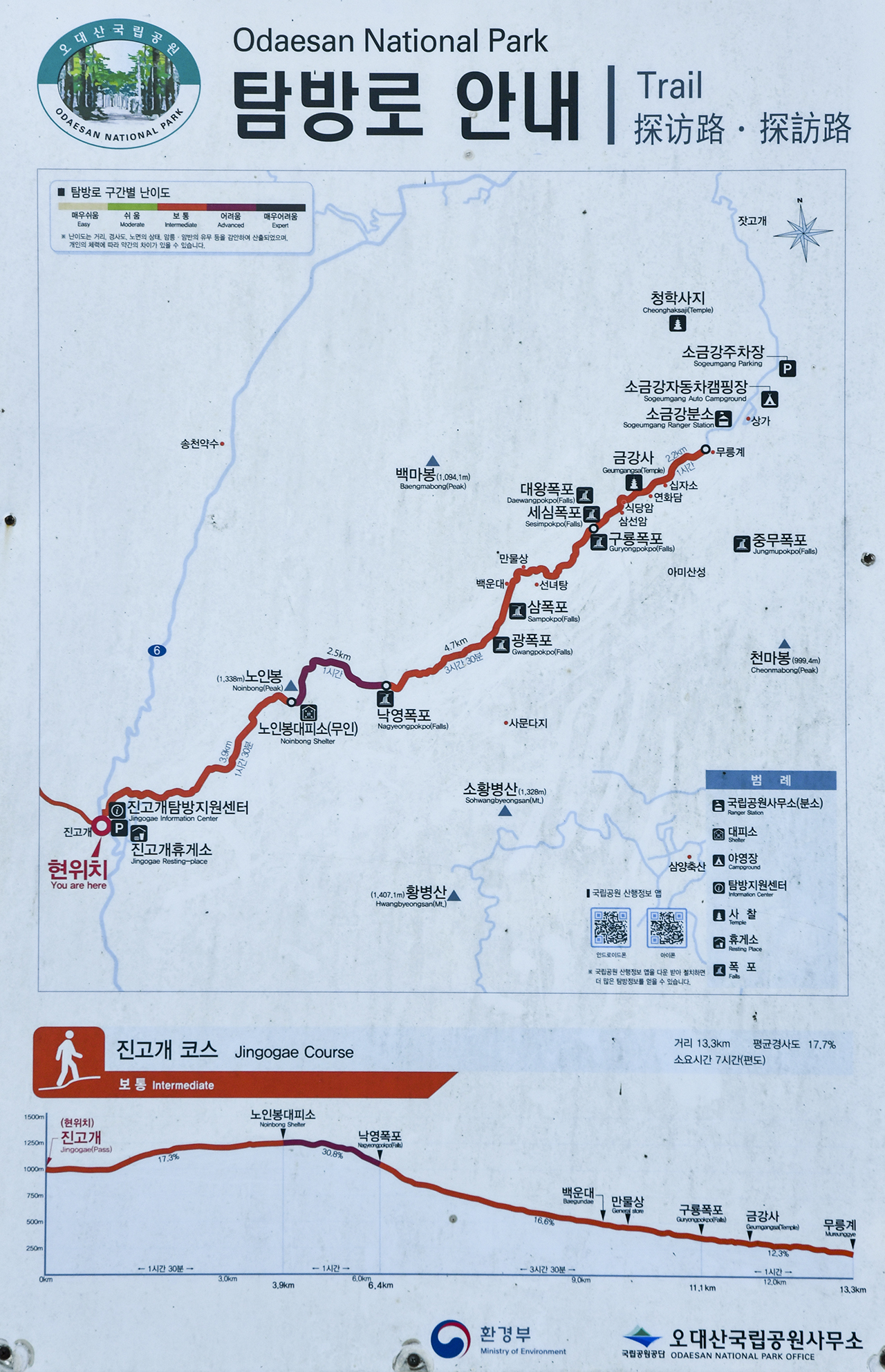 이제 힘든 구간은 끝났고, 나머지 구간은 쉬엄쉬엄 걸을 수 있다.