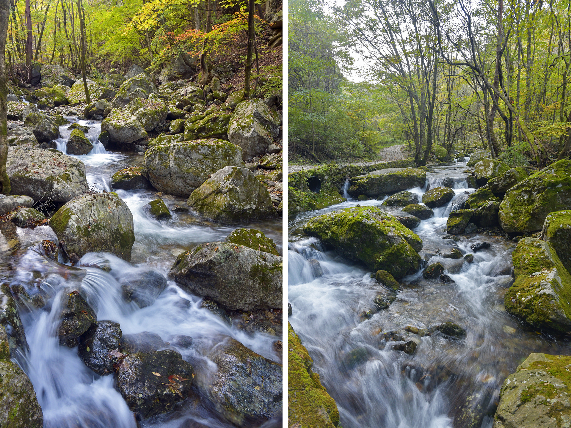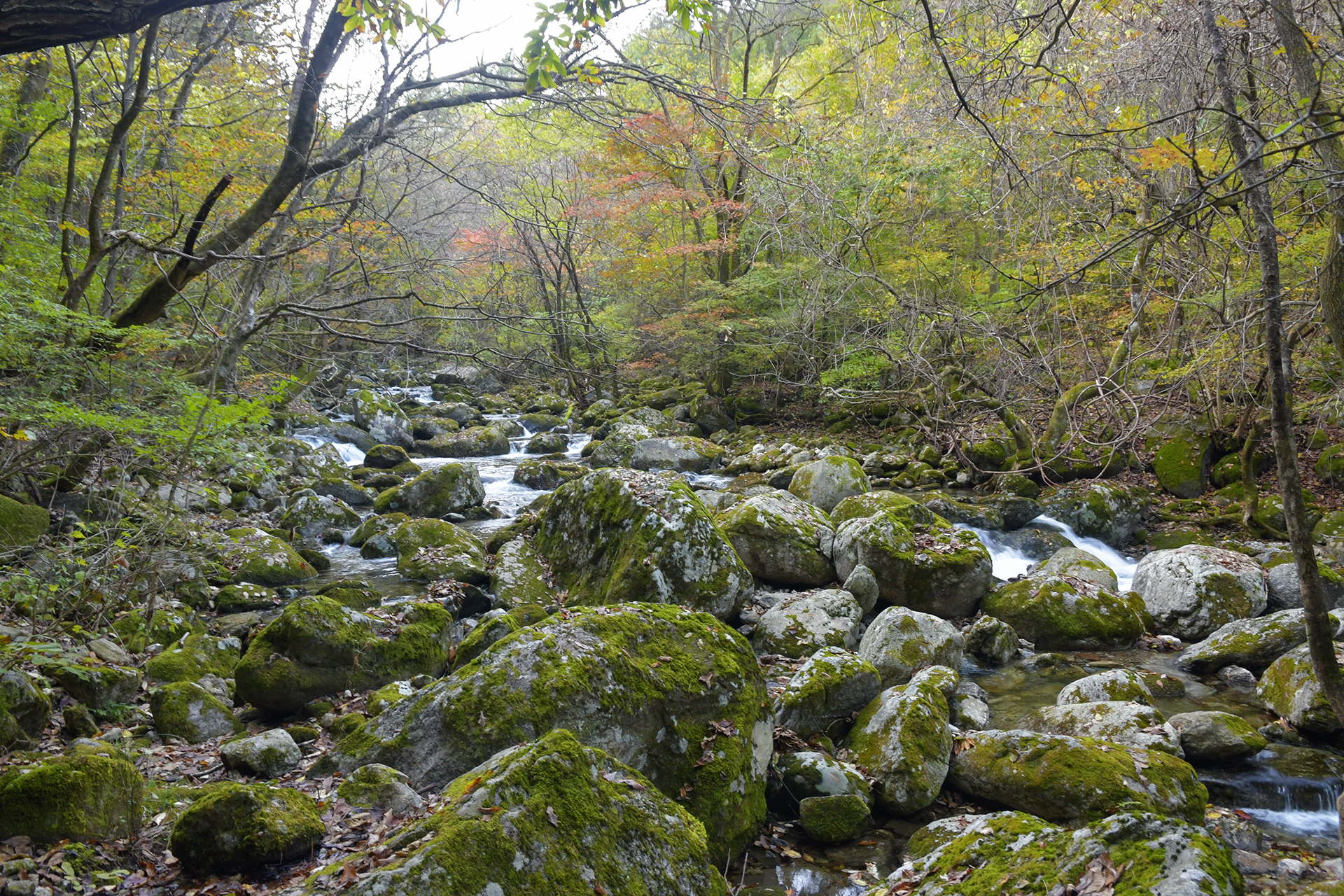 이른 아침, 바로 옆에서 이끼 낀 계곡을 보며 걸을수 있다니, 의외의 보물을 발견한 기분이다.