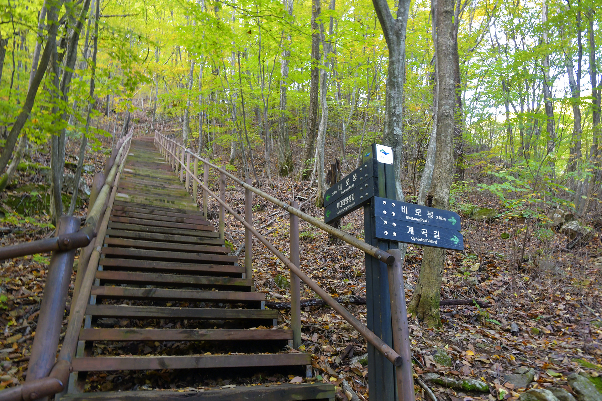 구룡사에서 출발해 비로봉에 오르는 코스는 사다리병창길과 계곡길을 선택해 갈 수 있다.