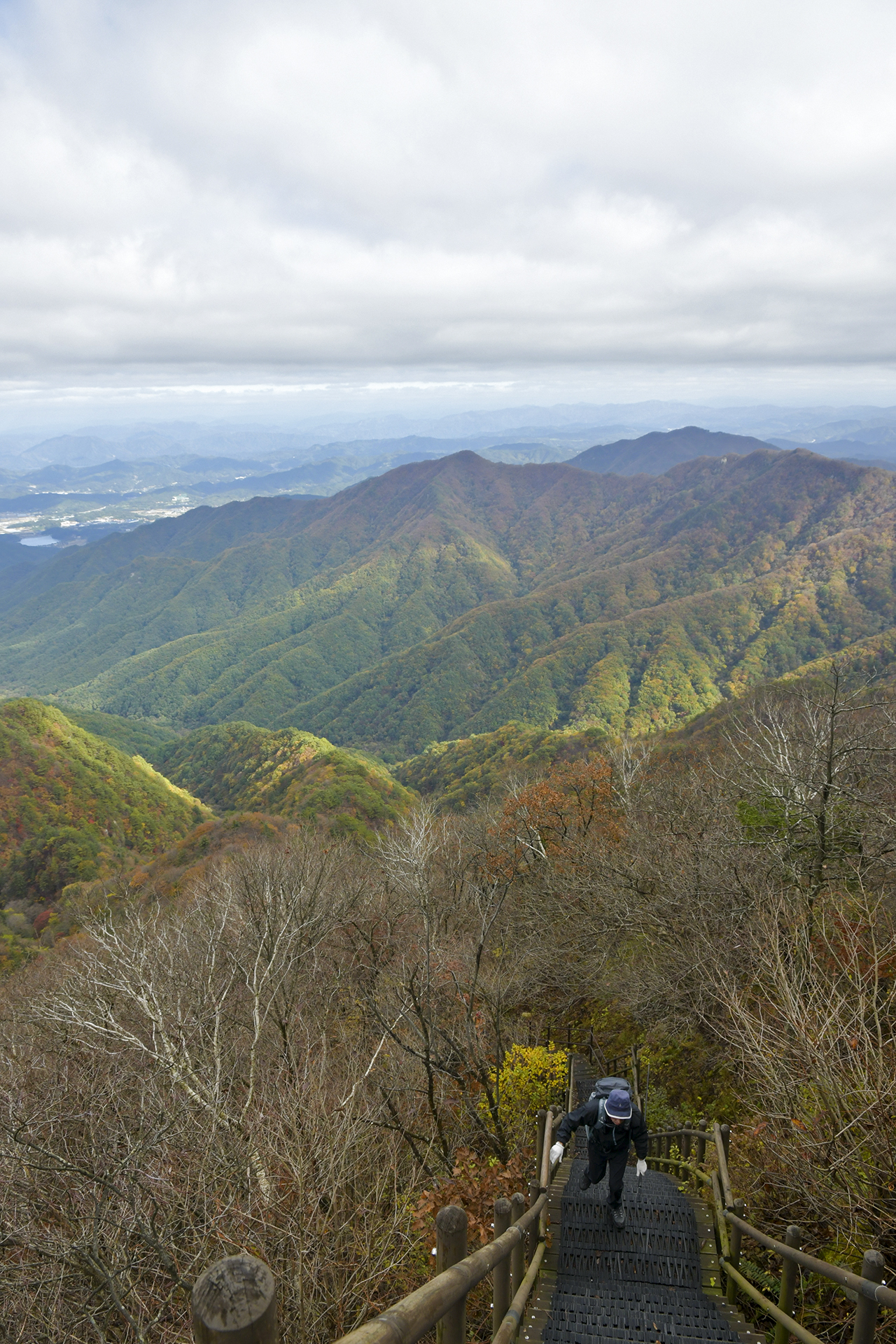올라와 돌아보니 계단길이 아득해 보이고 그 위로는 첩첩산중이다.