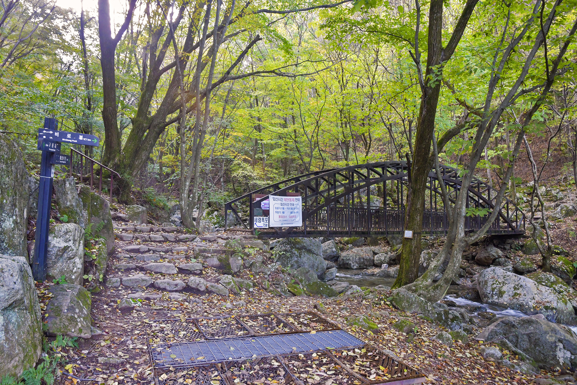 다리를 건너 본격적인 등산로가 열리는데 그 유명한 사다리병창길이 시작되는 지점이다.