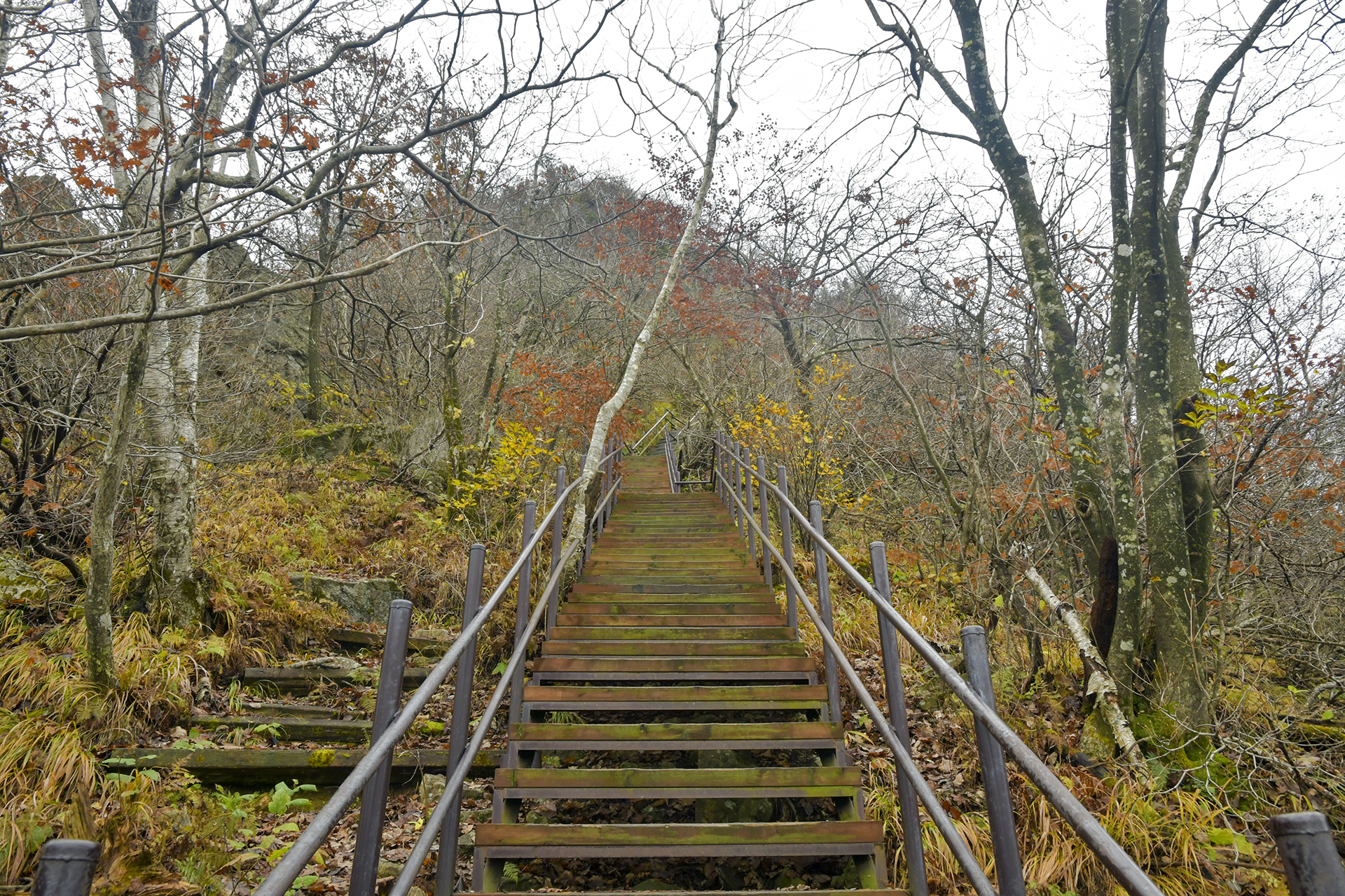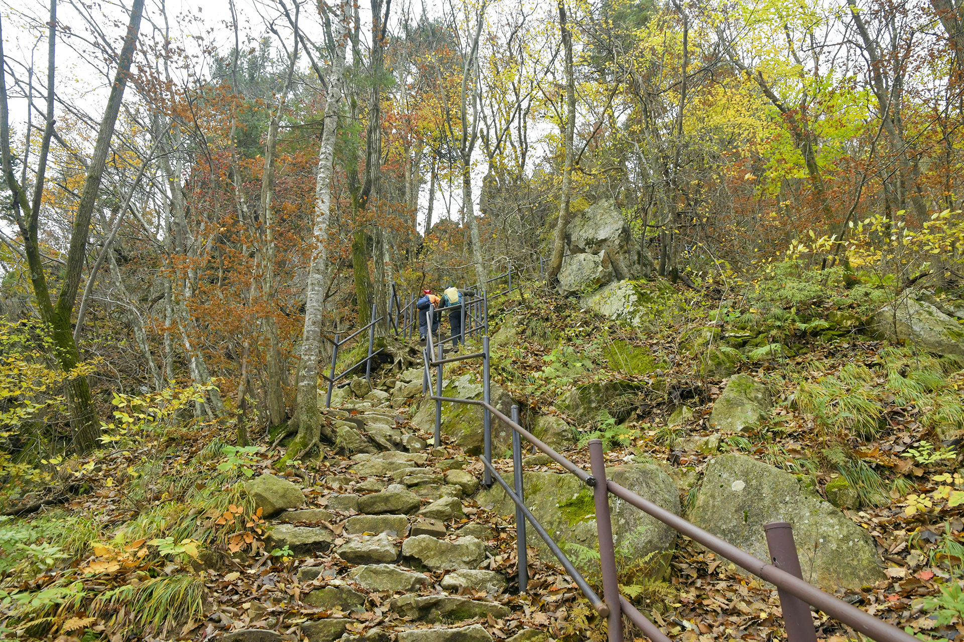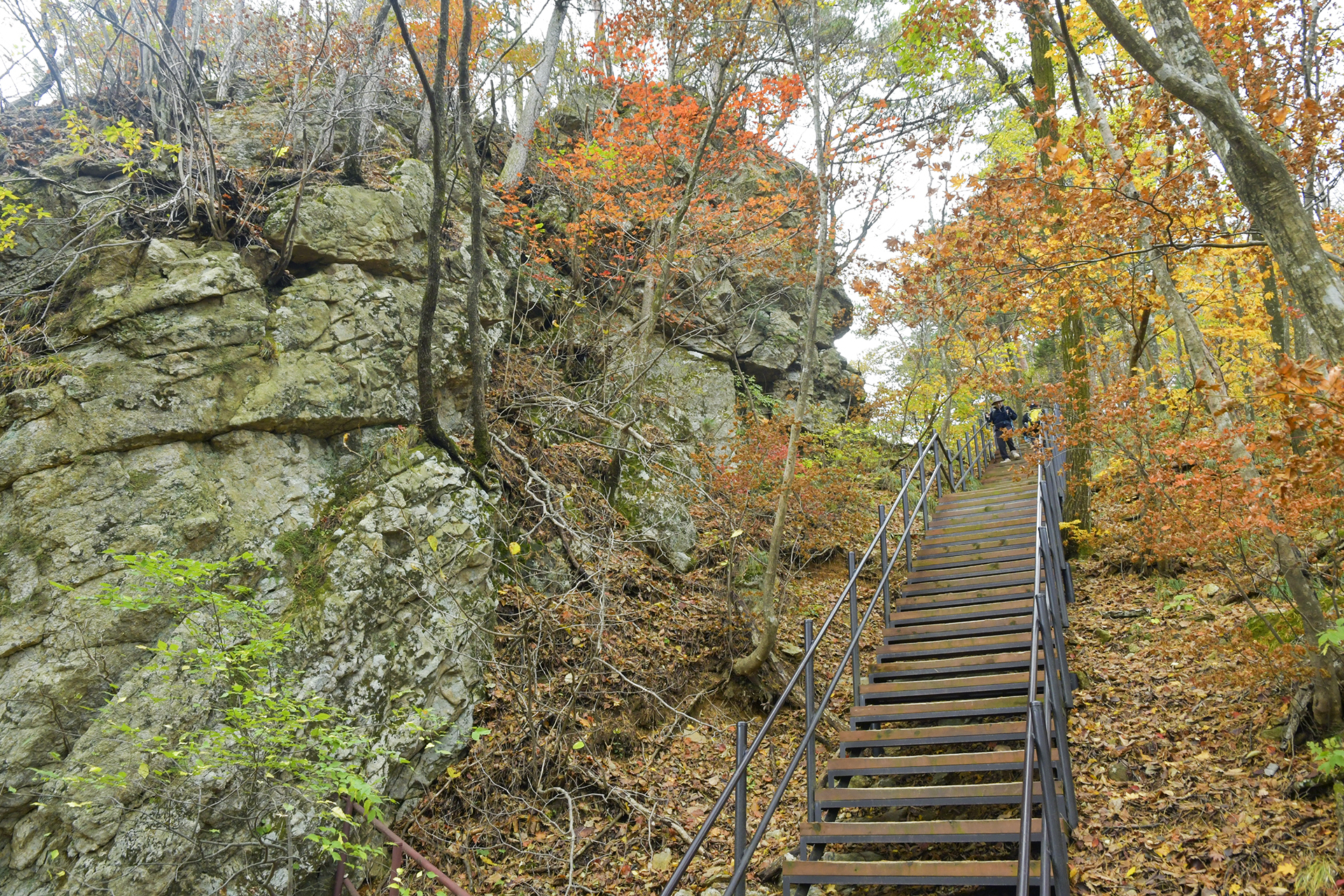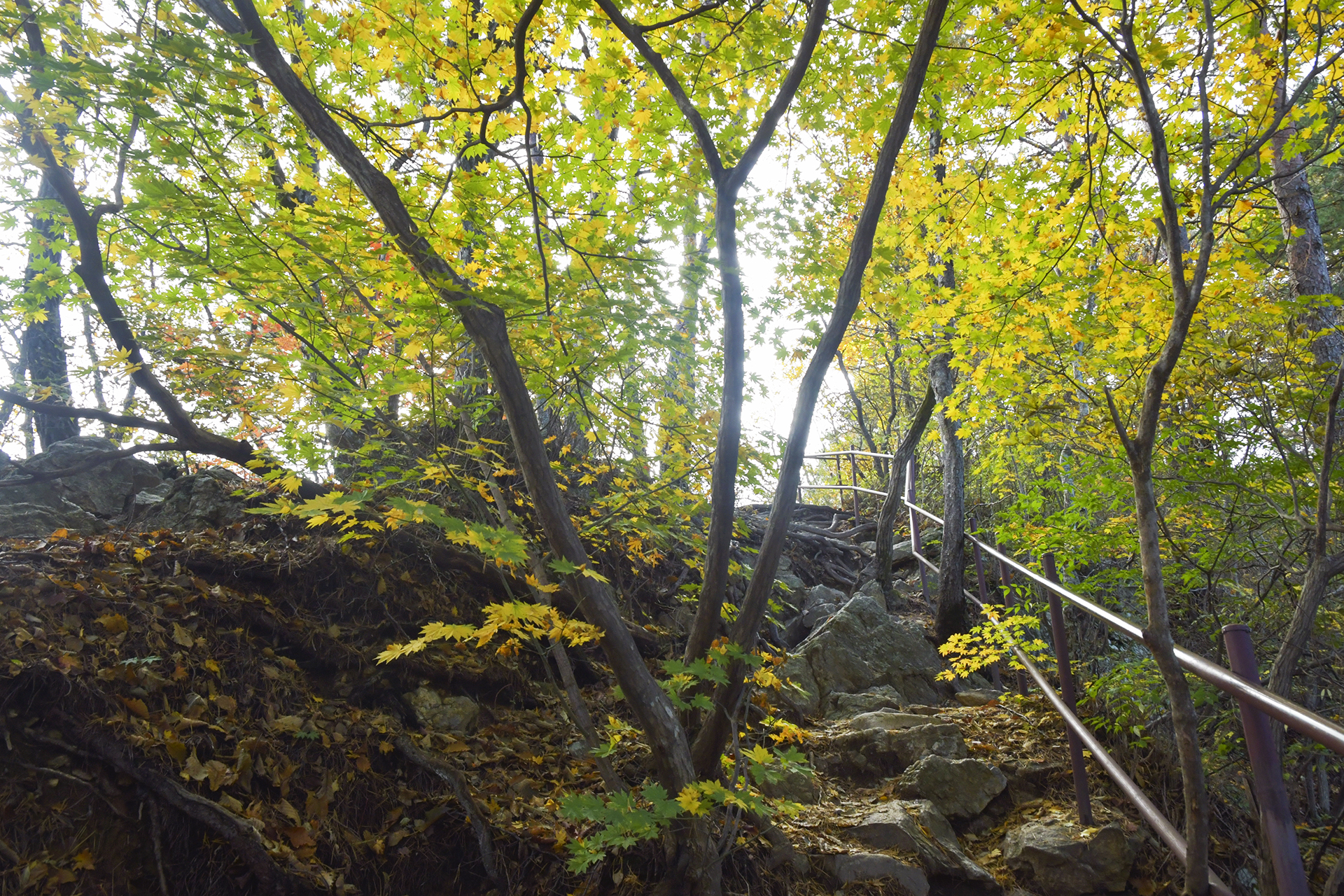 데크계단과 돌계단이 번갈아 가며 고도를 순식간에 올려주는 길,