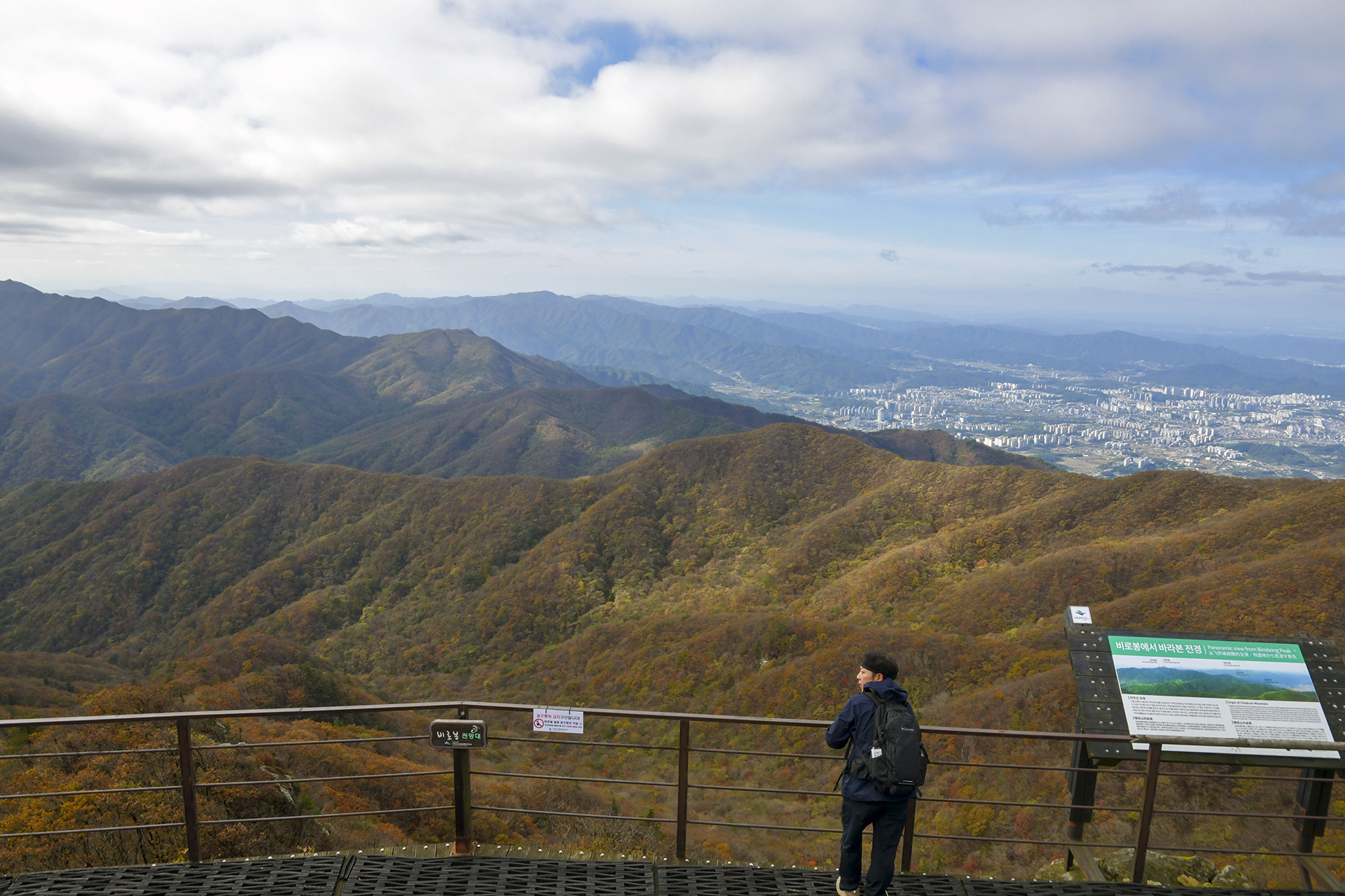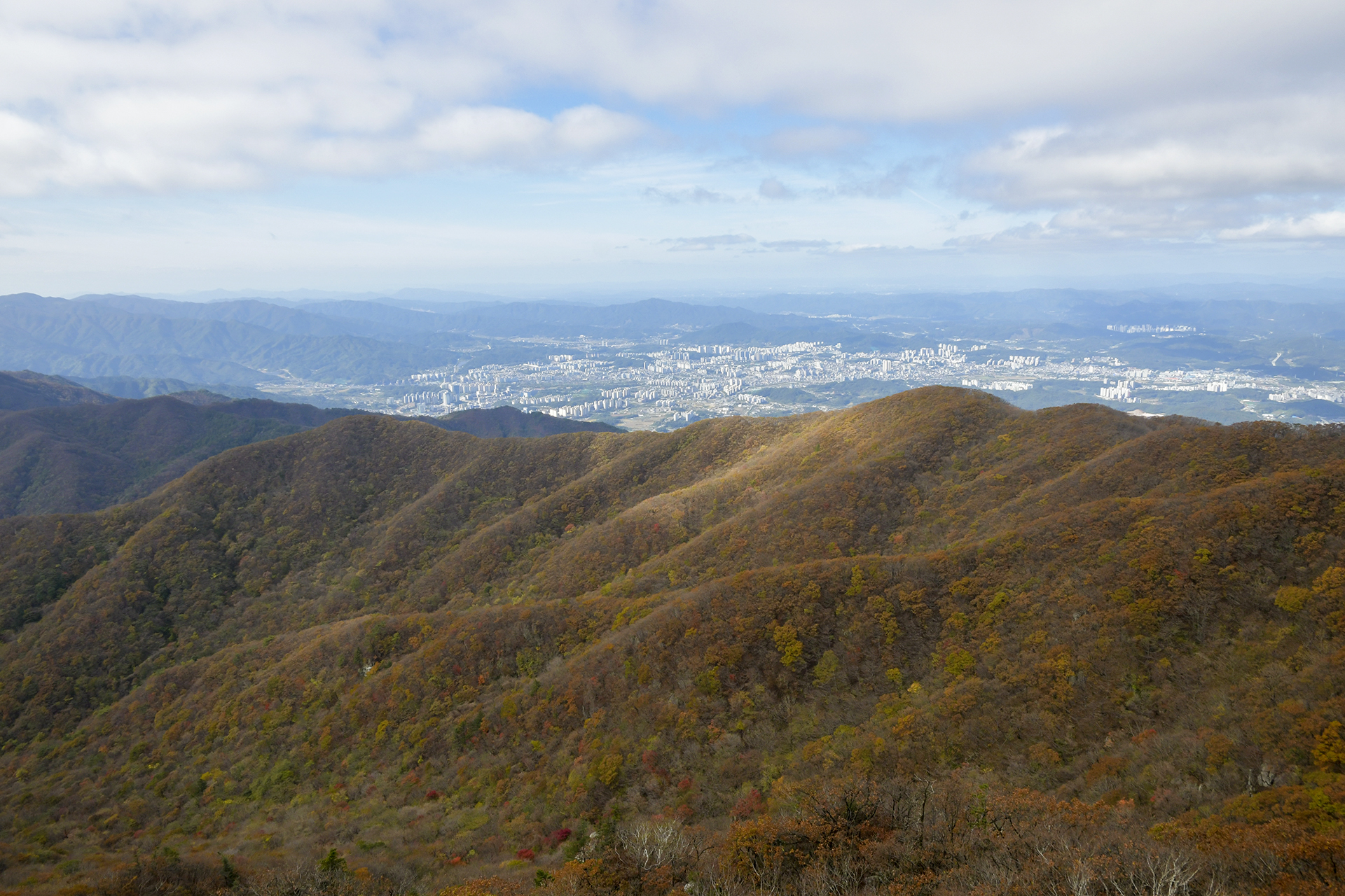 울긋불긋한 봉우리 너머 원주시내가 마치 미니어처 같은 모양새다.