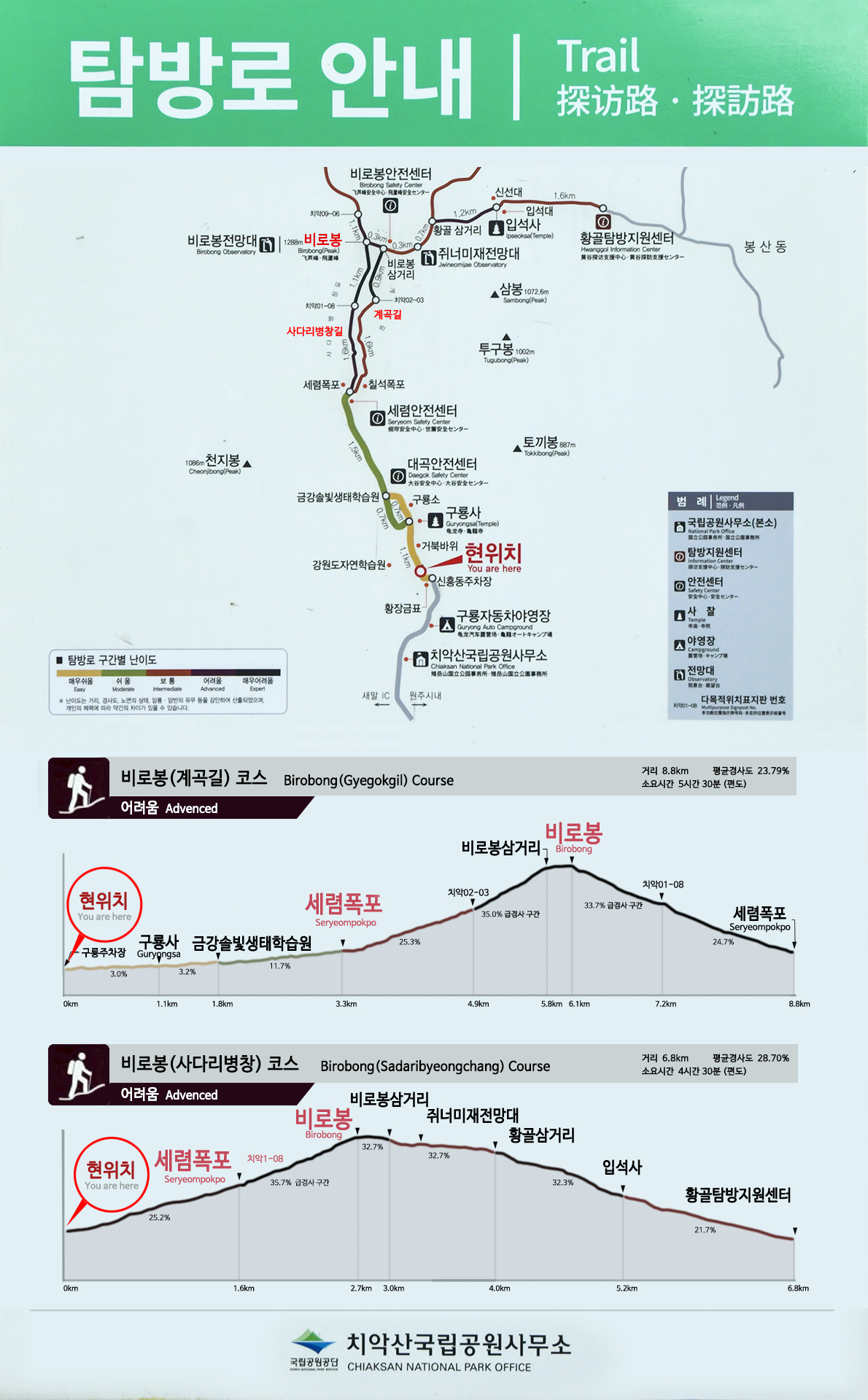 * 입산시간 : 동절기(11월~3월, 05~13시), 하절기(4월~10월 04~14시)