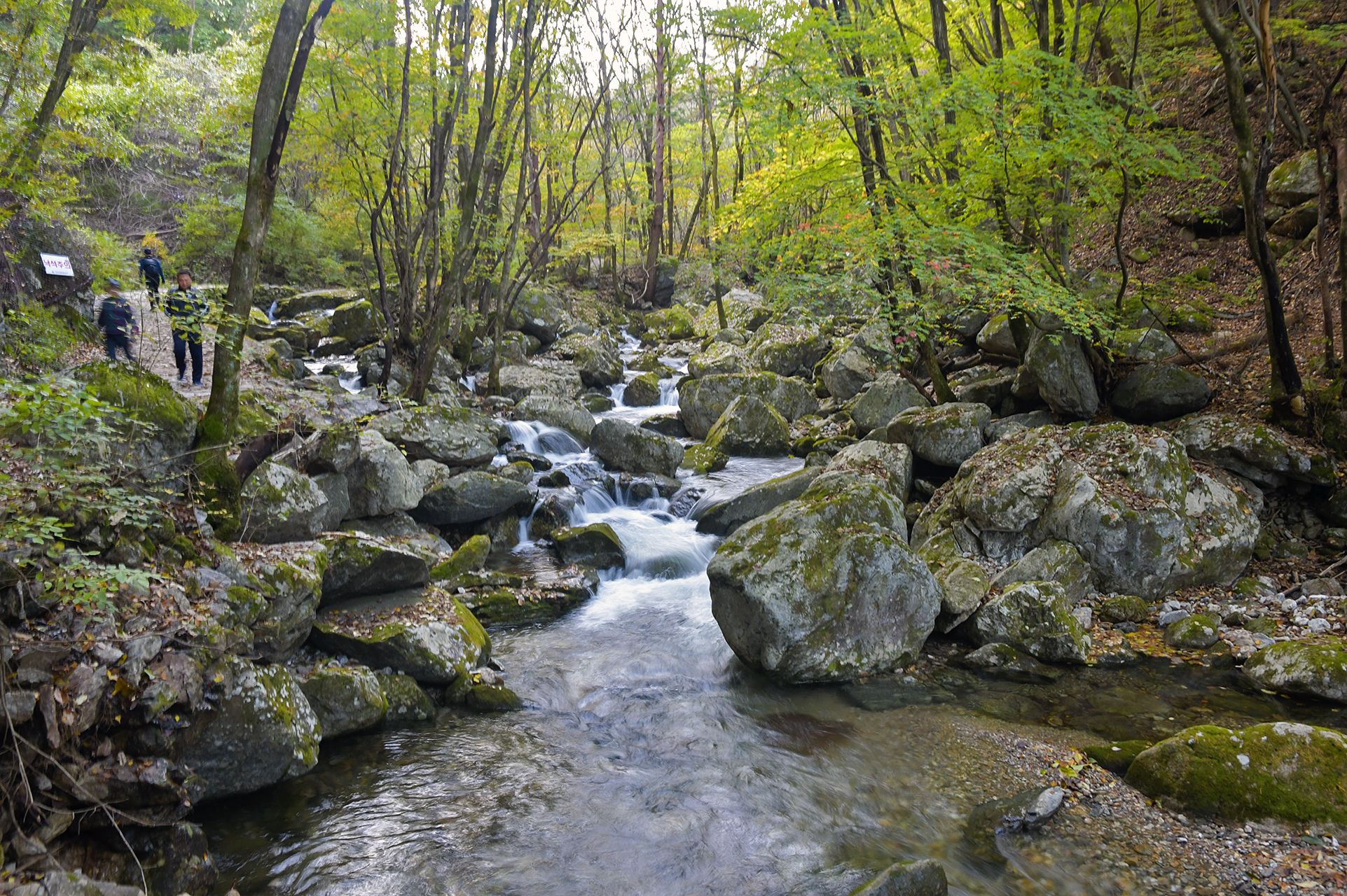 계곡 출입은 금지되어 있기때문에 산책로에서 담아본다.