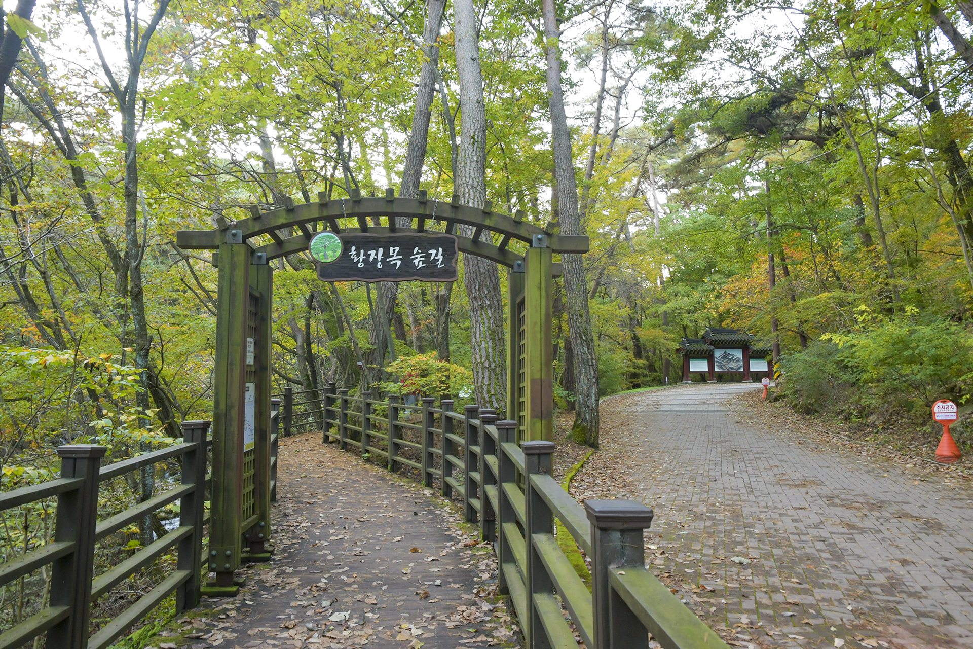 구룡문화관광 해설사의 집을 지나 다리를 건너 왼쪽 무장애 탐방로인 황장목 숲길로 들어선다.