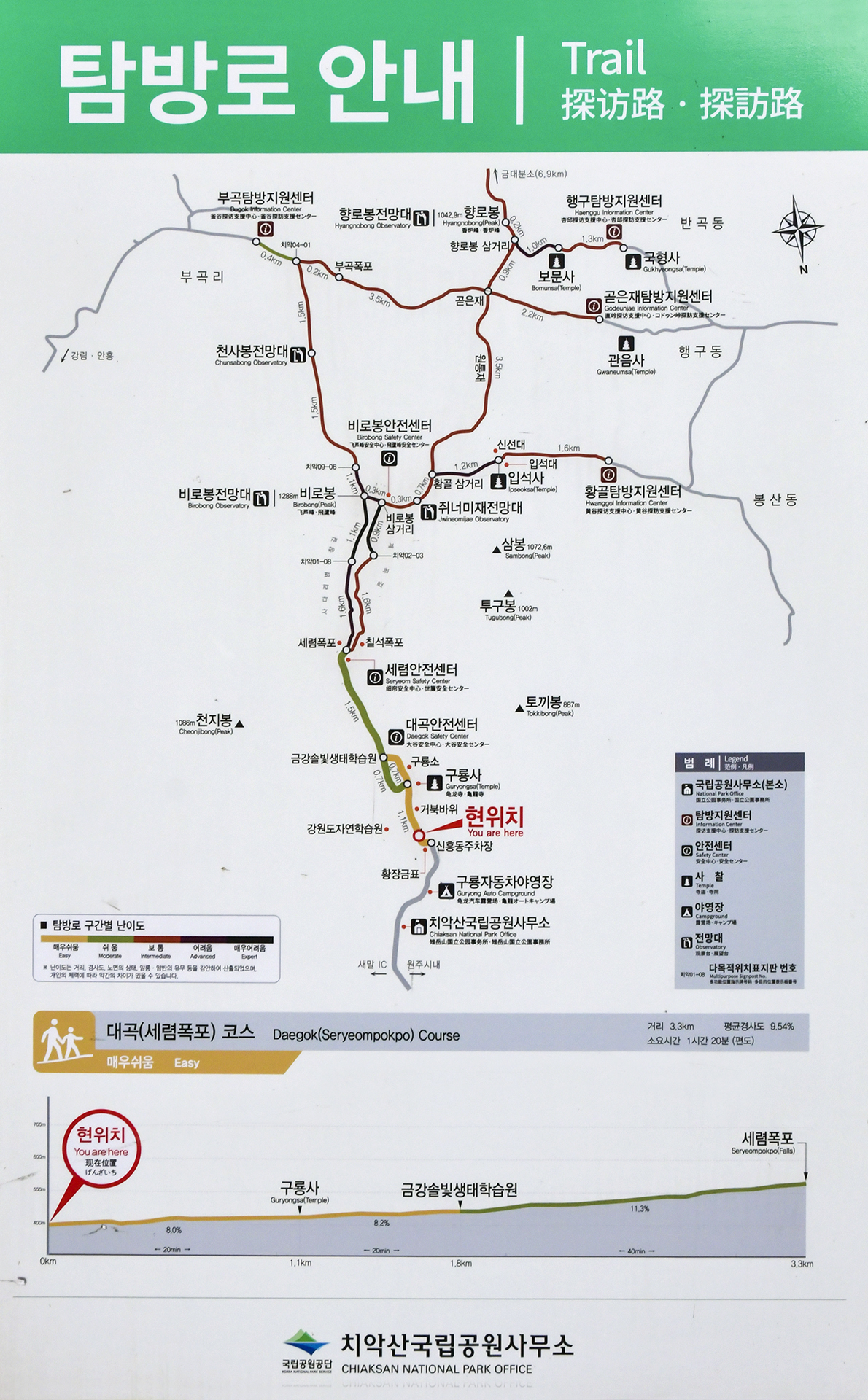 계곡길로의 하산은 아래 링크 이용 (계곡길, 칠석폭포, 세렴폭포, 구룡사)