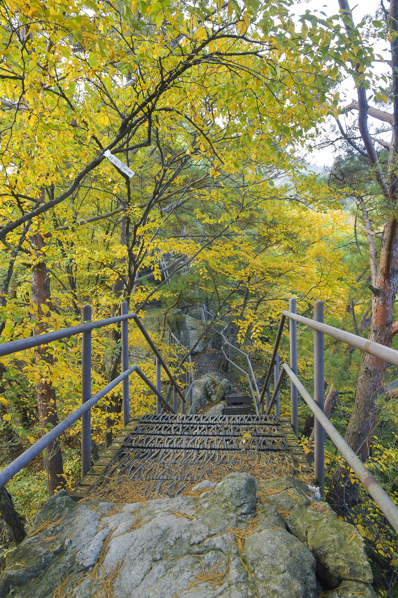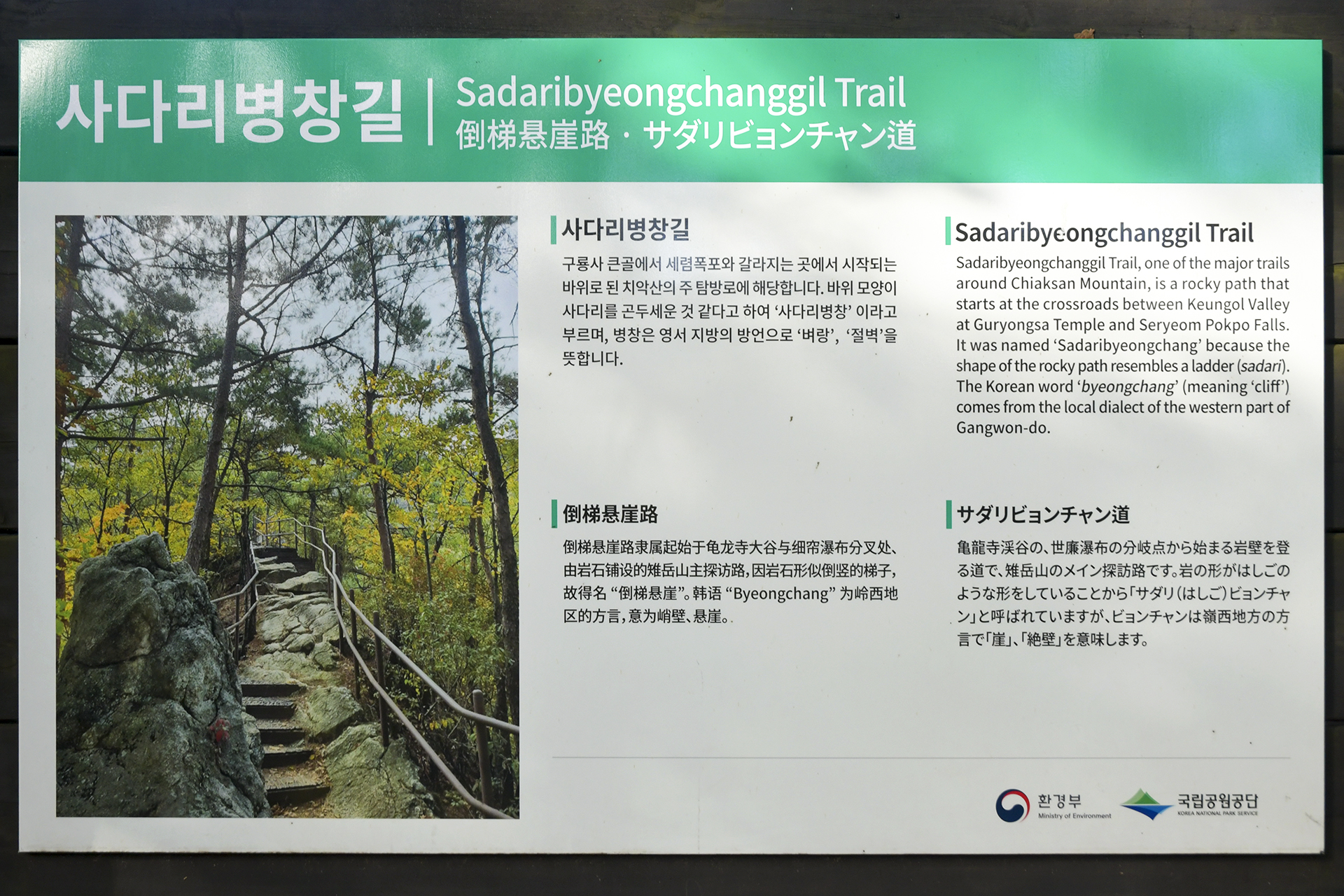 구룡사 큰골에서 세렴폭포와 갈라지는 곳에서 시작되는 바위로 된 치악산의 주탐방로가 바로 사다리병창길이다.