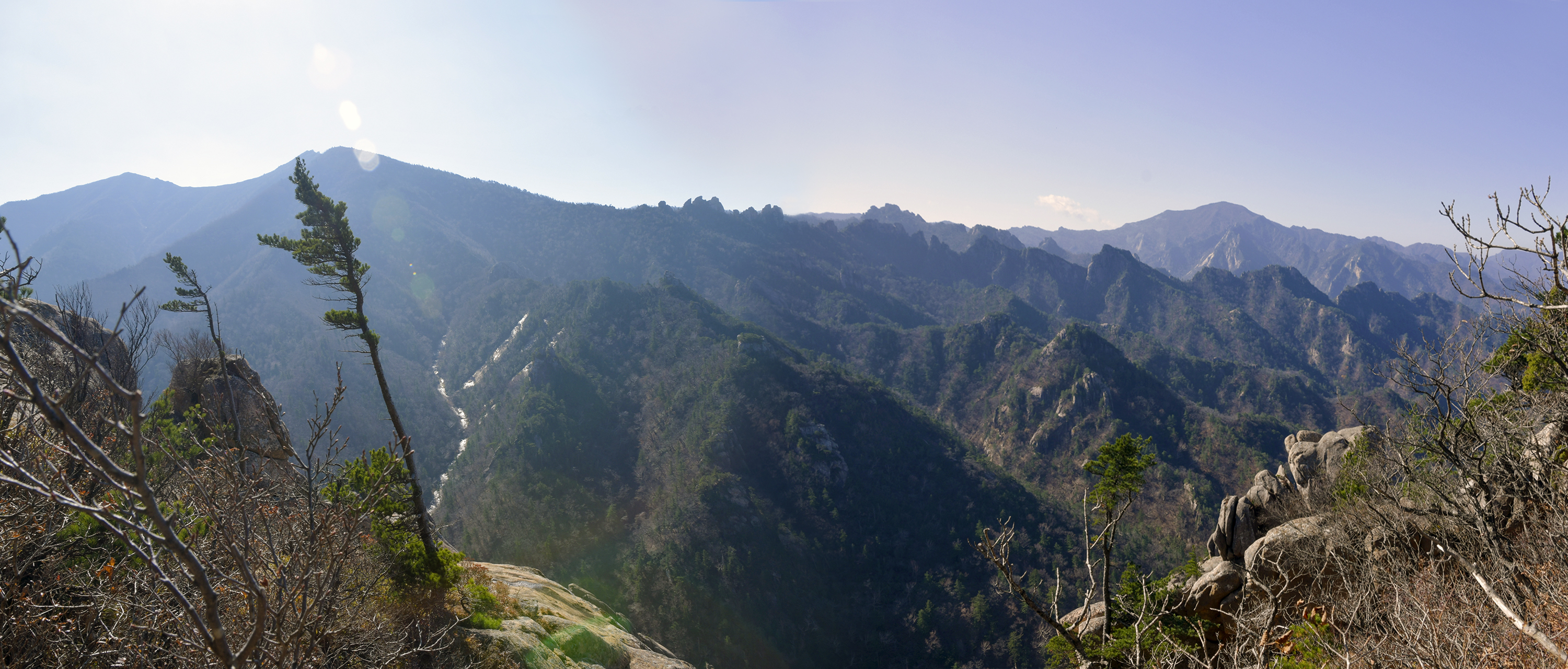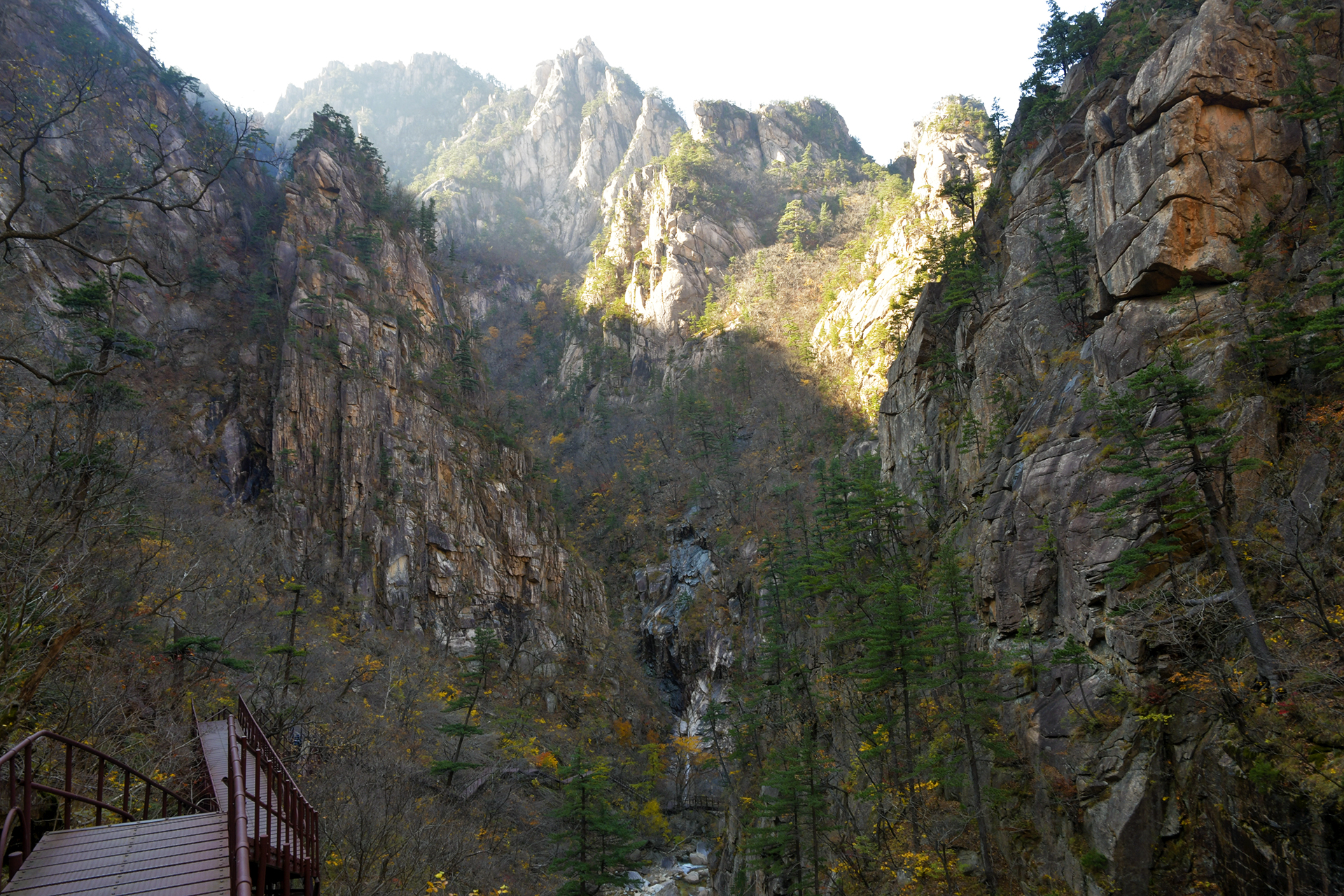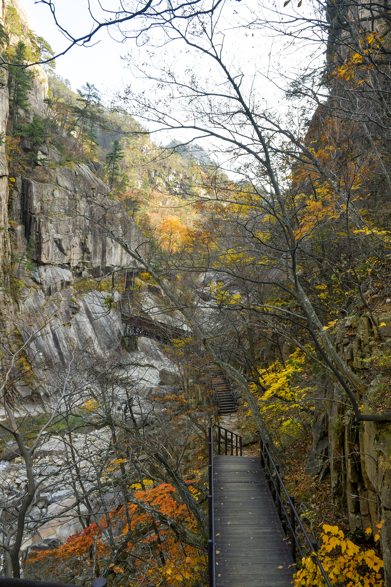 계단에서 바라보는 천불동 계곡은 산만한 나뭇가지의 방해로 계곡 물줄기를 담기에는 애로가 많다.