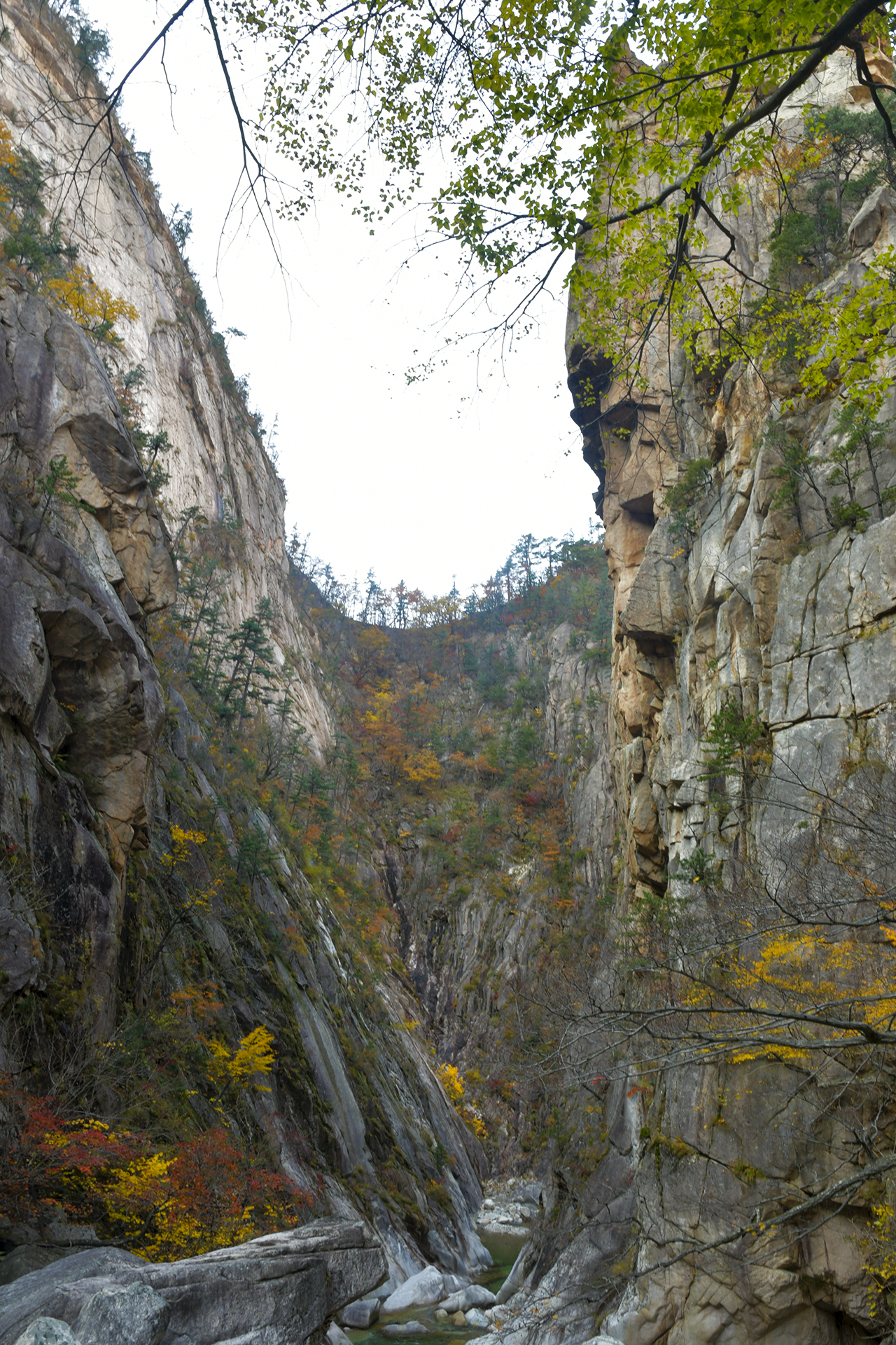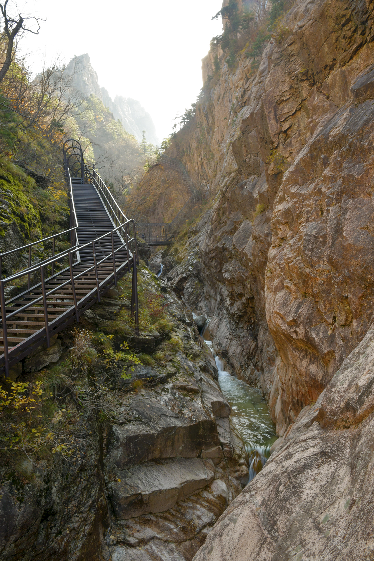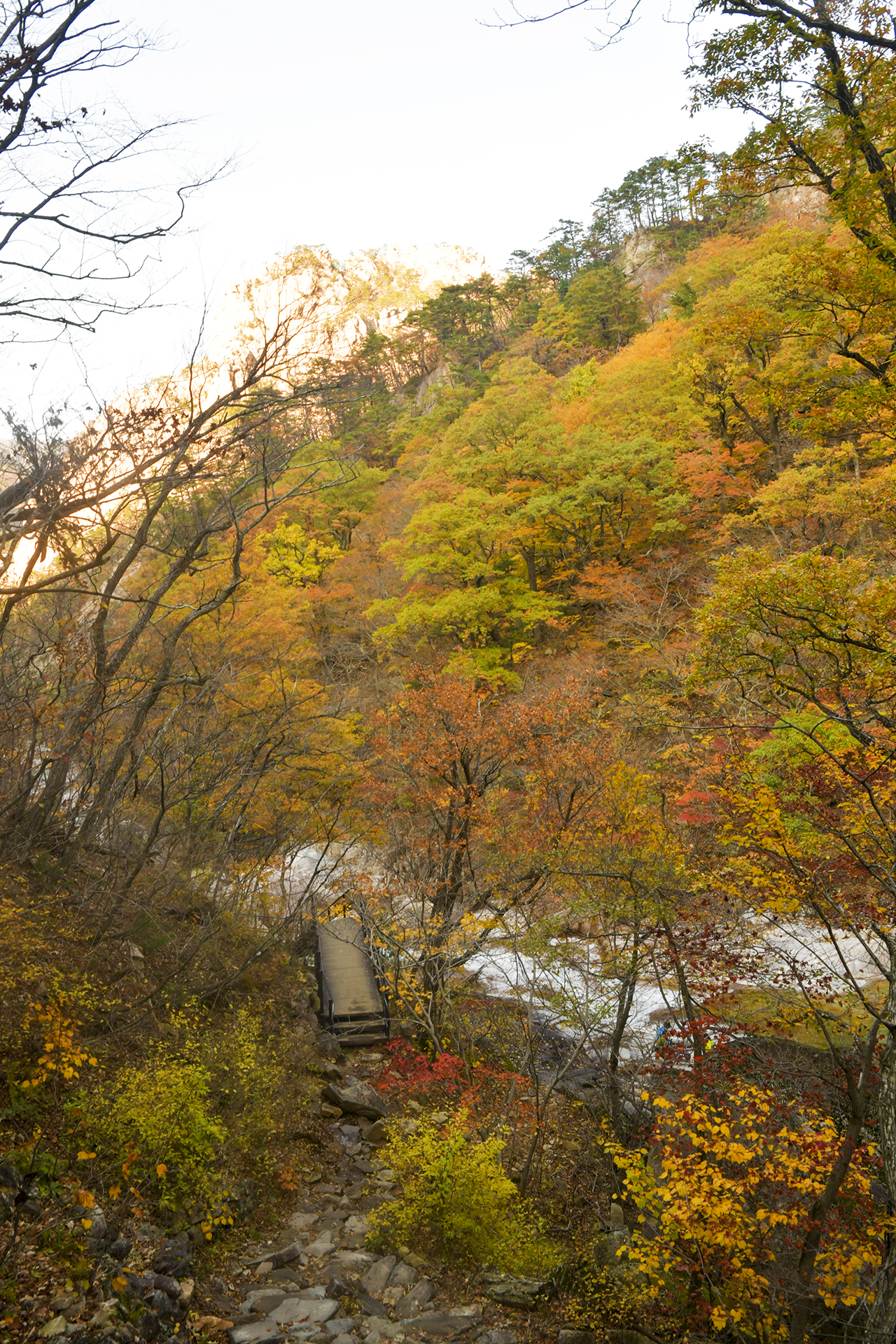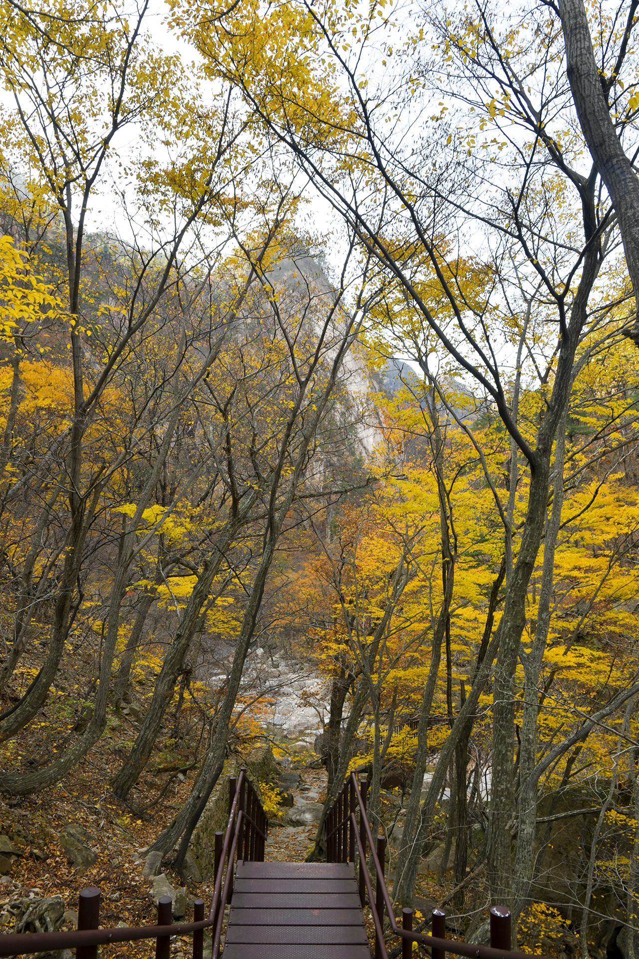 계단에서 바라보는 천불동 계곡은 산만한 나뭇가지의 방해로 계곡 물줄기를 담기에는 애로가 많다.