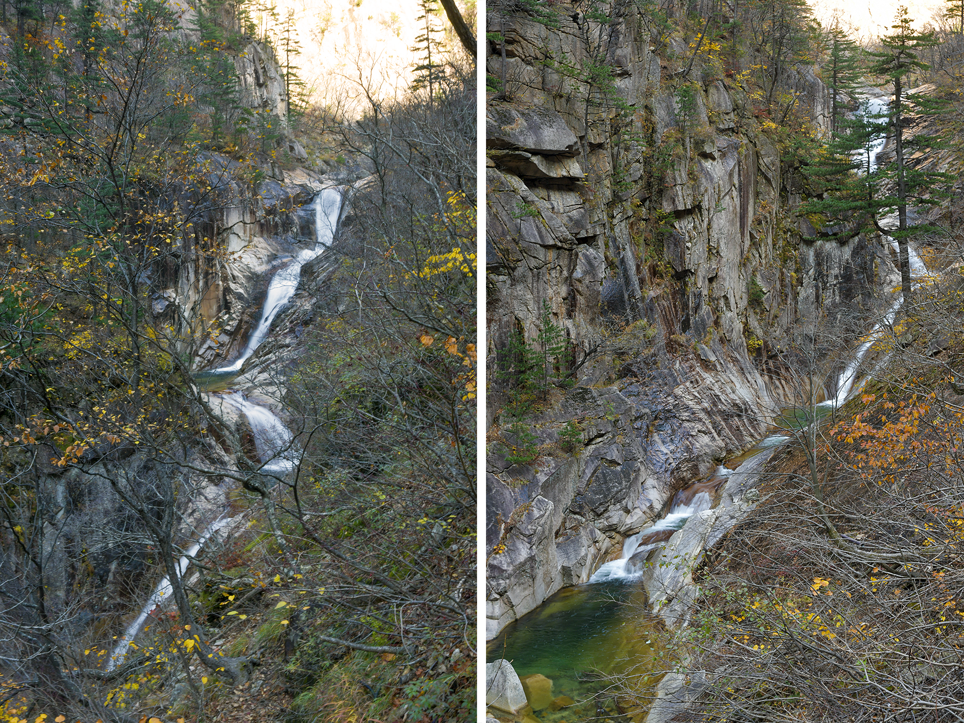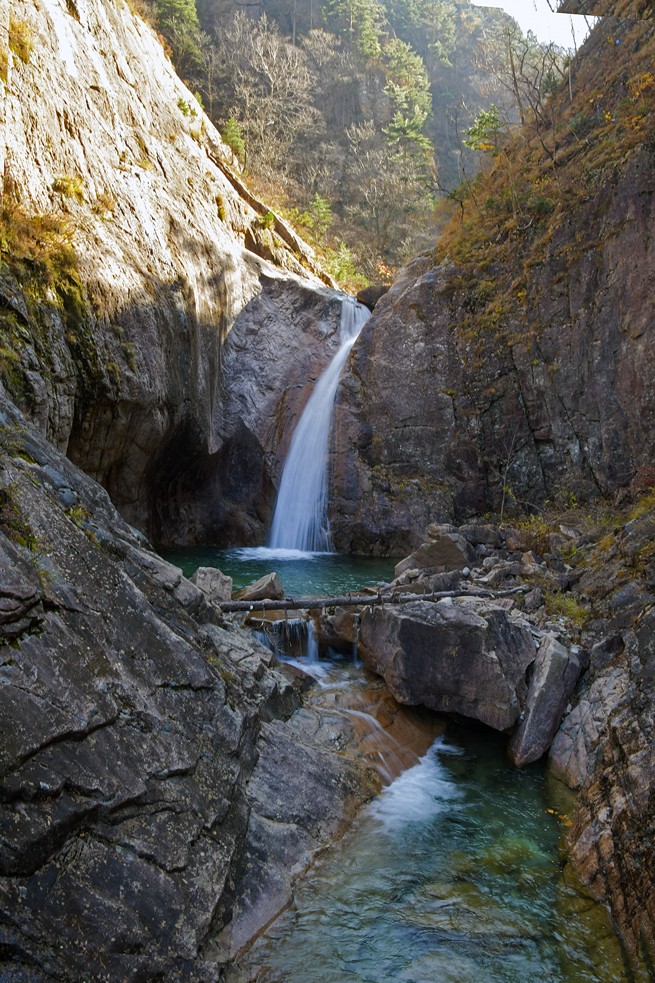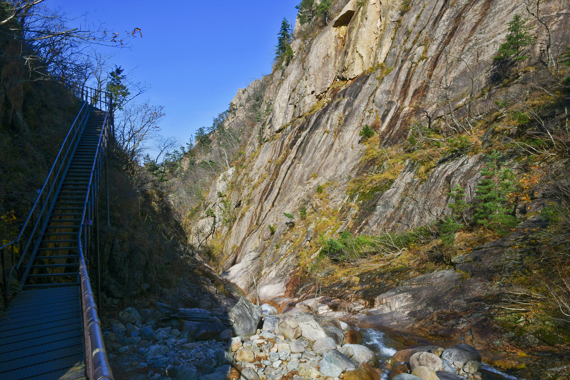 귀면암 뒷쪽 석벽은 높은만큼 깊은 계곡을 만들었다.
