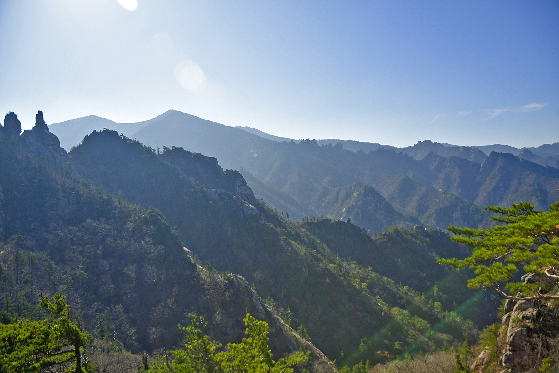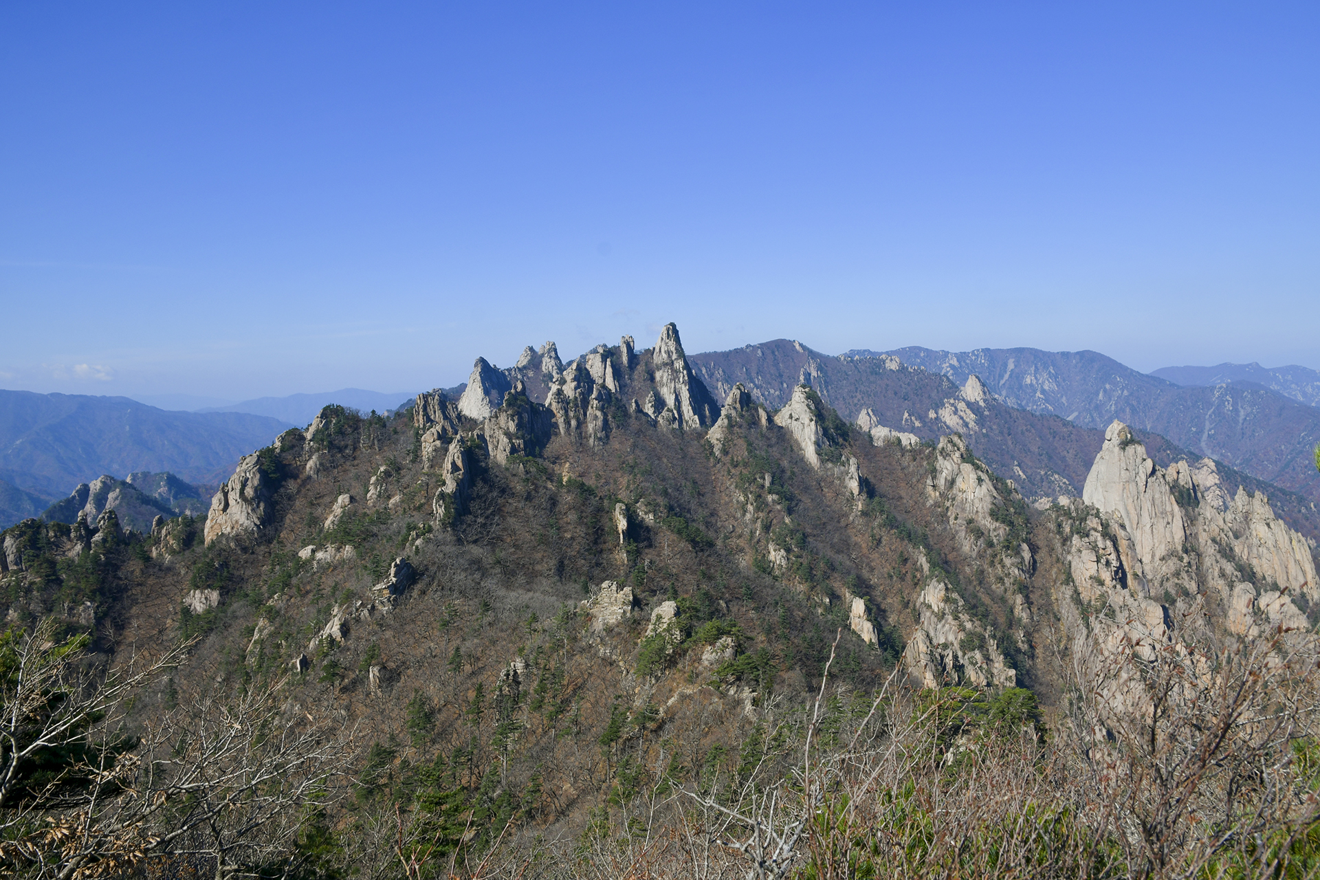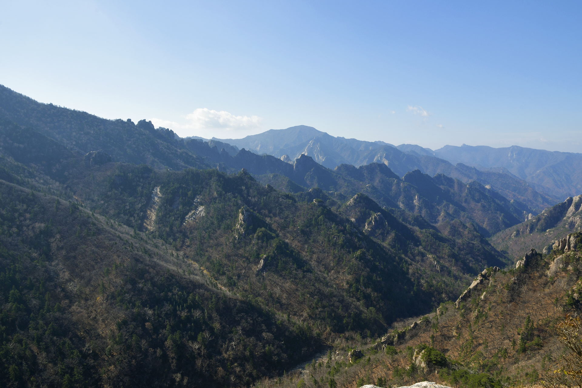 외설악 방향은 거칠지만 산세가 아름답다. 꼭대기 화채봉이 유난히 뾰족한 모습이다.