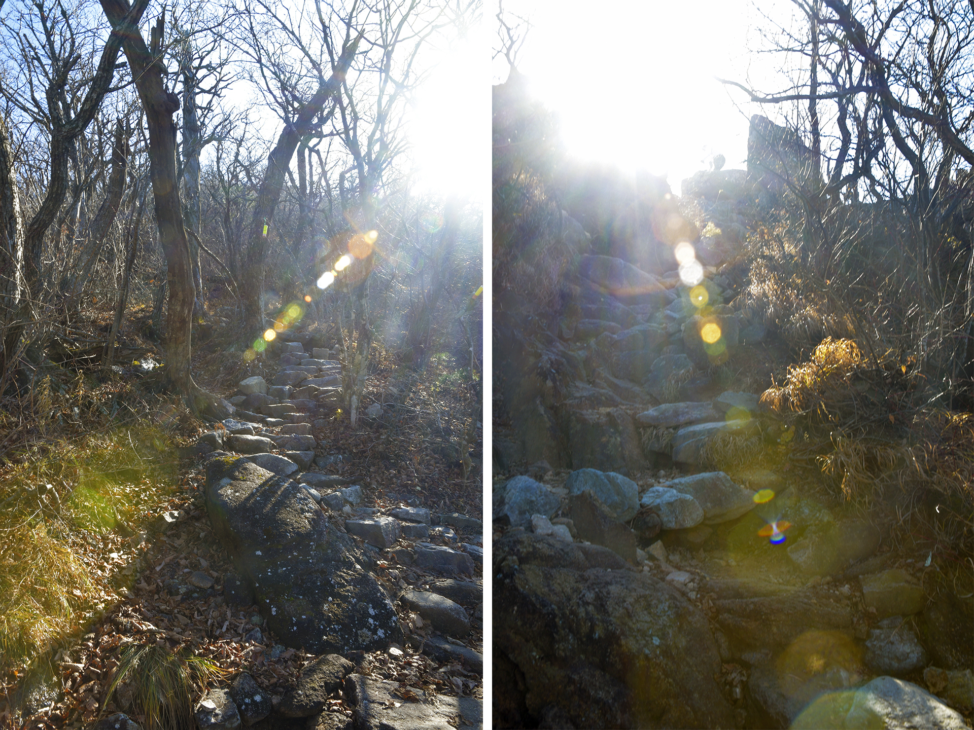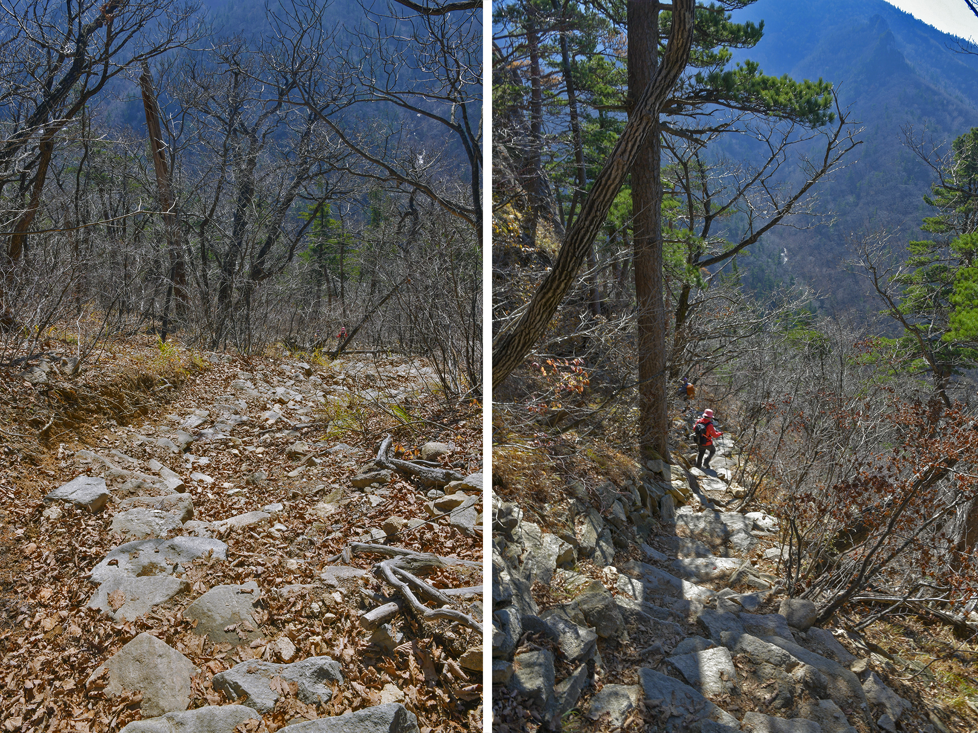 눈앞에 펼쳐지는 경관과는 달리 등산로는 험준하게 이어진다.
