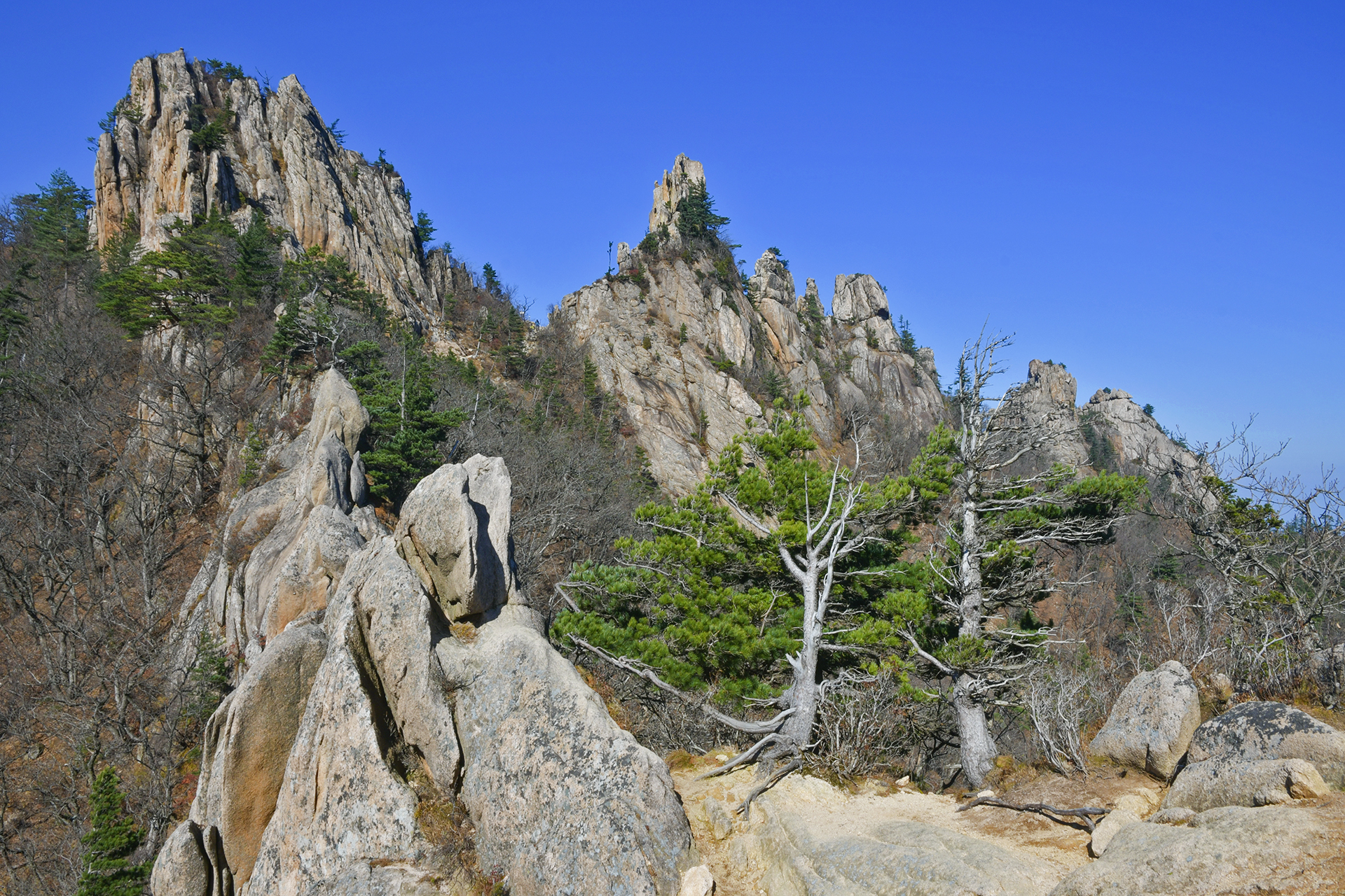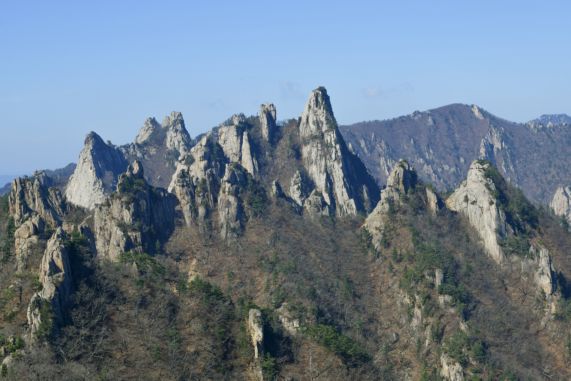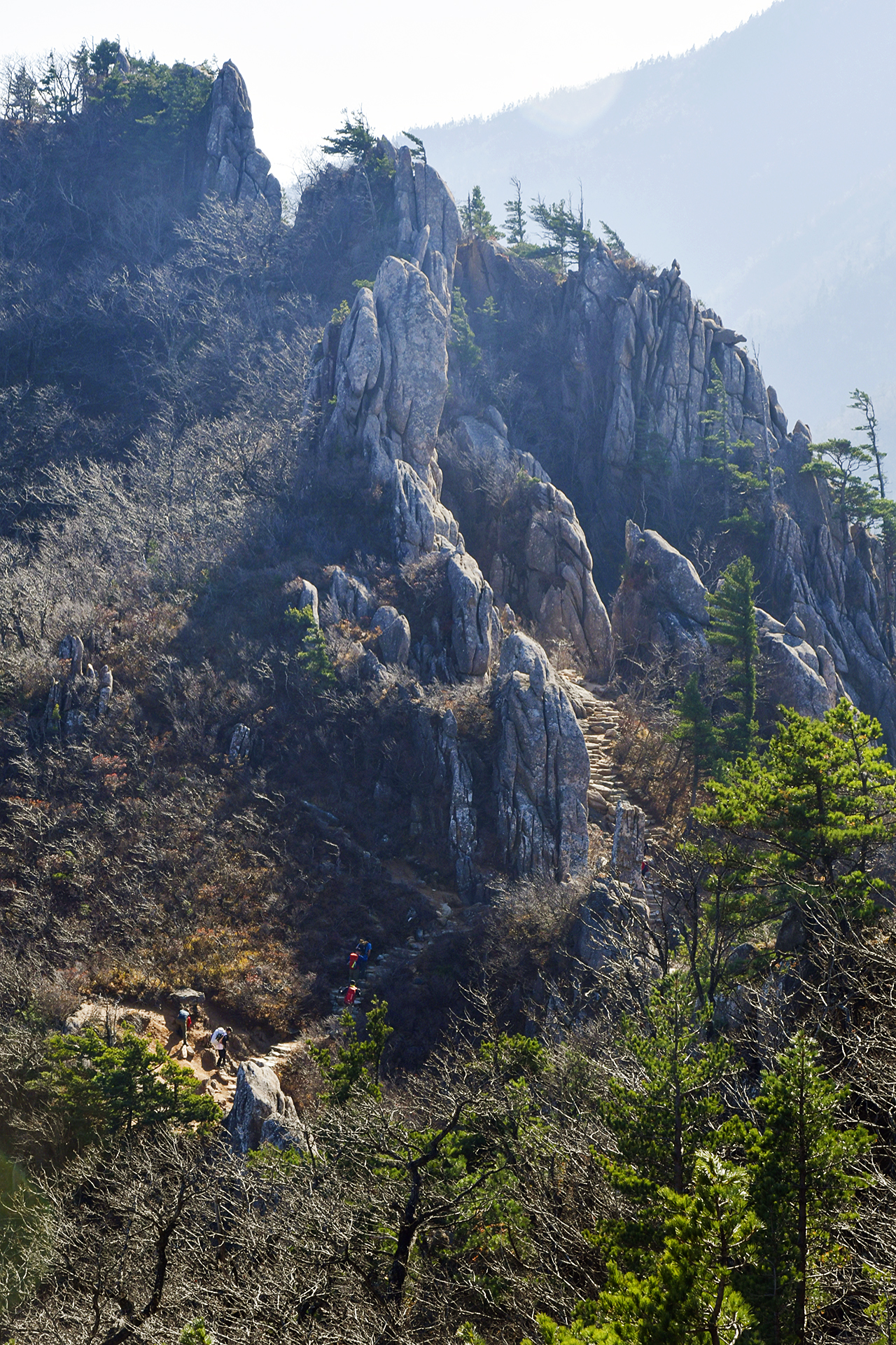 기암들의 전시장마냥 각양각색의 암봉과 석벽들이 장관을 이룬다.