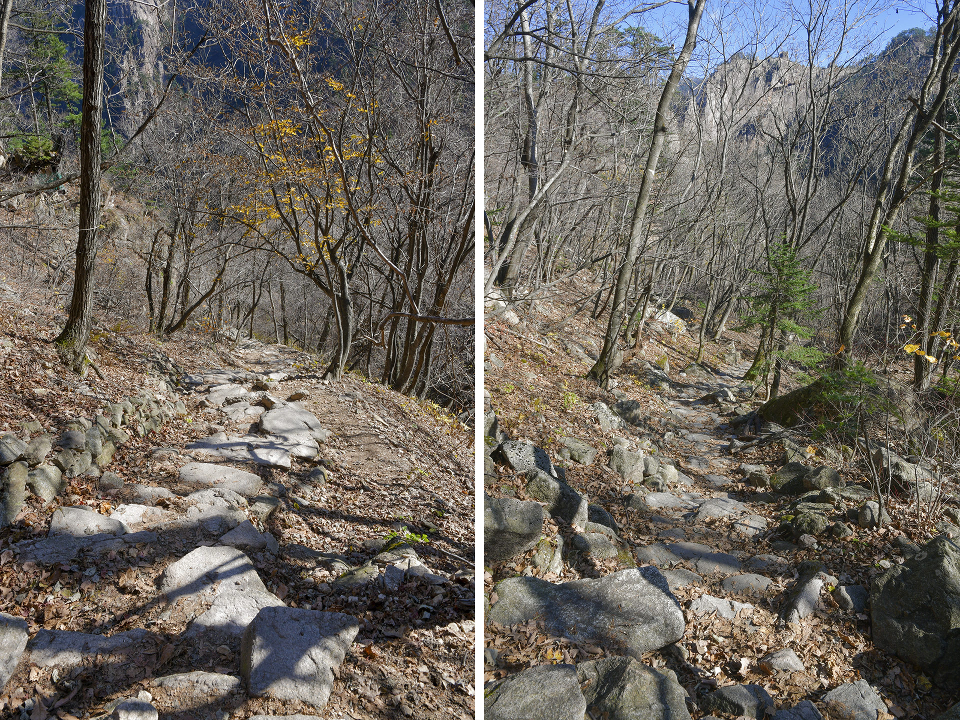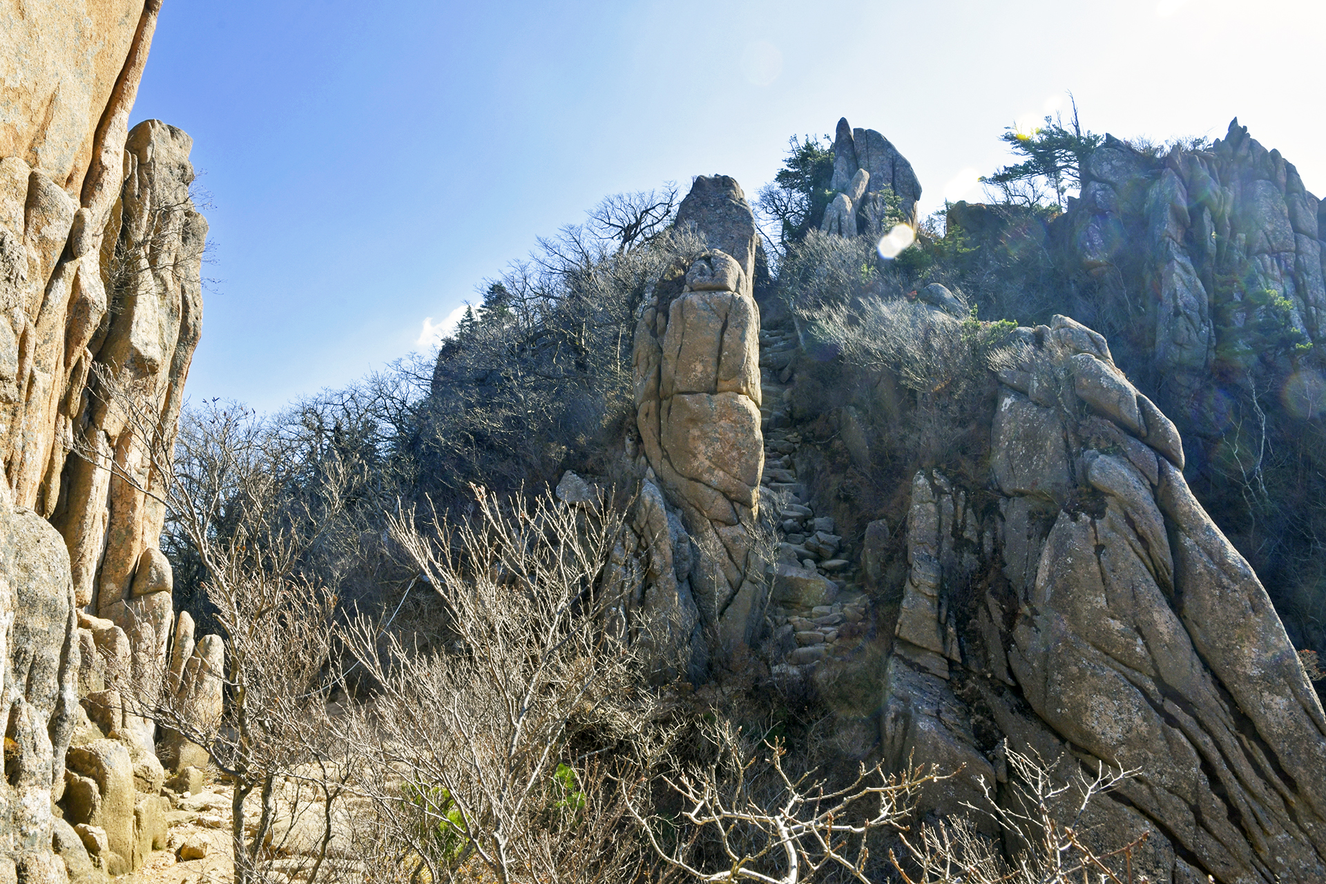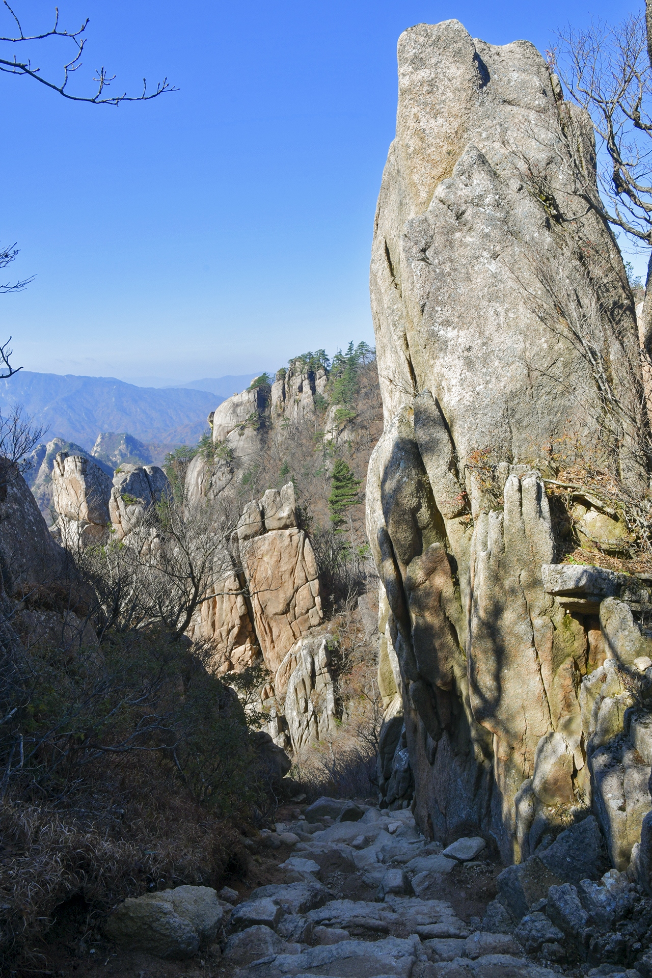 기암들의 전시장마냥 각양각색의 암봉과 석벽들이 장관을 이룬다.